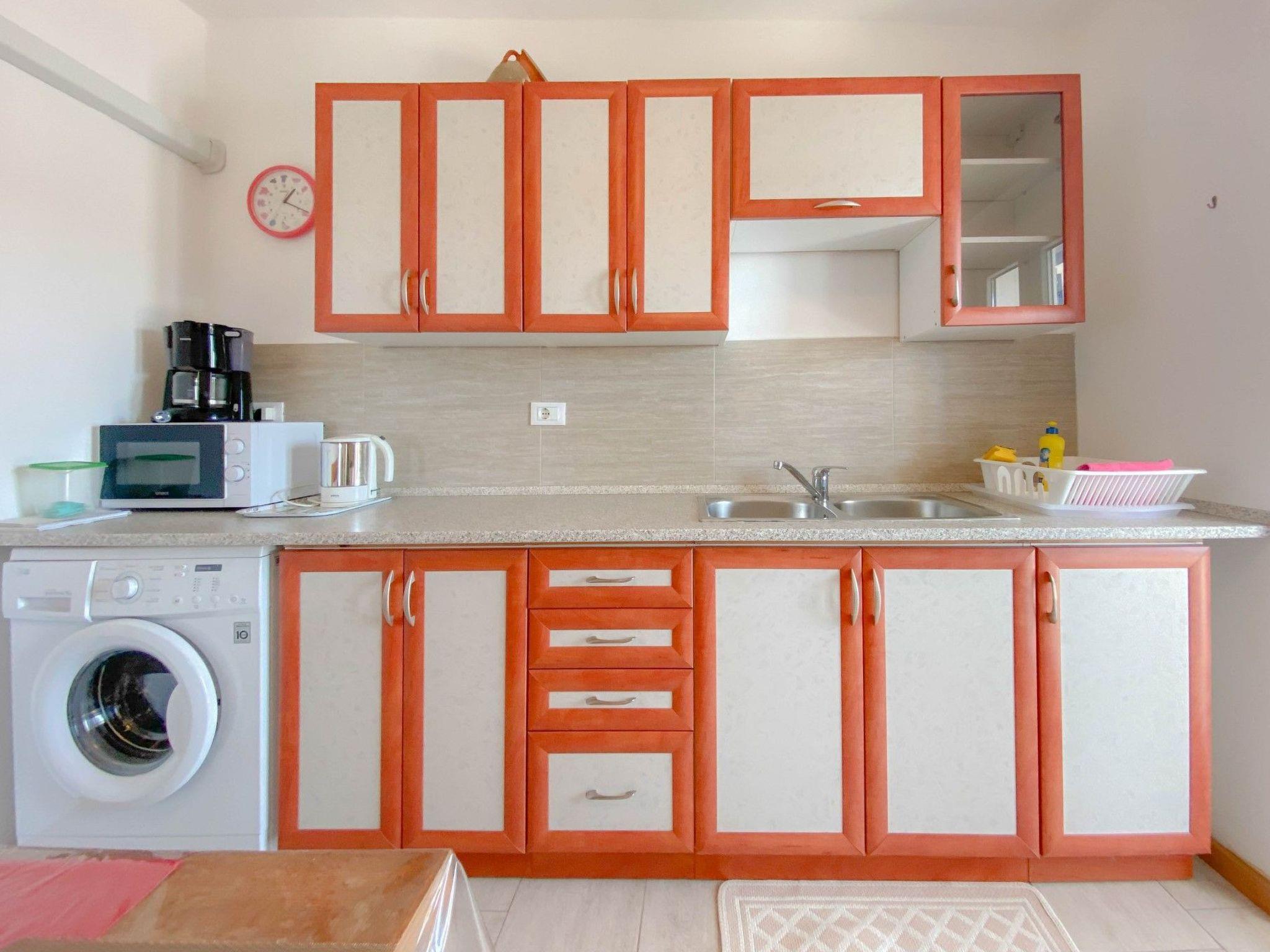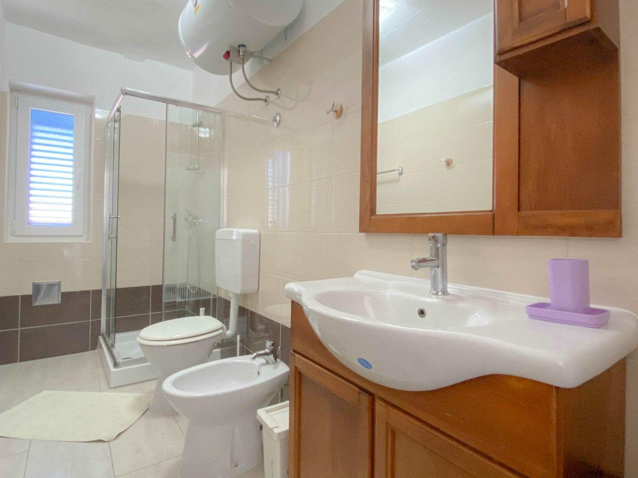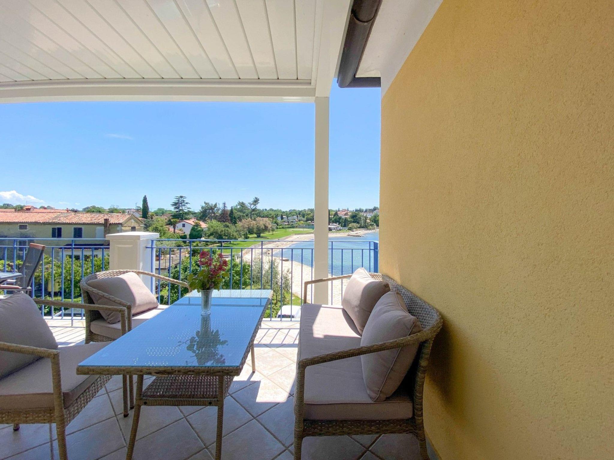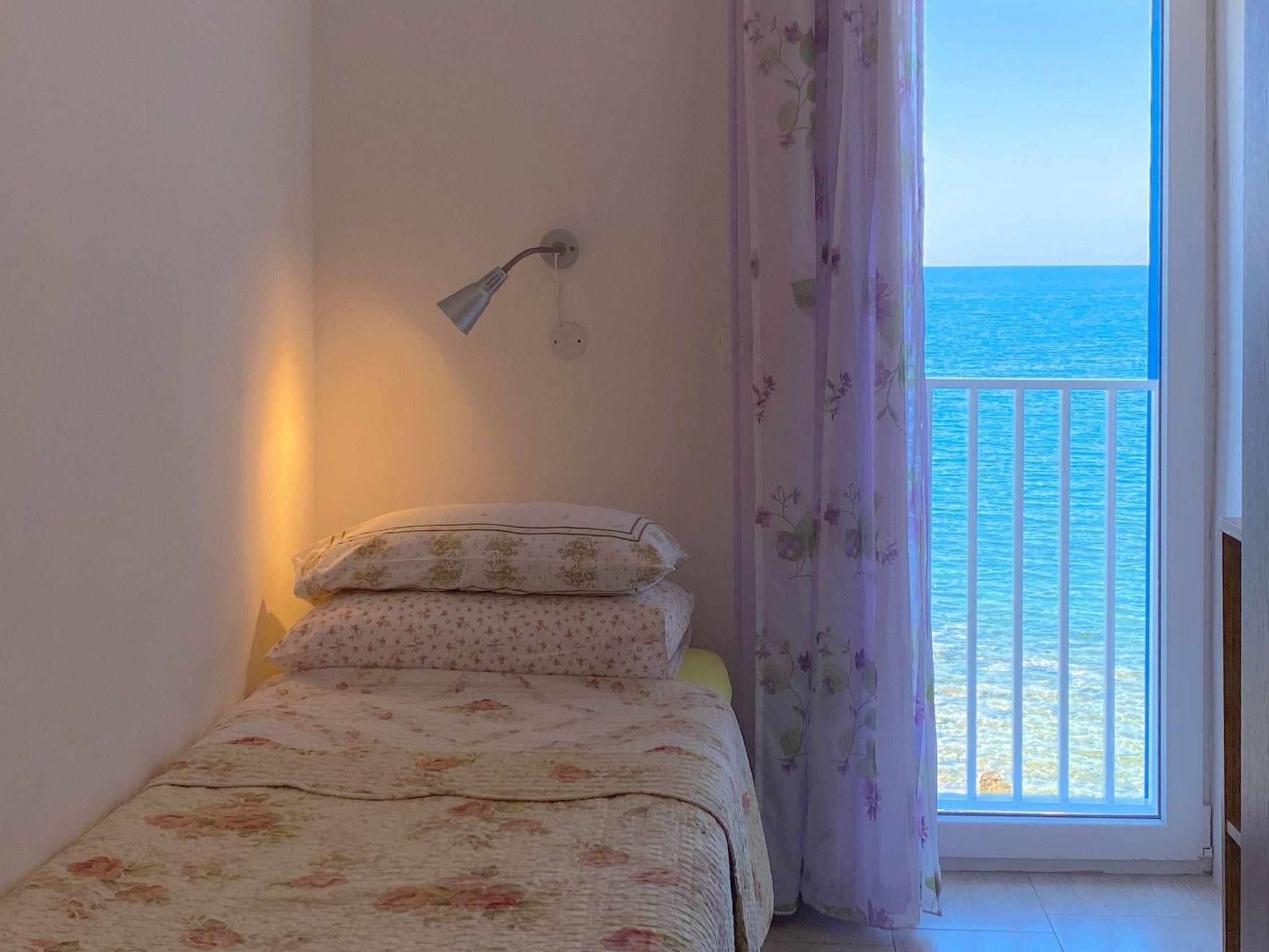 The apartment's exterior is equally captivating, featuring a charming balcony furnished to let you dine or unwind while soaking in the picturesque sea views. It's an ideal spot for morning coffees or evening relaxation, where the tranquility of the surroundings envelops you.