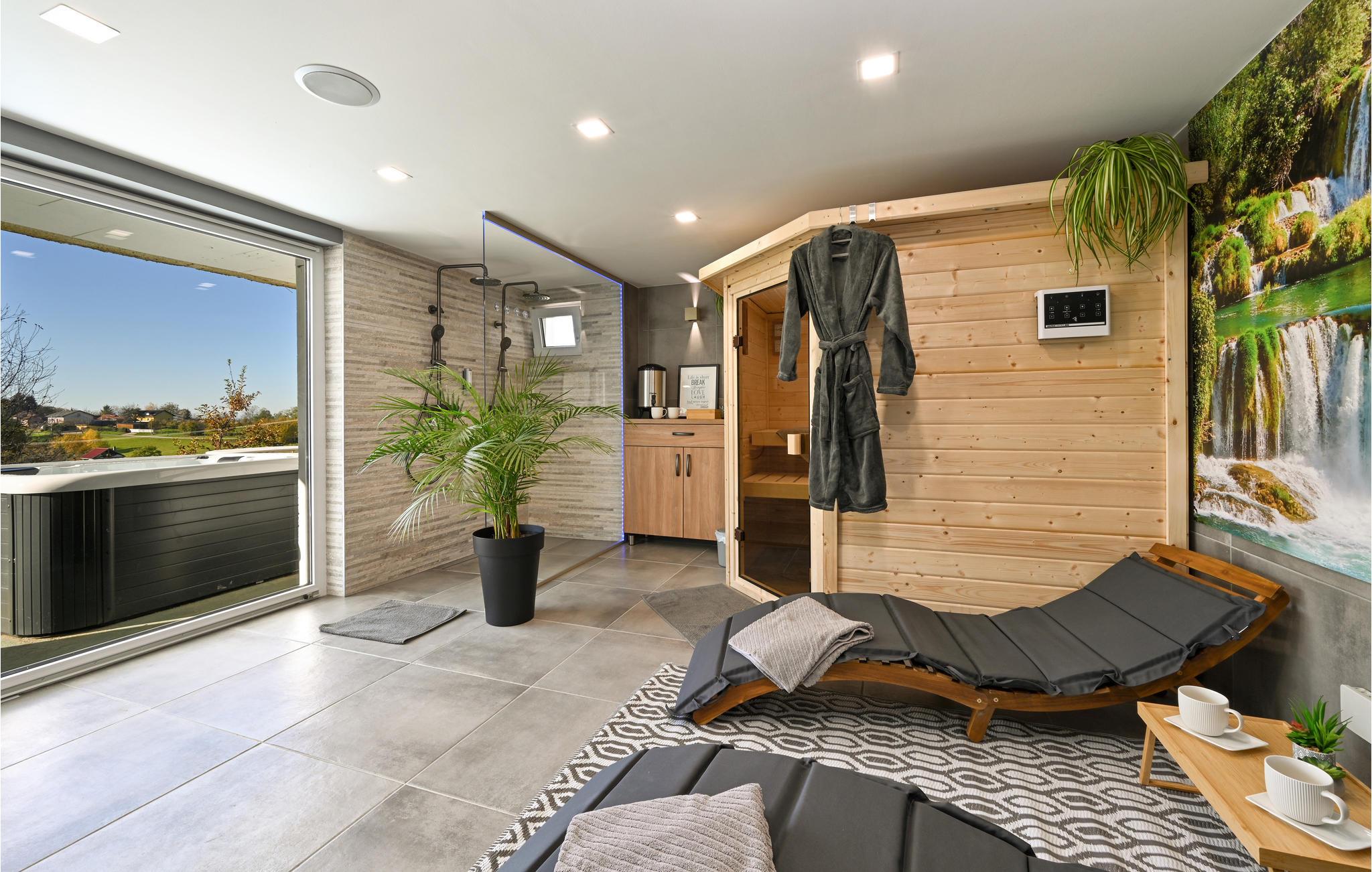 Gönnen Sie sich eine Auszeit von Ihrem hektischen Alltag und fahren auf das Land, das Ihnen Ruhe und Erholung verspricht. Genießen Sie mit Ihrer Familie oder einem befreundeten Paar entspannte Tage in diesem schön dekorierten und einladenden Ferienhaus, das Ihnen Komfort und Behaglichkeit verspricht. Das ansprechende Ambiente lädt Sie zu gemeinsamen Aktivitäten, wie das Kochen oder Relaxen in der Sauna ein. Baden Sie auch im Freien im Whirlpool oder dem Pool im Garten und atmen die frische Luft ein.