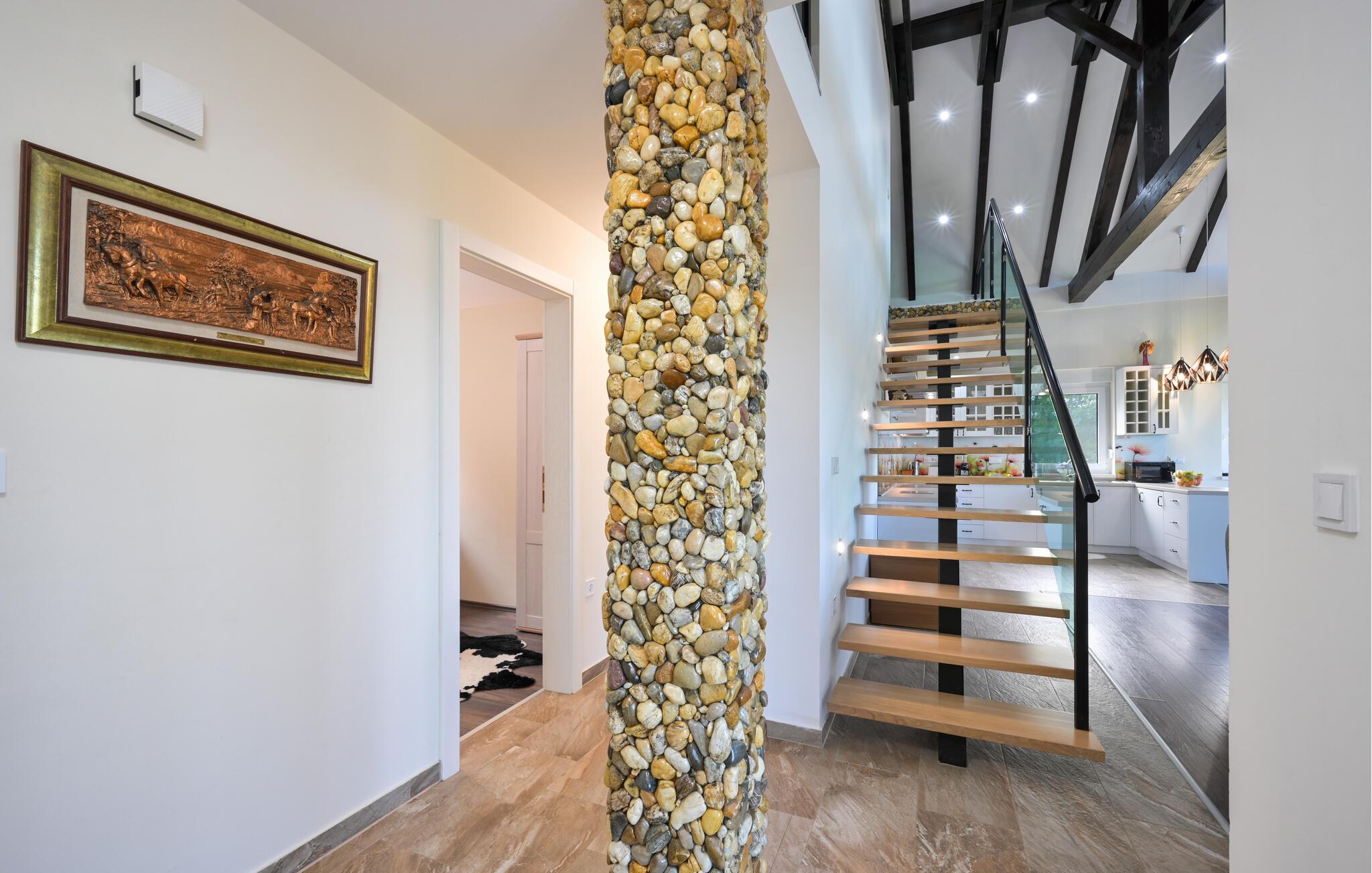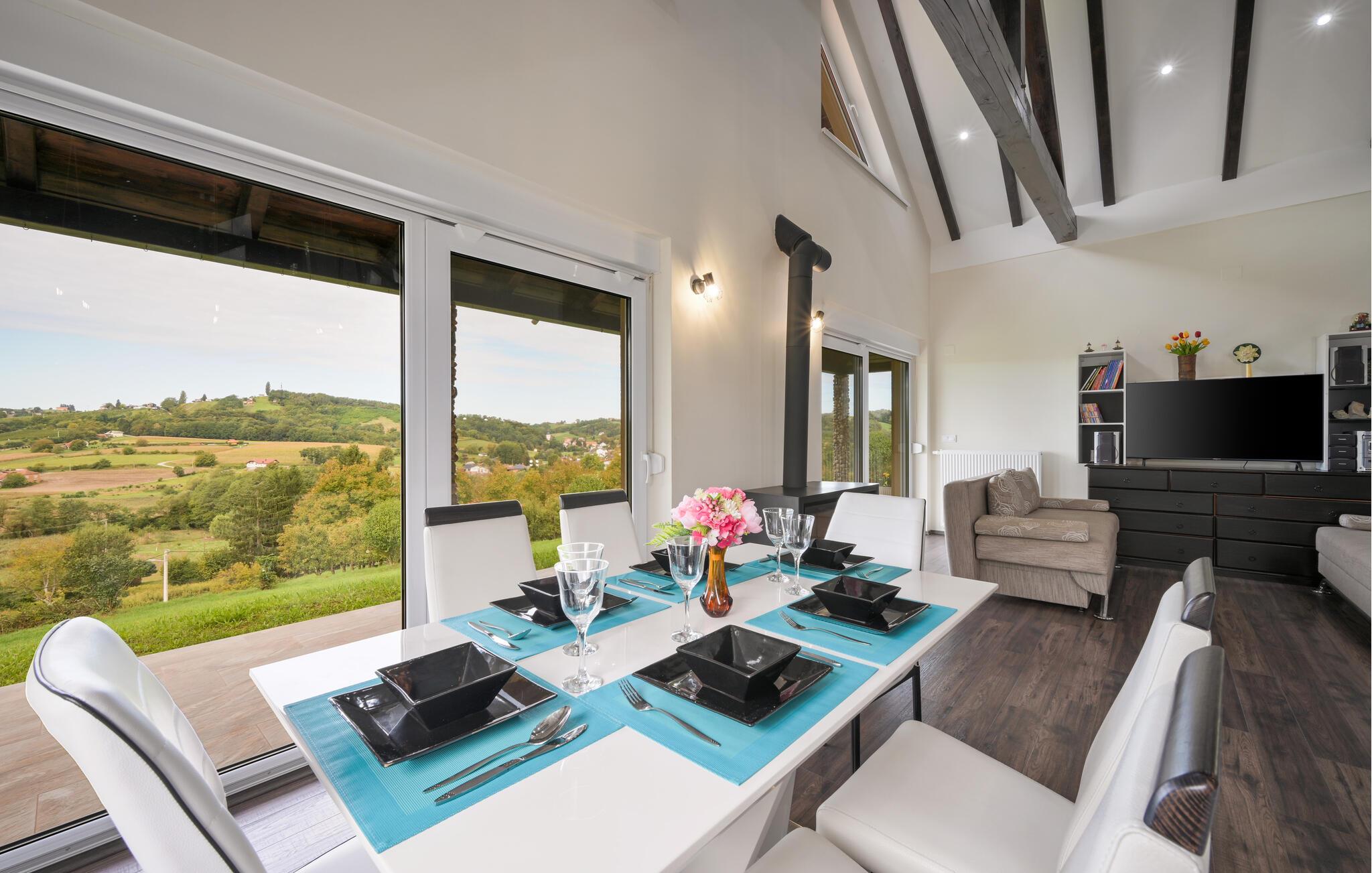 Genießen Sie hier eine harmonische Kombination aus hellen Räumen und dunklen Deckenbalken, die für Entspannung sorgt. Erfreuen Sie sich an der schönen Aussicht und genießen Sie bei den gemeinsamen Mahlzeiten den Blick ins Freie. Machen Sie es sich nach einem spannenden Tag auf dem Sofa bequem und sorgen Sie mit einem Feuer im Kaminofen für eine gemütliche Stimmung.