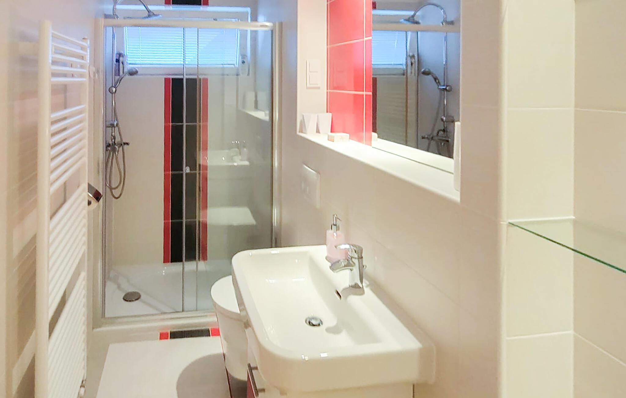 Badezimmer (nr. 1) - WC. Warmes und kaltes Wasser. Dusche
