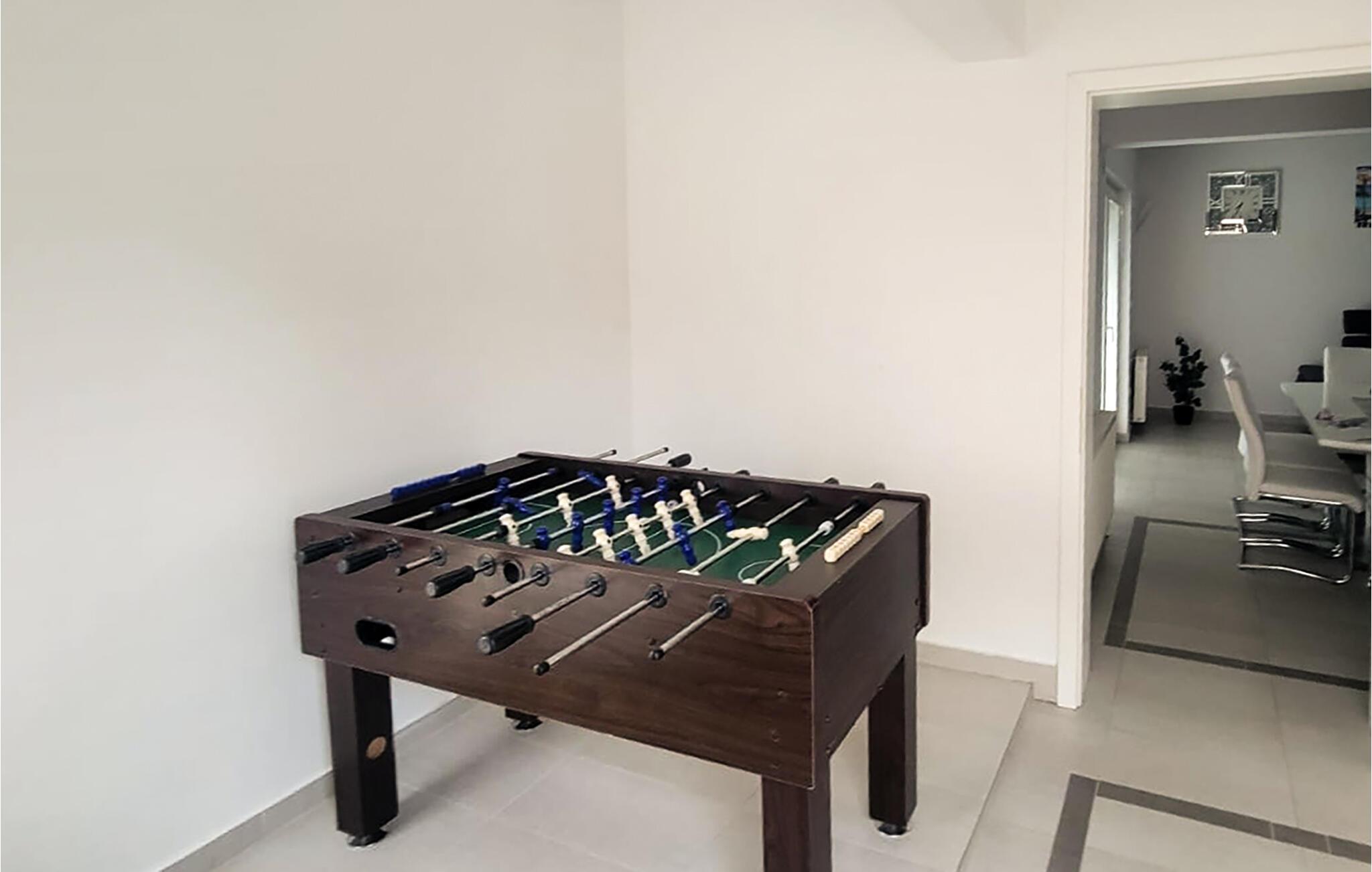 Starten Sie Ihren Tag mit einem leichten Frühstück auf der Terrasse und genießen Sie den Blick auf die hügelige Landschaft. Entspannen Sie bei einer Tasse Kaffee und guten Gesprächen, bevor Sie abends den Grill anwerfen und den Tag gemeinsam ausklingen lassen. Sportlich Aktive können sich im Tischfußball oder Badminton messen und anschließend im Whirlpool entspannen.