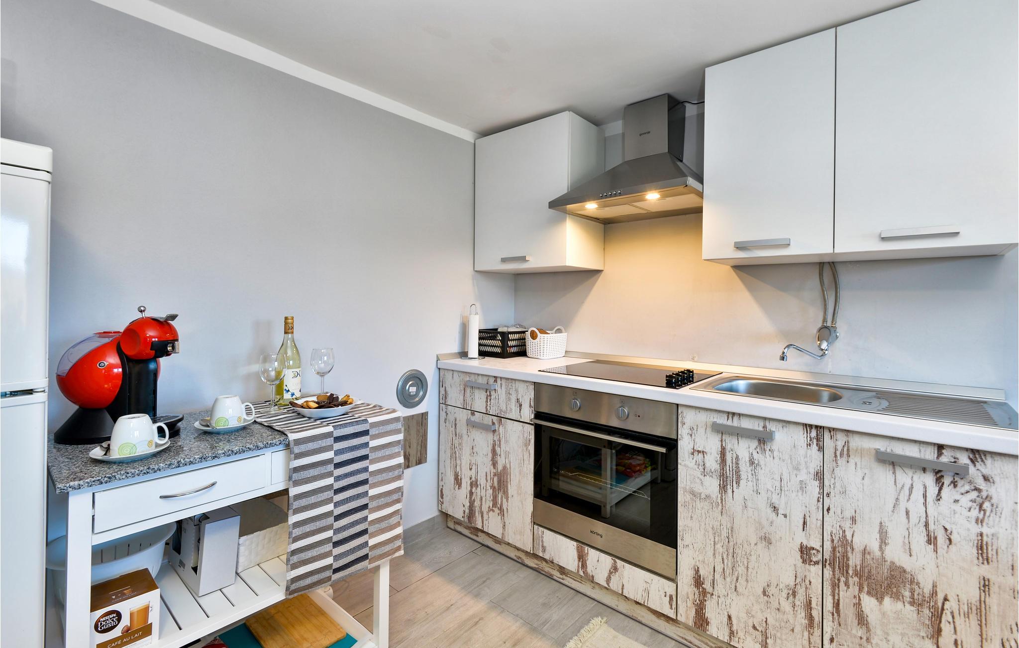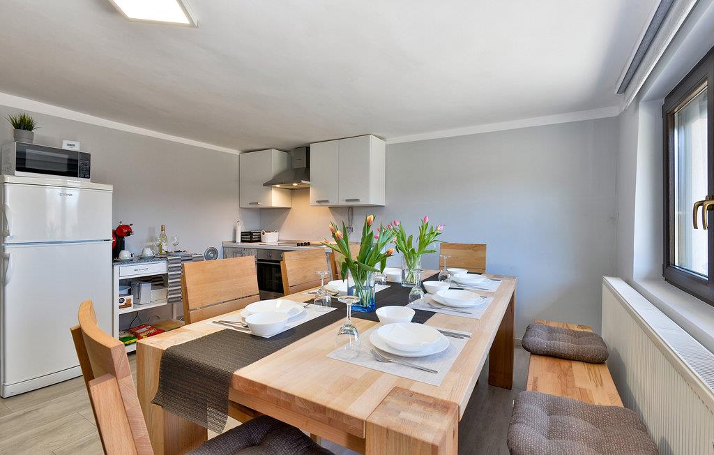 Das komfortable und gemütliche Haus bietet mit 2 Schlafzimmern, die sich im Obergeschoss befinden, Platz für die ganze Familie. Im Erdgeschoss liegt die moderne und gut ausgestattete Küche, das Wohnzimmer mit bequemen Sofas und ein Bad. Dank Klimaanlage genießen Sie hier auch in heißen Sommern angenehme Temperaturen.