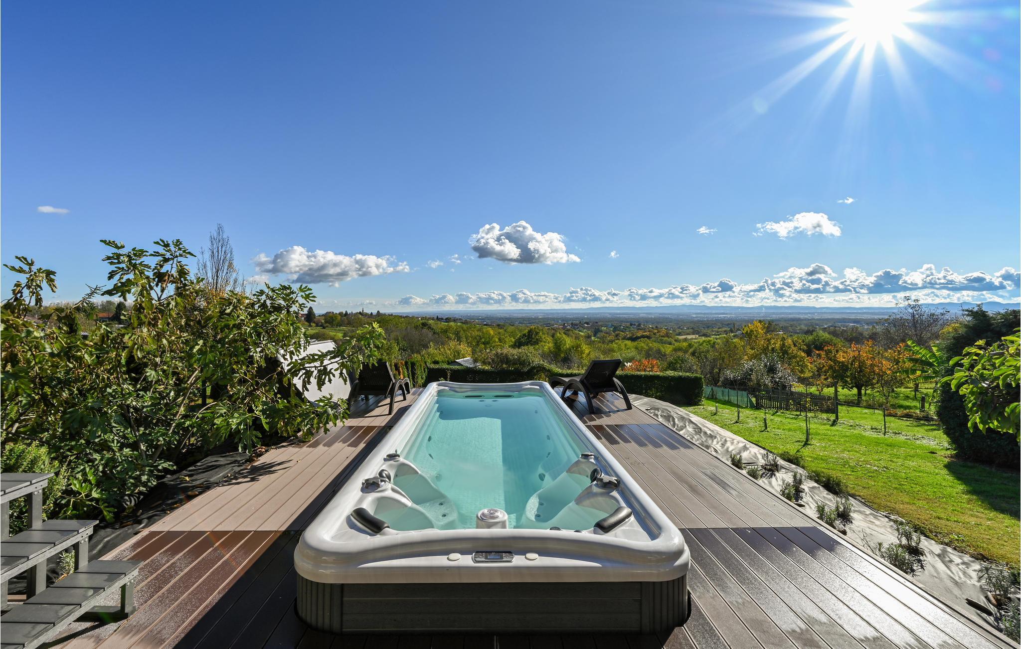 Aber nicht nur der mondäne Innenraum wird Sie verzaubern, sondern auch der großartige Garten, wo Sie den Blick auf das wunderschöne Haus haben und viele Stunden im Whirlpool und Pool verbringen können. Genießen Sie die Zeit im Freien und grillen am Abend oder trinken ein Glas Wein auf dem schönen Balkon.