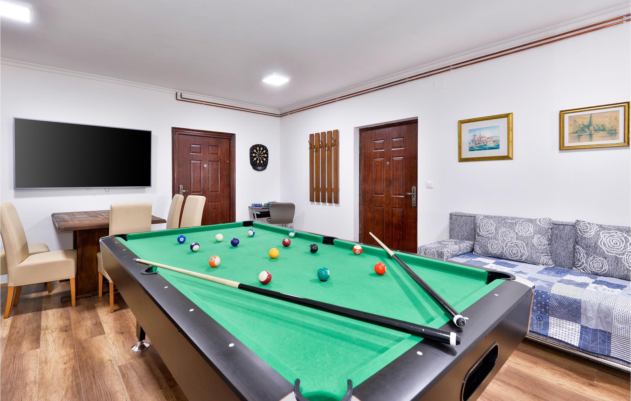 Dieses schöne und rustikal eingerichtete Ferienhaus liegt auf einem kleinen Hügel in Železna Gora. Es erstreckt sich über drei Etagen. Das Erdgeschoss und die erste Etage verfügen jeweils über einen Außeneingang. Vor dem Haus befinden sich ein Swimmingpool mit Liegewiese und eine Sommerküche im Freien mit Grill, wo Sie verschiedene Köstlichkeiten zubereiten können. Im Erdgeschoss gibt es ein Schlafzimmer, Bad, Freizeitraum für viel Spaß und eine Sauna zum Entspannen. Eine steile, halbrunde Treppe führt Sie von der ersten Etage zu den Schlafzimmern und dem offenen Spitzboden, wo die minimale Deckenhöhe ca. 100 cm beträgt. Wir empfehlen einen Besuch des Wasserparks LifeClass Terme Sveti Martin und Accredo, die zahlreiche Unterhaltungs- und Sportmöglichkeiten bieten.