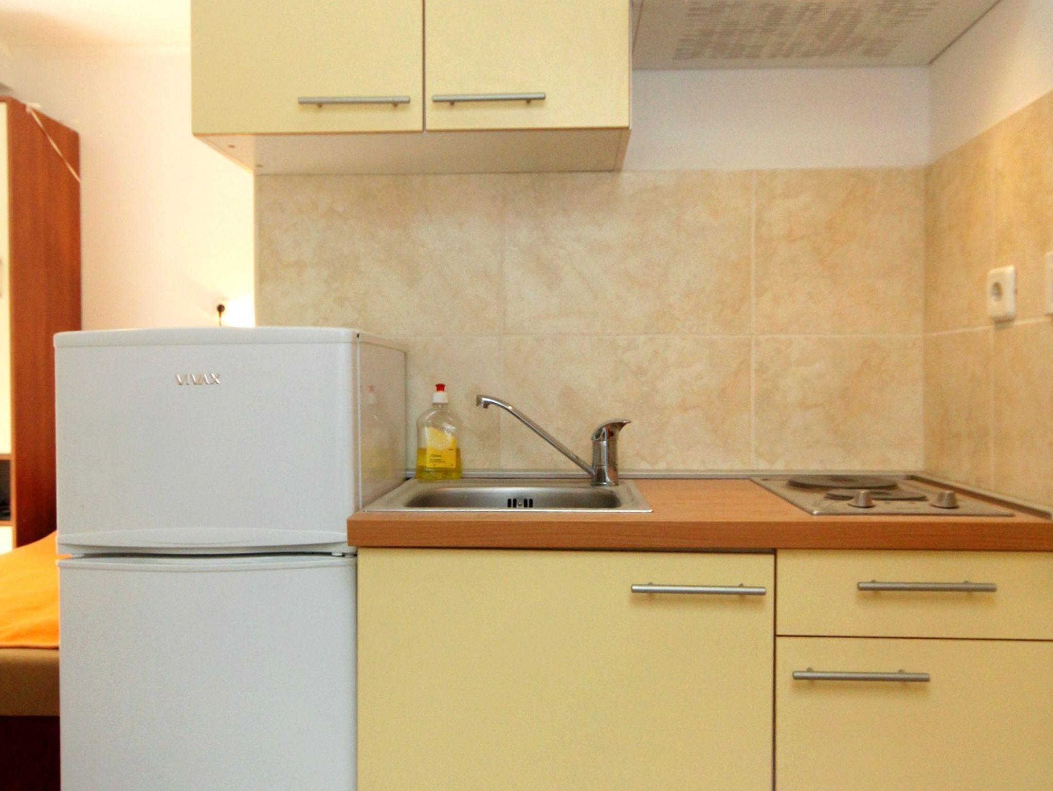 Studio bietet Platz für 2 Gäste. Die Betten sind in Schlafzimmern, die es 1 gibt, innerhalb einer Gesamtfläche von 13m2, angeordnet. Es ist erlaubt, Speisen auf dem Gemeinschafts-Grill vorzubereiten. Die reservierte Unterkunftseinheit hat keinen Balkon und keine Terrasse. IM PREIS INBEGRIFFEN: Kurtaxe, Endreinigung, Klimatisierung, Internet, Wäschewaschen, Kinderbett, Bügeleisen, Bügelbrett, Föhn, tragbarer Grill. VERBINDLICHE ZUSÄTZLICHE KOSTEN: Aufzahlung für Kurzaufenthalte (prozentualer Zuschlag pro Nächtigungsanzahl: 30% - 1, 20% - 2, 10% - 3). Die Verfügbarkeit zusätzlicher Dienstleistungen in Ihrem reservierten Termin und die Preise derselben (falls nicht aufgeführt) müssen im Voraus überprüft werden. Zusätzliche Dienstleistungen die in der Zahlungsaufforderung nicht aufgeführt sind werden direkt beim Vermieter bezahlt, angenommen der Gast nutzt auch diese. Ermäßigung auf den Grundpreis: Gratistag 14=13 (bei einem Aufenthalt von 14 Tagen oder mehr erhalten Sie einen Gratistag für den Aufenthalt bis 31.12.26).