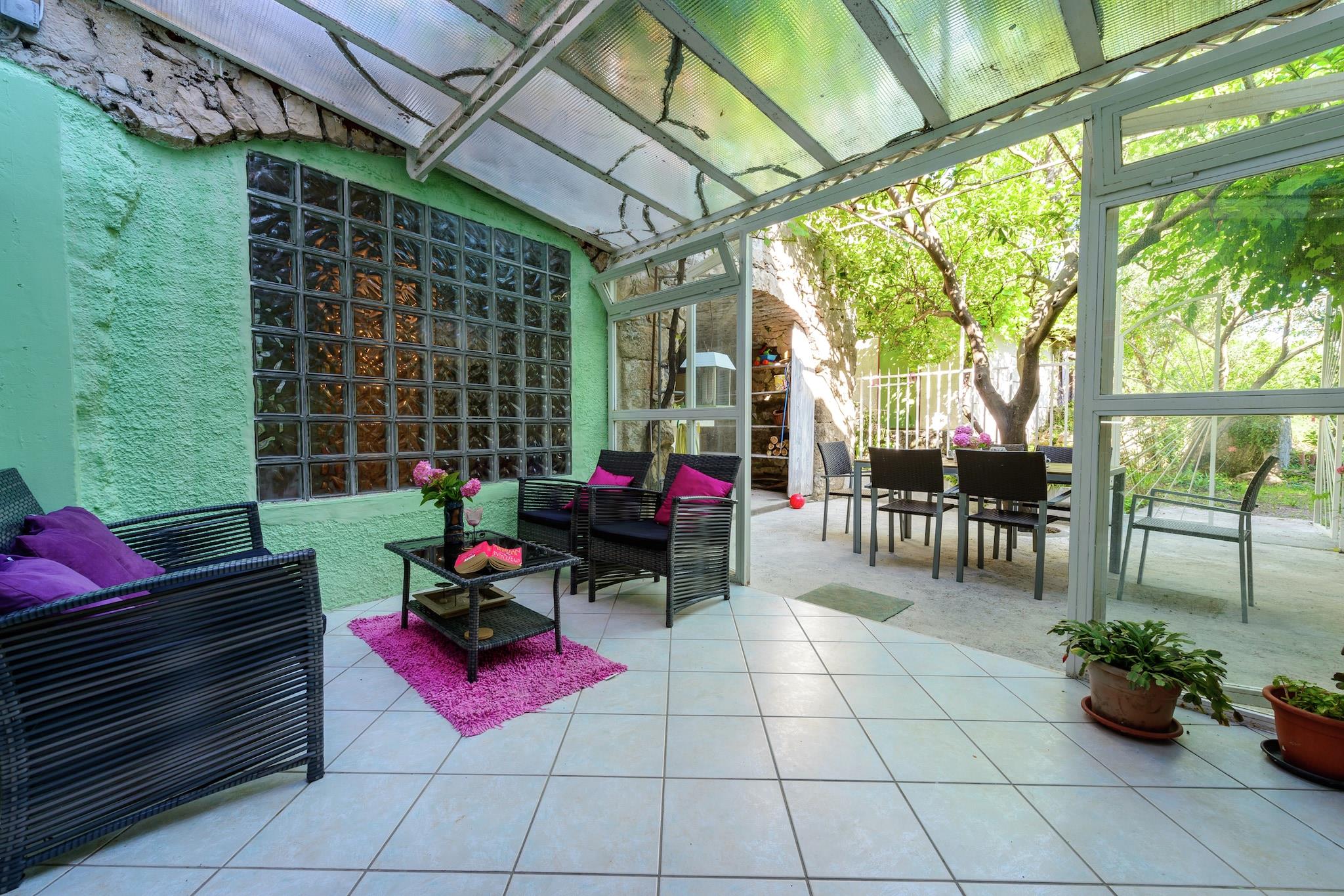 Surrounded by lush greenery and Mediterranean fruit trees, this charming holiday villa offers a peaceful retreat with sea views from the bedrooms. Ideal for families or friends, it features a well-equipped kitchen that opens onto a covered terrace with a barbecue, perfect for relaxed outdoor dining. The villa combines comfort and simplicity, with air conditioning upstairs, a fan-cooled living room, and cozy furnishings throughout. Just steps away, guests can enjoy a wellness center with pools, beaches, bars, and restaurants, adding leisure and convenience to your stay. Explore the historic charm of Dubrovnik, with its iconic Stradun Plaza, museums, and galleries. Daily boat trips to Lokrum and the Elaphite Islands offer scenic escapes, while nearby Montenegro and Bosnia and Herzegovina invite you to discover wineries, horseback trails, and natural beauty.
