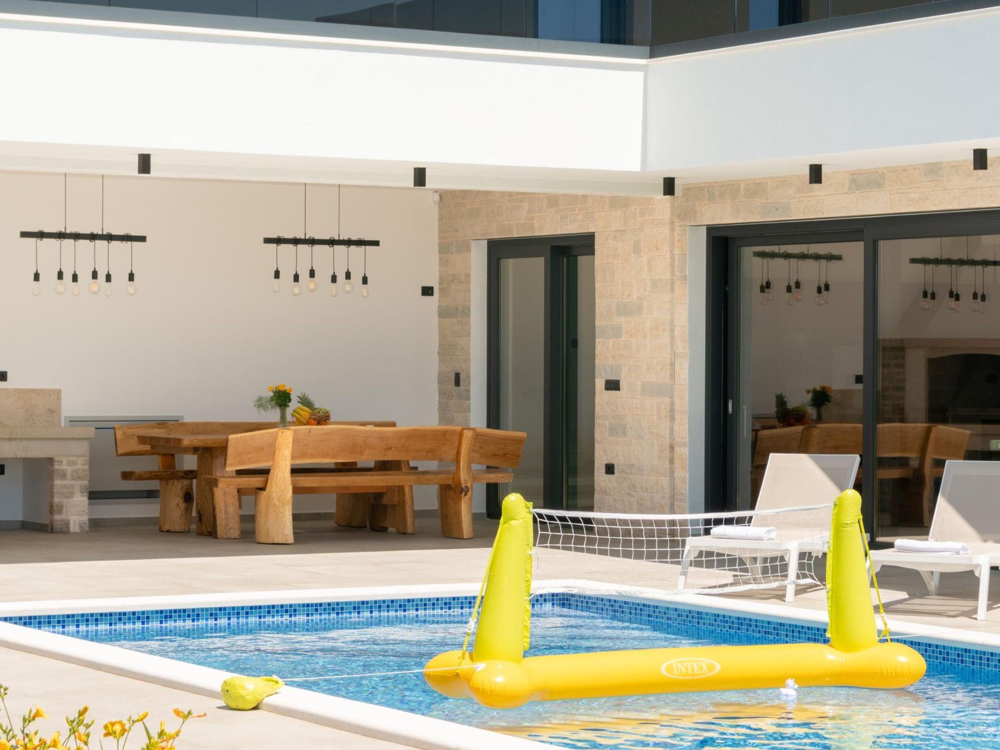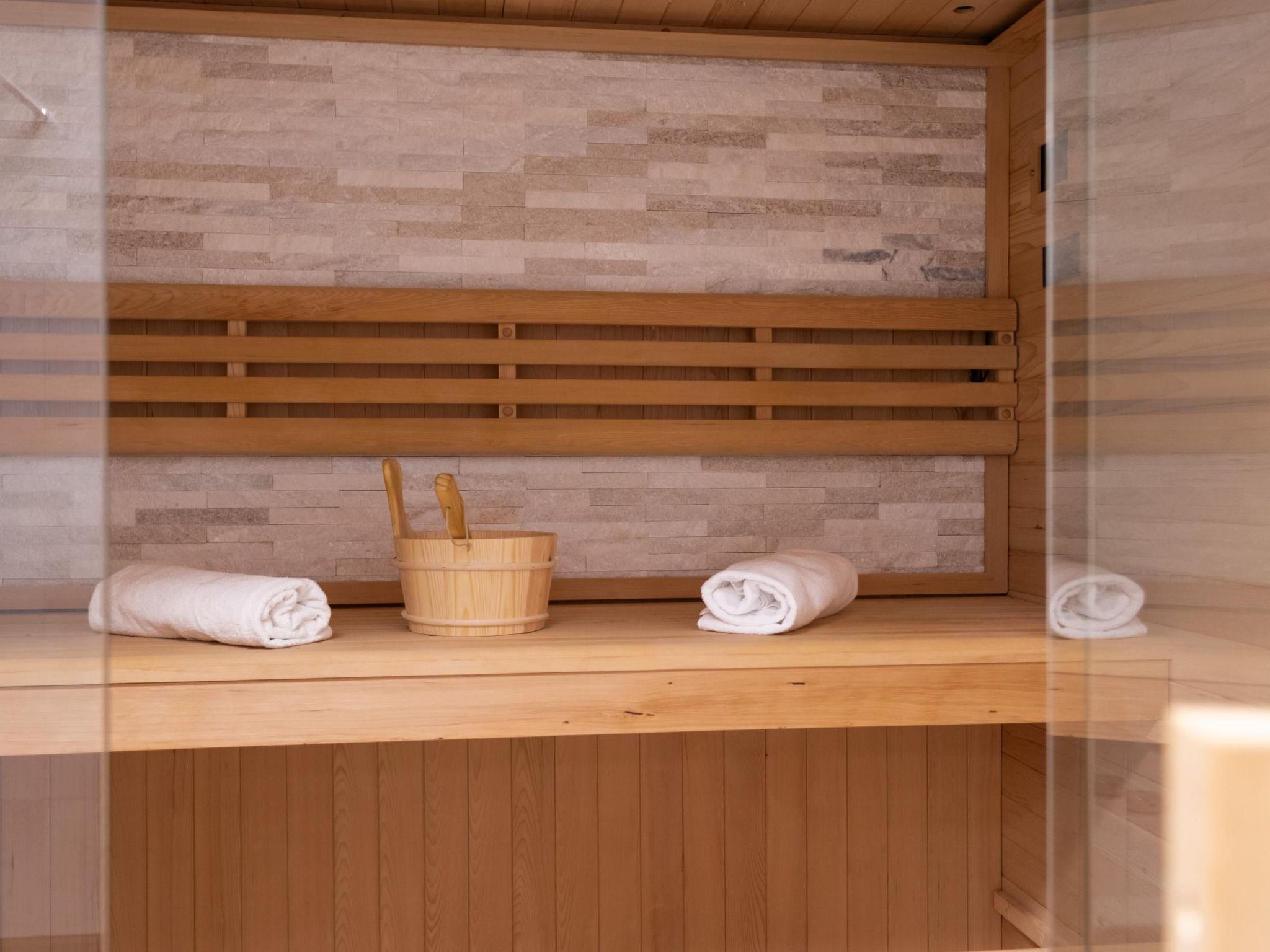 The villa stands out with its saltwater swimming pool, which can be heated, and a built-in Jacuzzi. There’s also a spa area with a sauna and a hydro-massage bath.