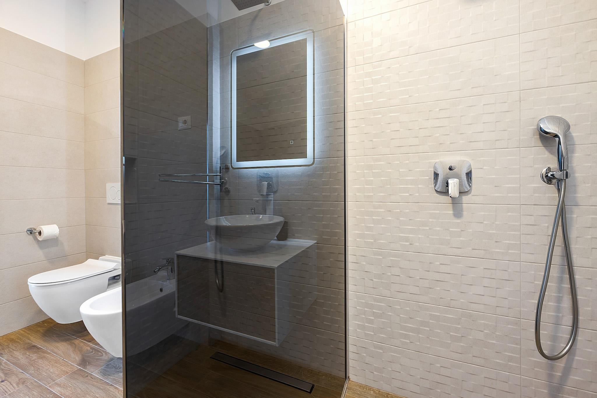 Ground floor: (Living room(single sofa bed, TV(flatscreen, satellite, smart TV)), open kitchen(hob, electric kettle, toaster, coffee machine, oven, microwave, dishwasher, fridge, freezer, dishes and cutlery(Bowls, chopsticks, plates, cups, etc.)), bedroom(double king size bed, TV(flatscreen, satellite, smart TV)), bathroom(shower), Internet access) On the 1st floor: (hallway(balcony), bedroom(double king size bed, TV(flatscreen, satellite, smart TV)), bedroom(double king size bed, TV), bathroom(shower), bathroom(bath tub, bidet), toilet, Bubble bath) Garden Furniture , hot tub, shower, washing machine, balcony, heating(central), air conditioning, terrace, garden(fenced), garden, bicycle storage, sun loungers, BBQ, parking, swimming pool(private), high chair, ironing board, iron, hairdryer, drying cabinet, crib(free), hot water