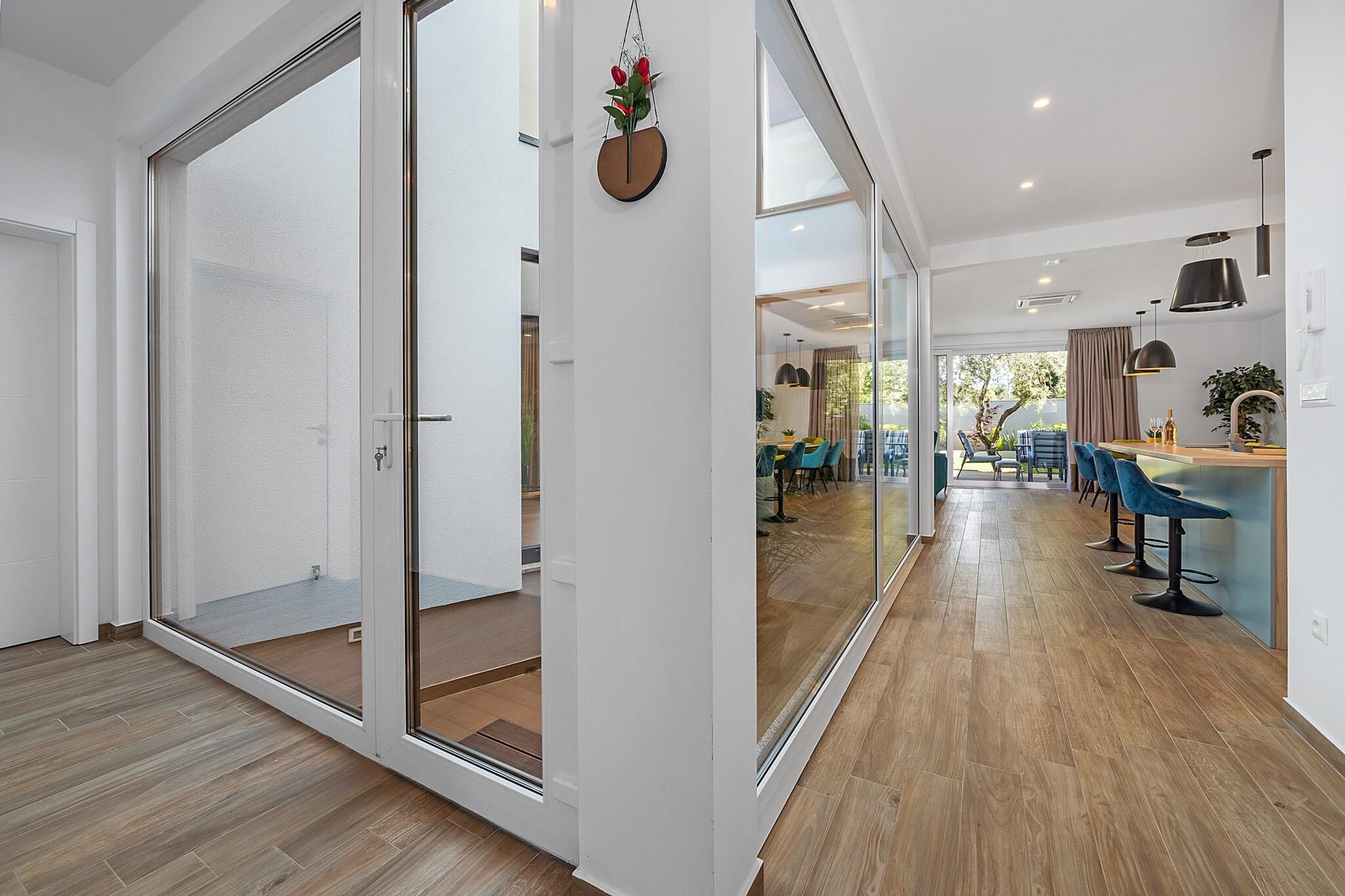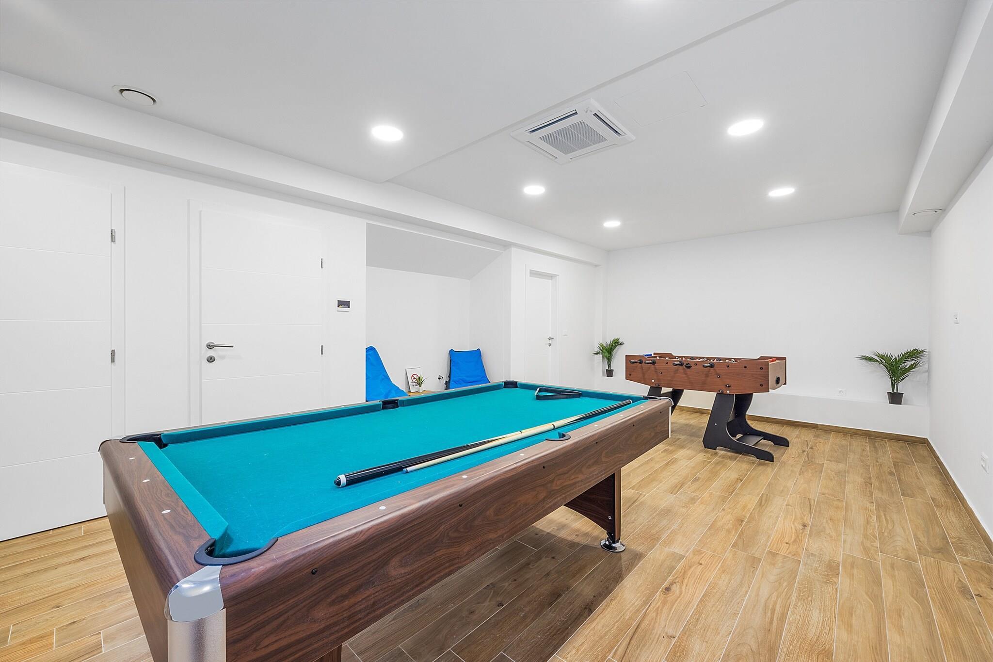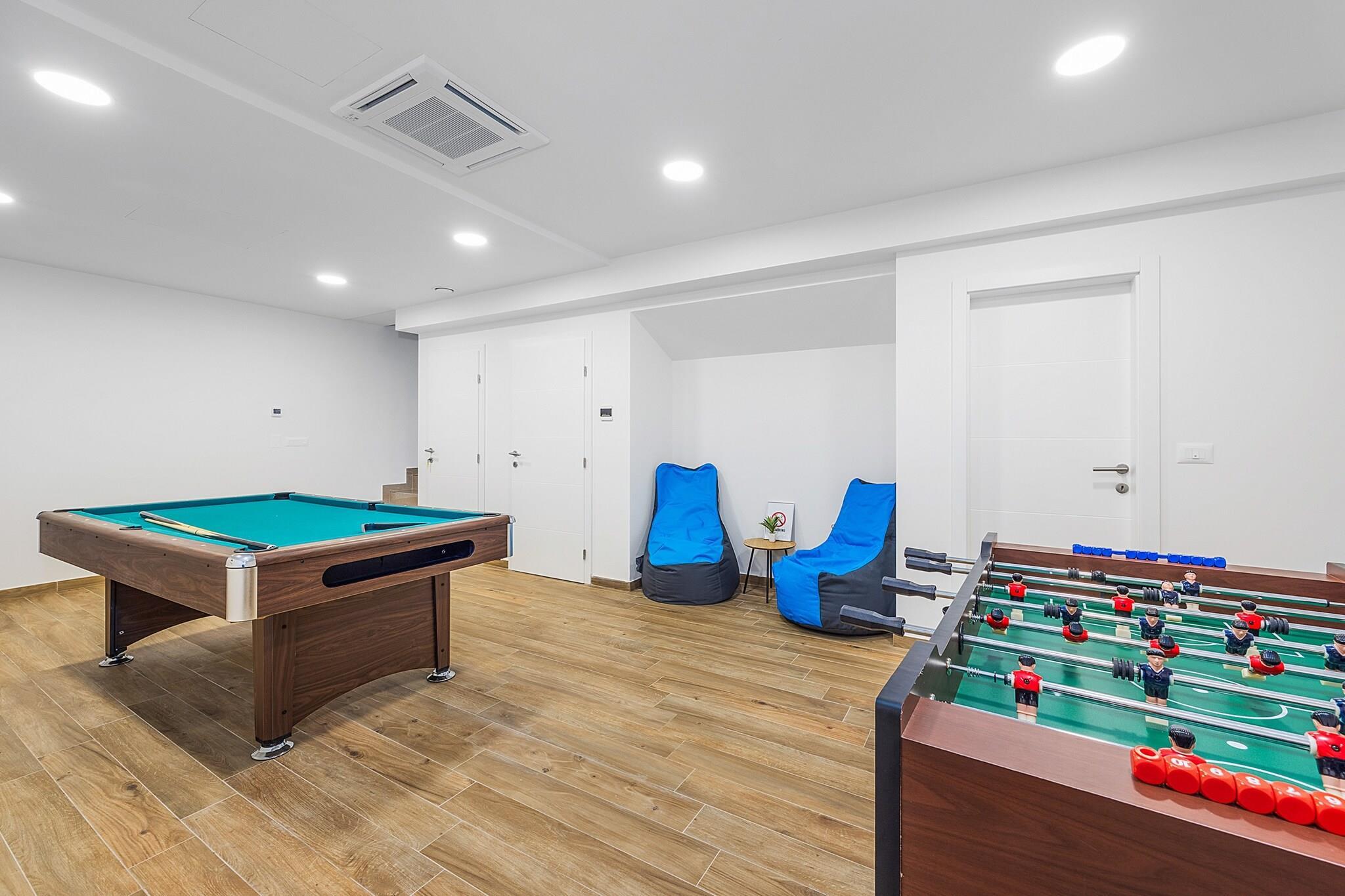 Experience the fulfillment of your dreams in this exquisite villa, perfectly situated near the stunning town of Porec in the charming village of Cervar. Offering the ultimate getaway, this retreat invites you to enjoy leisurely days by the pool or jacuzzi, while also providing opportunities for fun-filled activities like billiards and table football—all without the need for difficult choices. Surrounded by beautifully landscaped grounds, the villa is a haven for relaxation, inviting you to soak up the sun on loungers beneath the gentle shade of trees or enjoy delightful barbecues in the garden, creating unforgettable moments with family and friends. Step inside to discover a tastefully decorated living space that seamlessly connects to a fully equipped kitchen overlooking the pool and garden. On the ground floor, a comfortable bedroom awaits, complete with its own bathroom and TV for privacy and convenience. Venture to the upper level to find a serene balcony featuring a jacuzzi and sunbeds, accessible from both the hallway and one of the charming bedrooms, which also boasts a jacuzzi in its bathroom. The villa’s basement offers even more excitement, with table tennis, pool, and table football available for hours of entertainment. Just 1 kilometer from a beautiful pebble beach in Cervar Porat, you can indulge in swimming, beach volleyball, and delightful meals at nearby restaurants and cafes. Families will appreciate the local park just a 2-minute walk away, while the area is rich in attractions such as the remarkable Baredine pit, Adventure Park Sky Fox, and the thrilling Aquapark Istralandia. Whether you're looking to unwind in nature or explore vibrant surroundings, this enchanting retreat is your ideal destination for the perfect escape.