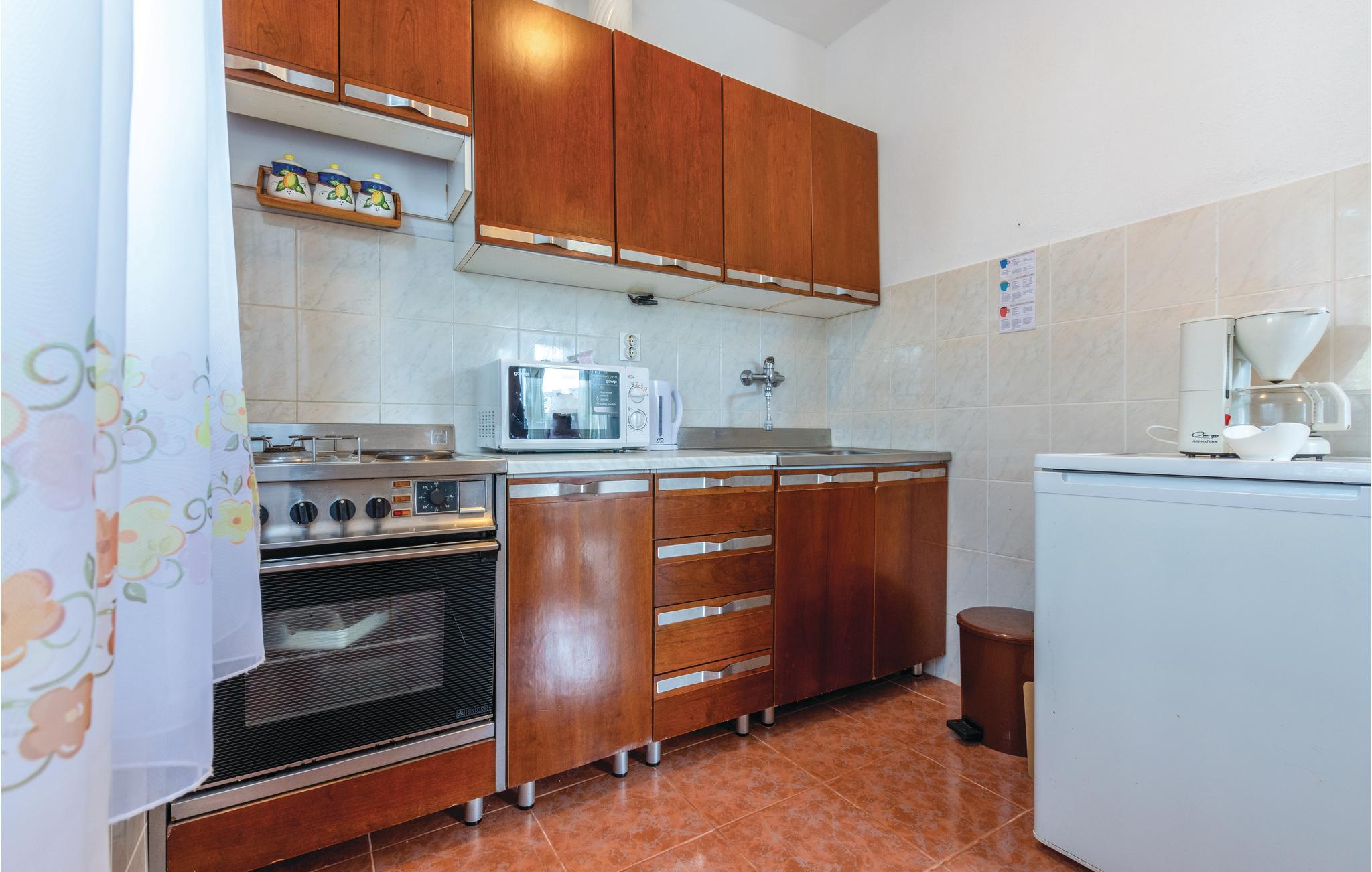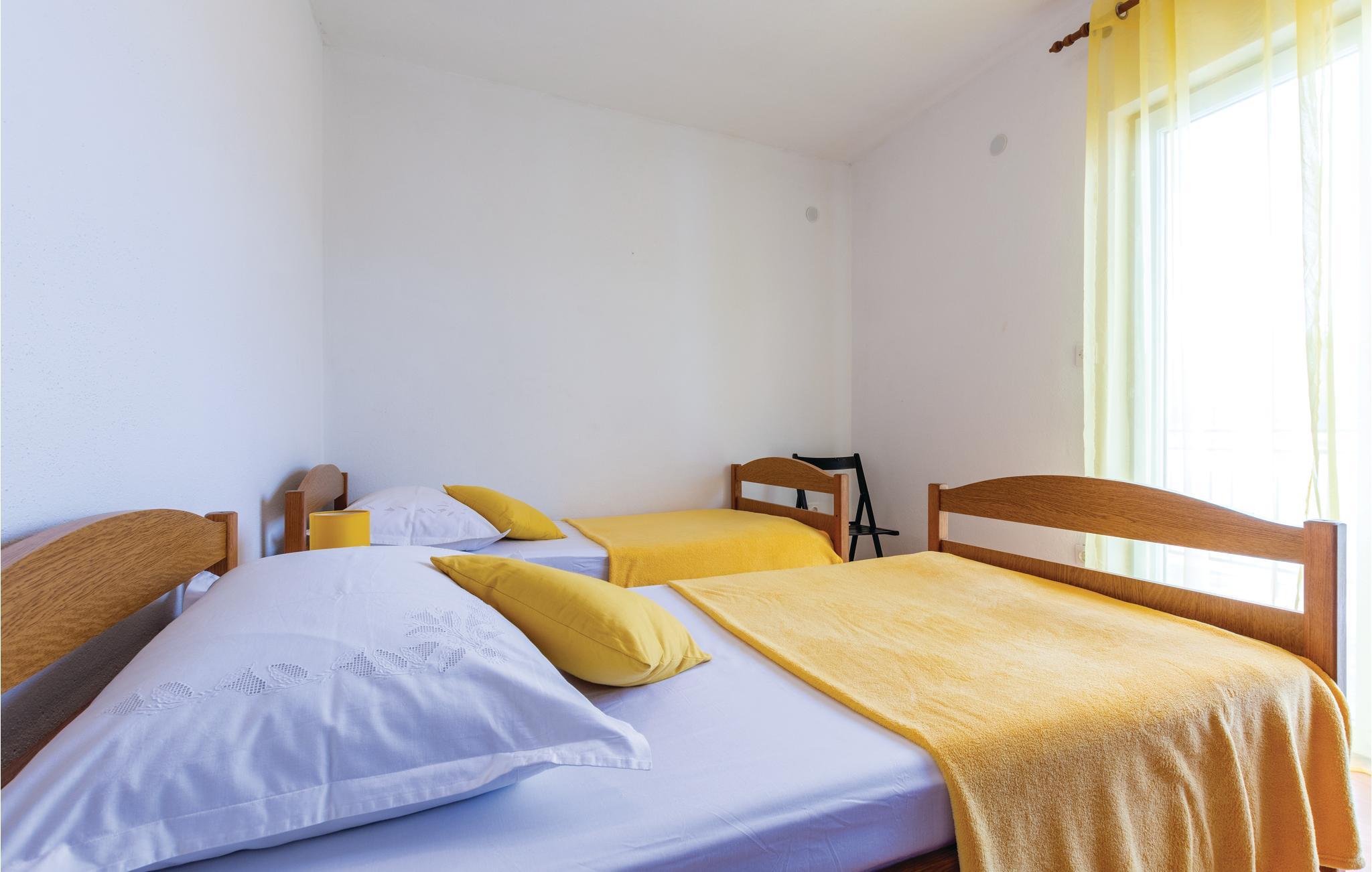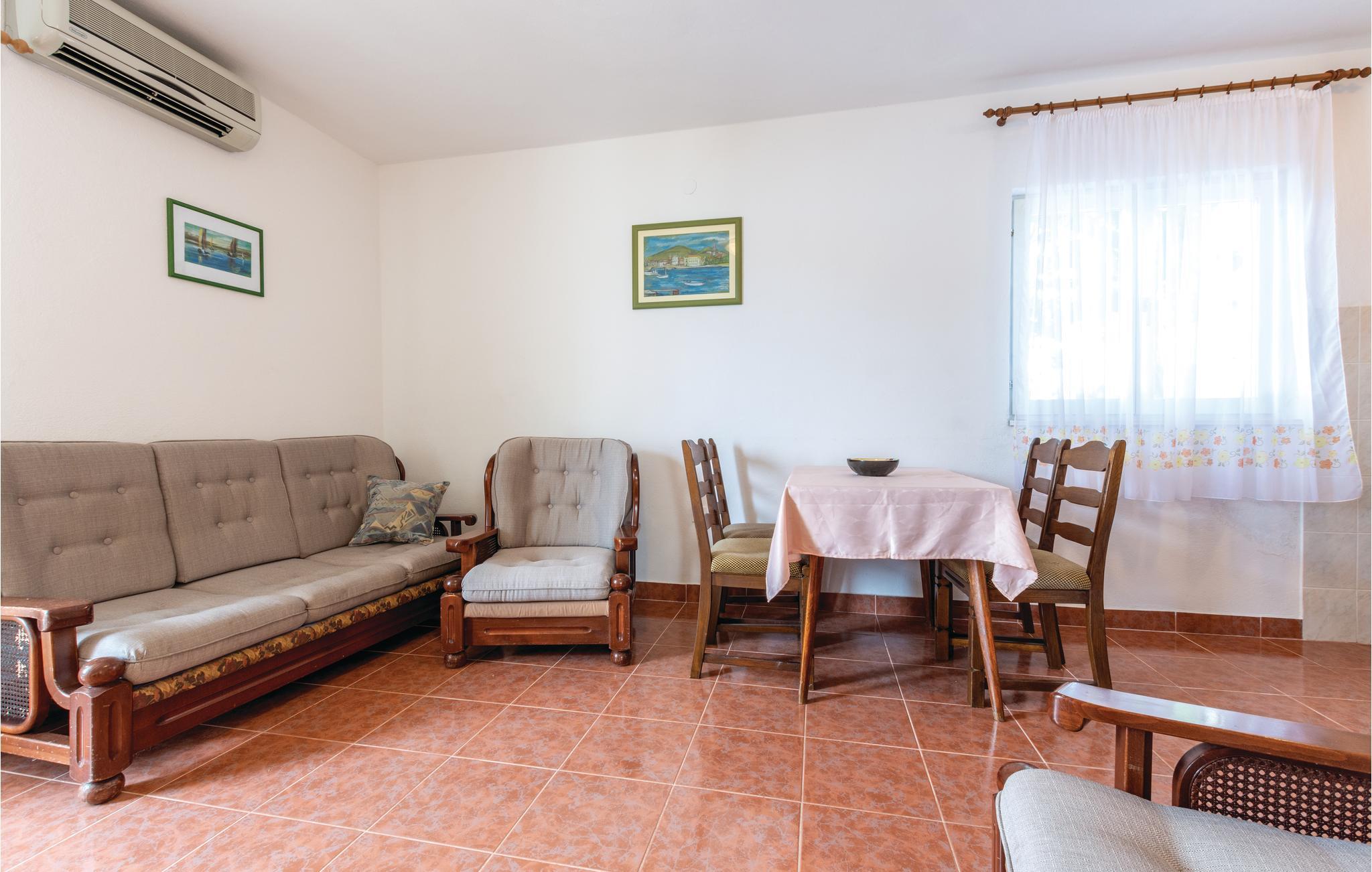 Funktionelle Ferienwohnung im Erdgeschoss eines Wohnhauses ca. 80m vom schönen und kinderfreundlichen Kiesstrand entfernt. Der Weg führt zum Teil über Treppen runter zum Strand. Ideal für einen Familienurlaub, da die Einheit über zwei Schlafzimmer, eine Küche mit Wohnraum und ein Badezimmer verfügt. Über zwei Stufen erreichen Sie die Terrasse, auf der Sie frühstücken und dabei die Aussicht auf das Meer genießen können. Die Insel ist mit einer Brücke zum Festland verbunden und bereitet bei der Anreise keine Probleme. Besuchen Sie Trogir, das Sie mit Kultur- und Freizeitveranstaltungen erwartet.