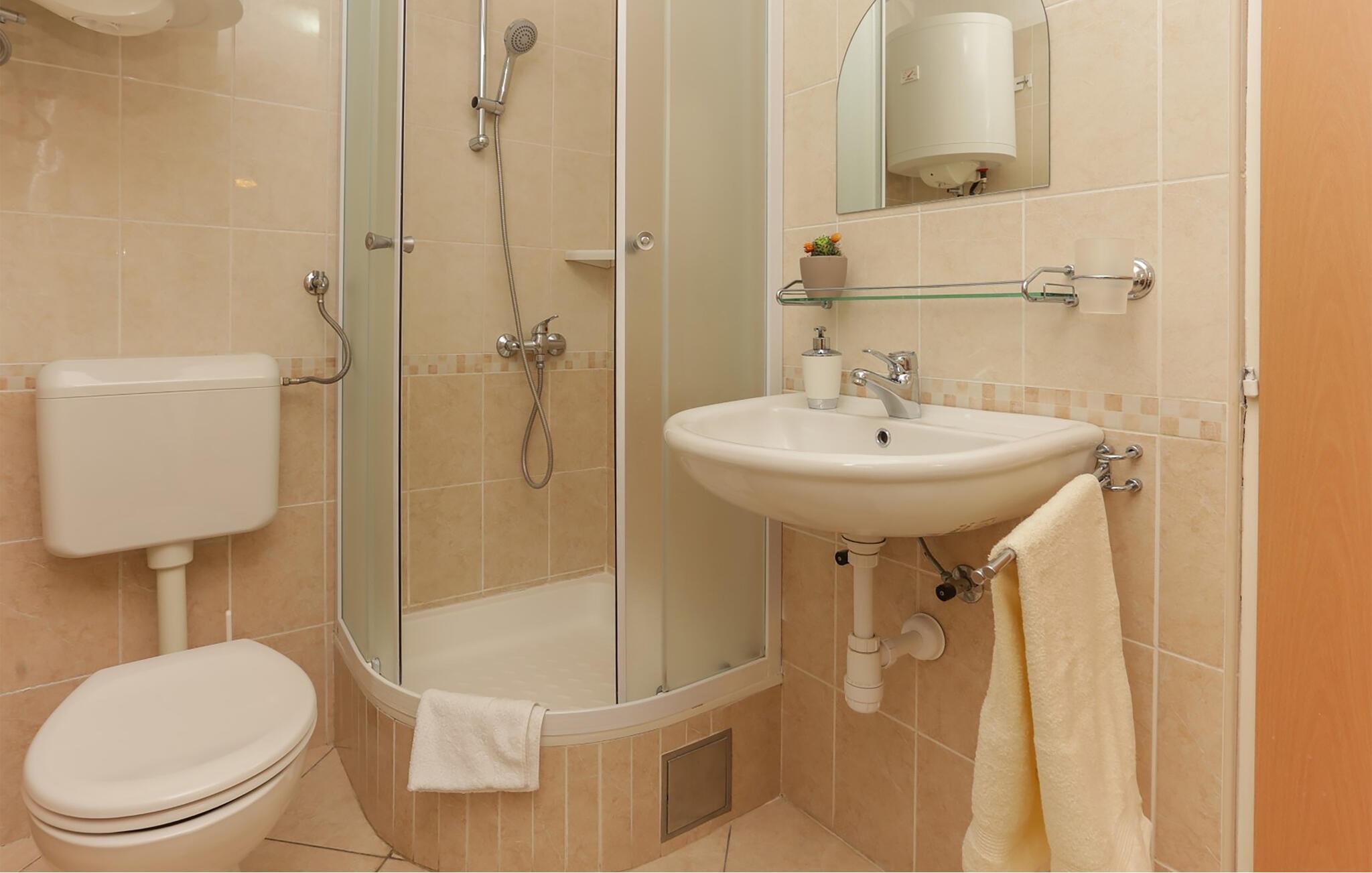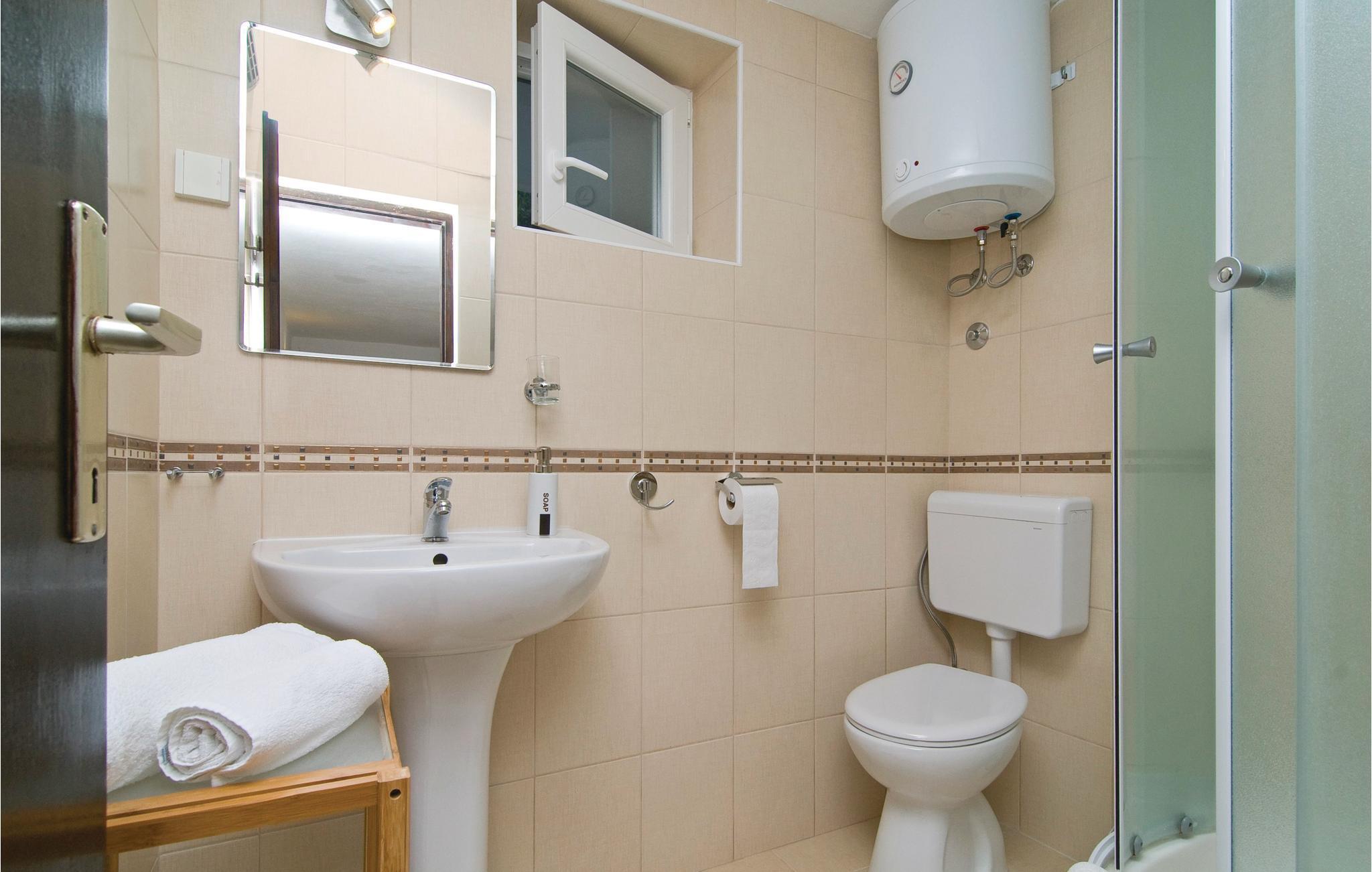 Badezimmer (nr. 2) - WC. Warmes und kaltes Wasser. Dusche