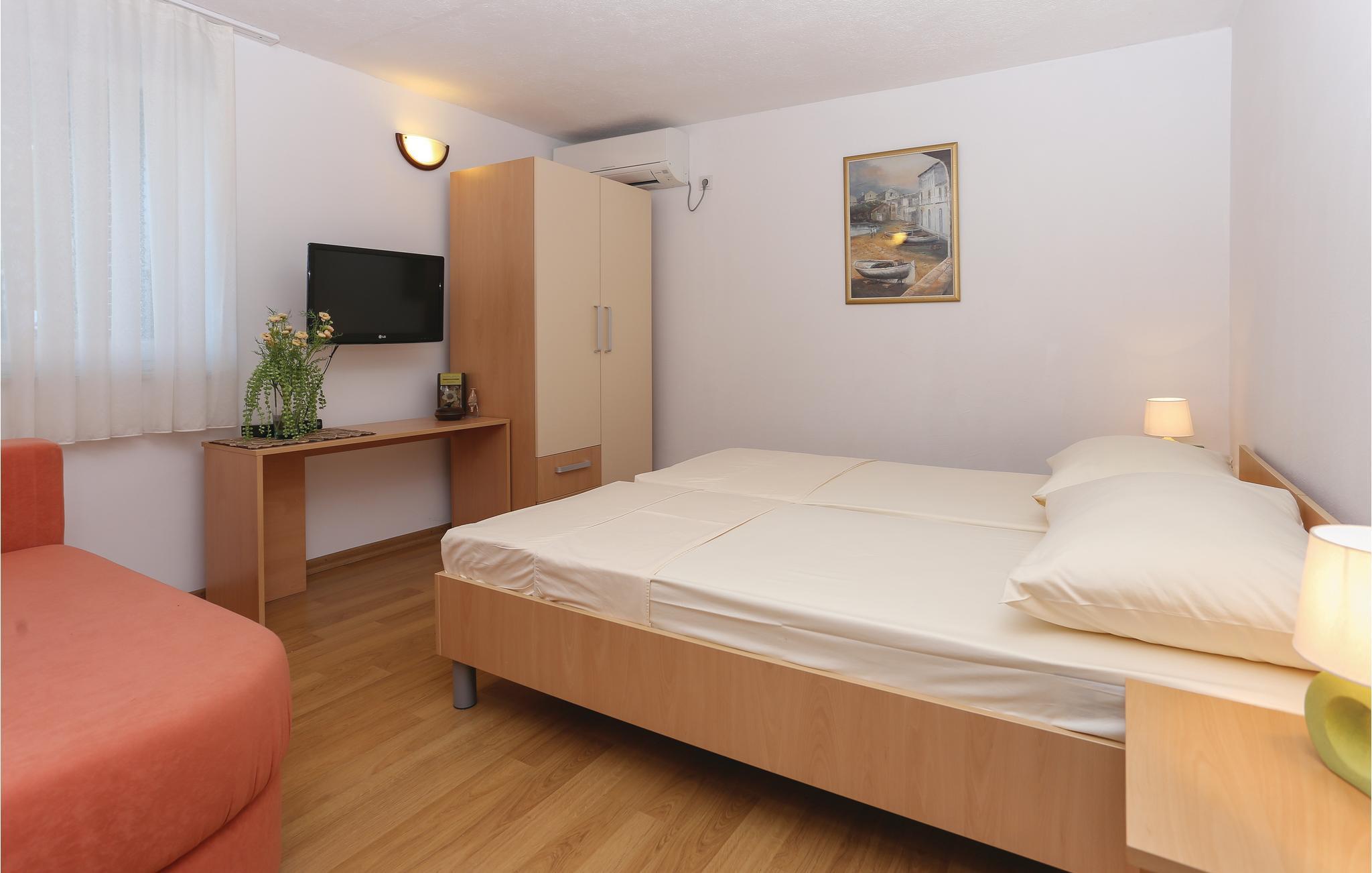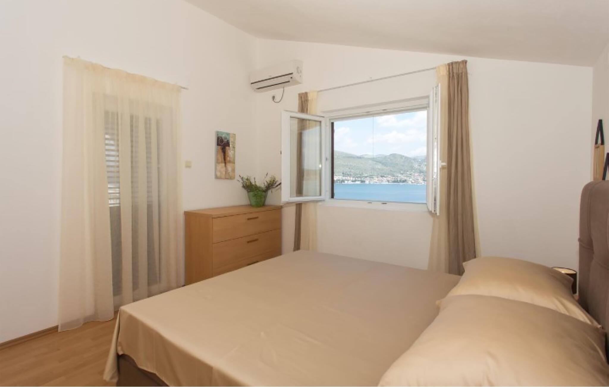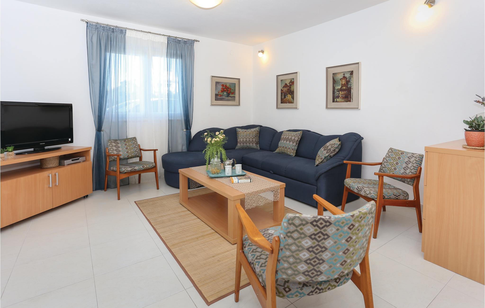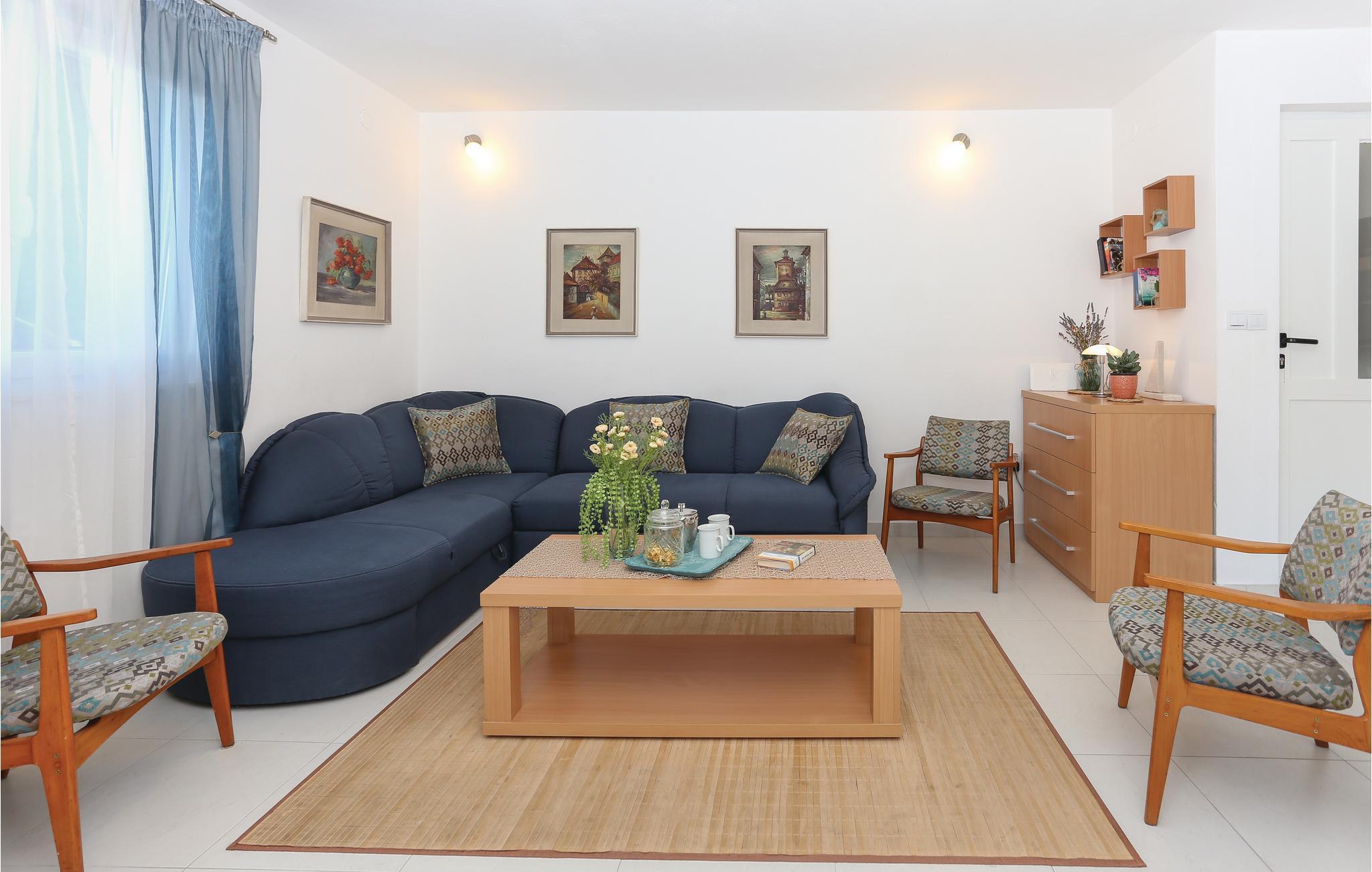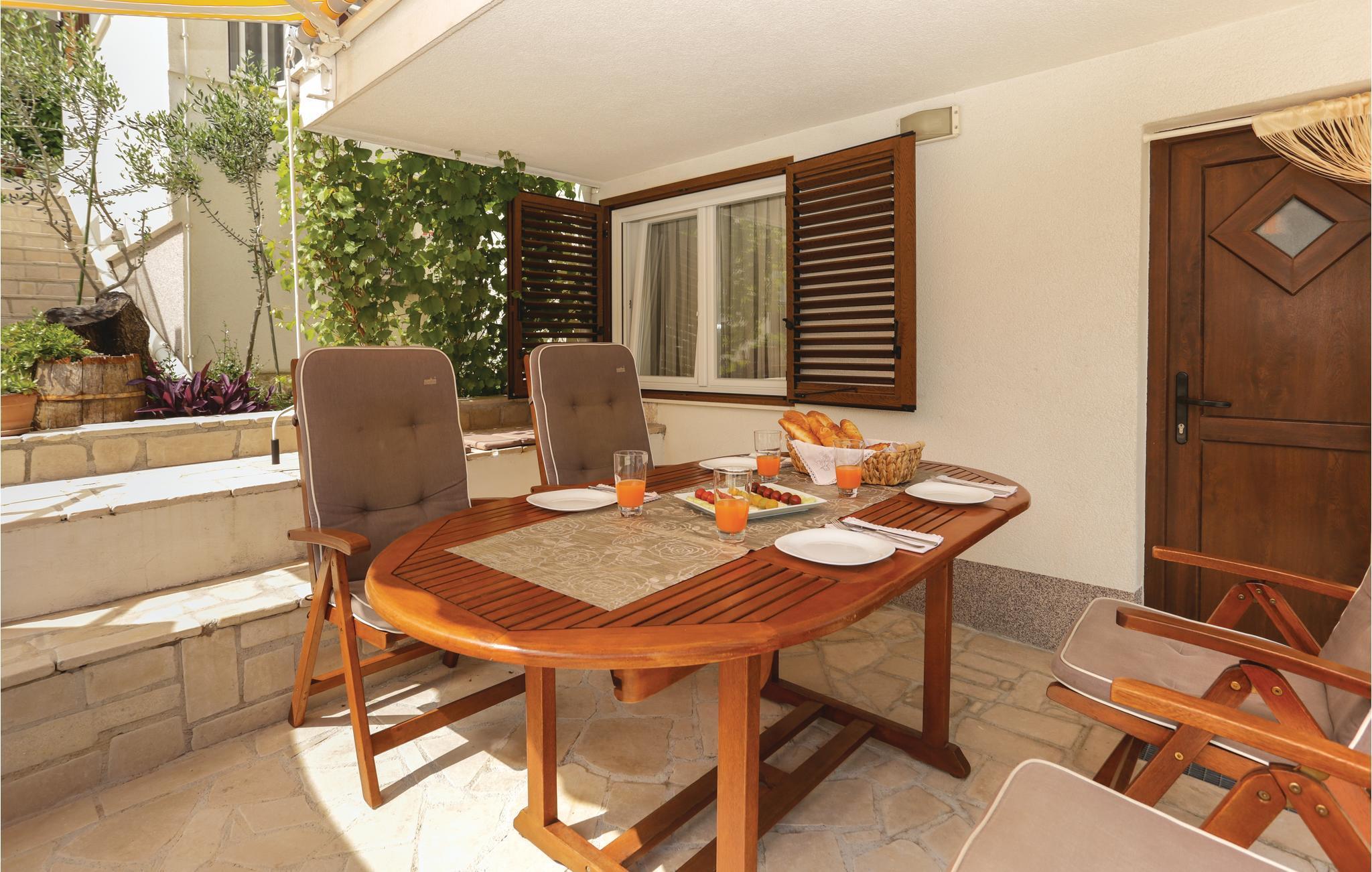 Dieses praktische Ferienhaus befindet sich in einem kleinen Küstenort und ist ideal für den Urlaub befreundeter Familien geeignet, da die drei Wohneinheiten auf drei Etagen verteilt sind. Jede Etage ist eine Wohnung für sich und hat auch einen eigenen Außeneingang. So können Sie viel gemeinsame Zeit verbringen, doch genießen auch Privatsphäre als Familie. Das Haus hat schöne Terrassen, die Blick auf das Meer und schöne Berge bieten. Erfrischung können Sie im Pool vor dem Haus oder im 100 m entferntem Meer finden, wohin Sie ein steiler Fußweg und 100 Stufen führen. Zum UNESCO Weltkulturerbe Trogir sind es ca. 8 km. Dort finden Sie Unterhaltung für Groß und Klein.