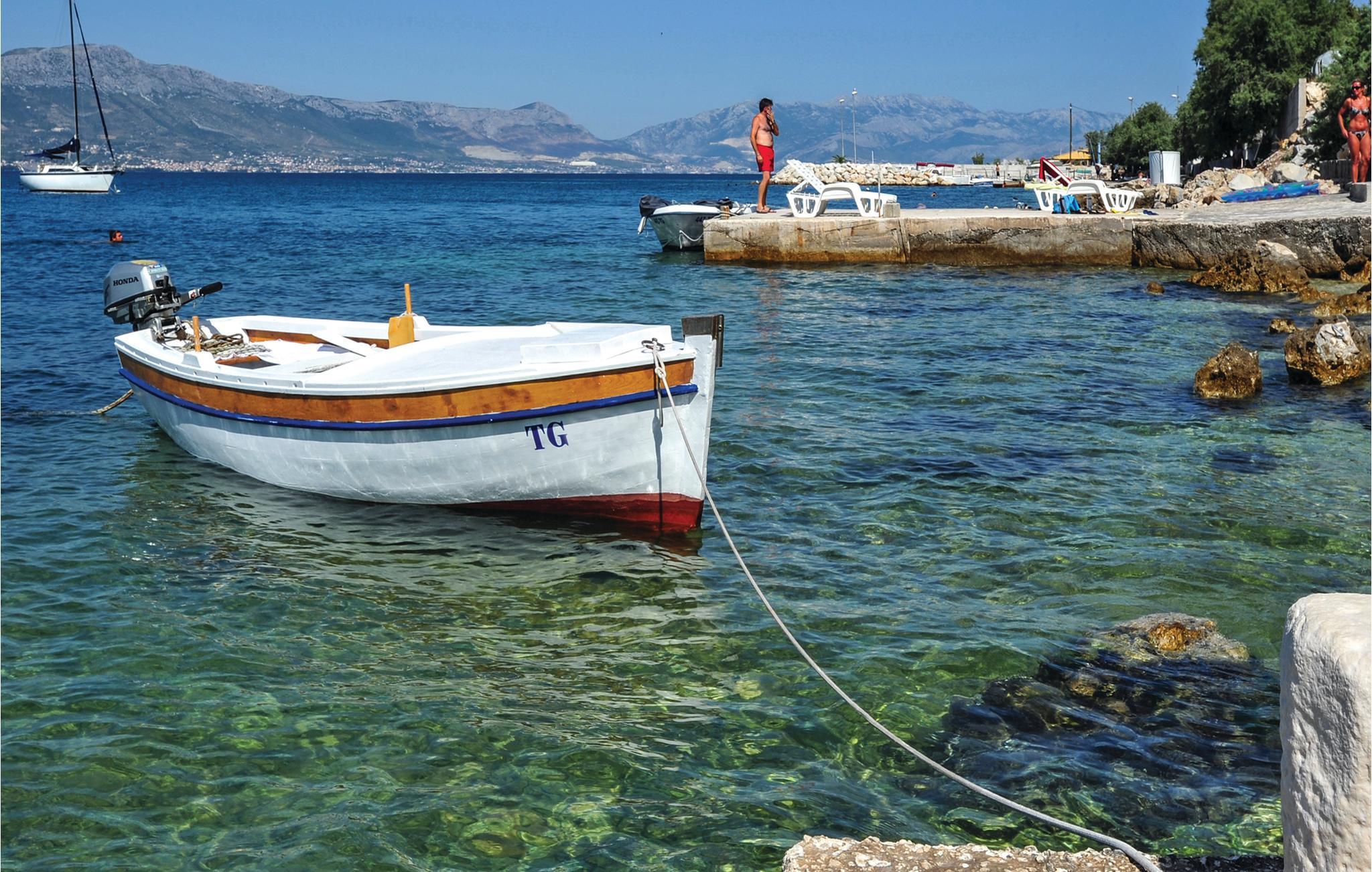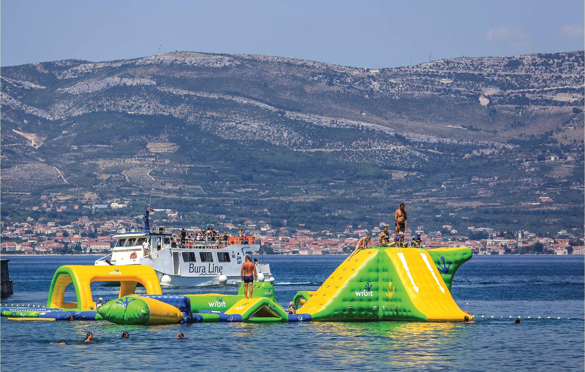 Dieses geschmackvoll eingerichtete Ferienhaus mit Swimmingpool liegt neben einem Pinienwald und etwa 700 m vom Meer entfernt. Genießen Sie Ihren Urlaub in diesem Haus mit vier Schlafzimmern, drei Badezimmern und Wohnzimmer mit Küche. Im Dachgeschoss beträgt die niedrigste Deckenhöhe 110 cm. Entspannen Sie auf der riesigen Terrasse mit Sonnenliegen, wo Sie sich bei Privatsphäre sonnen können. Erleben Sie das Nachtleben in Trogir in ca. 5km Entfernung. Sehenswert ist ebenfalls die Altstadt von Split mit ihrem Diokletianpalast, der Promenade sowie den schönen Waldpark mit angenehmen Spazierwegen und herrlichen Aussichtspunkten.