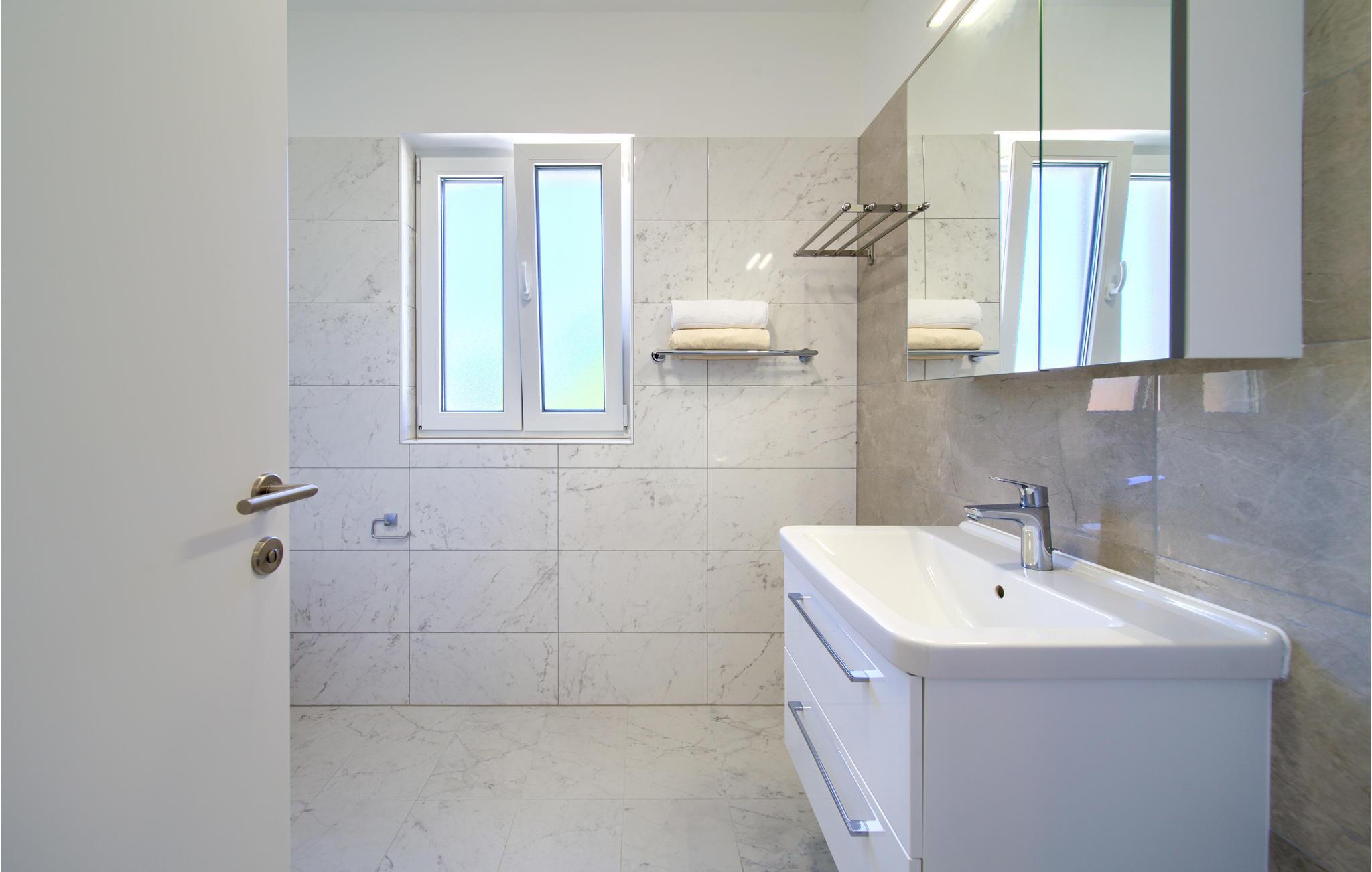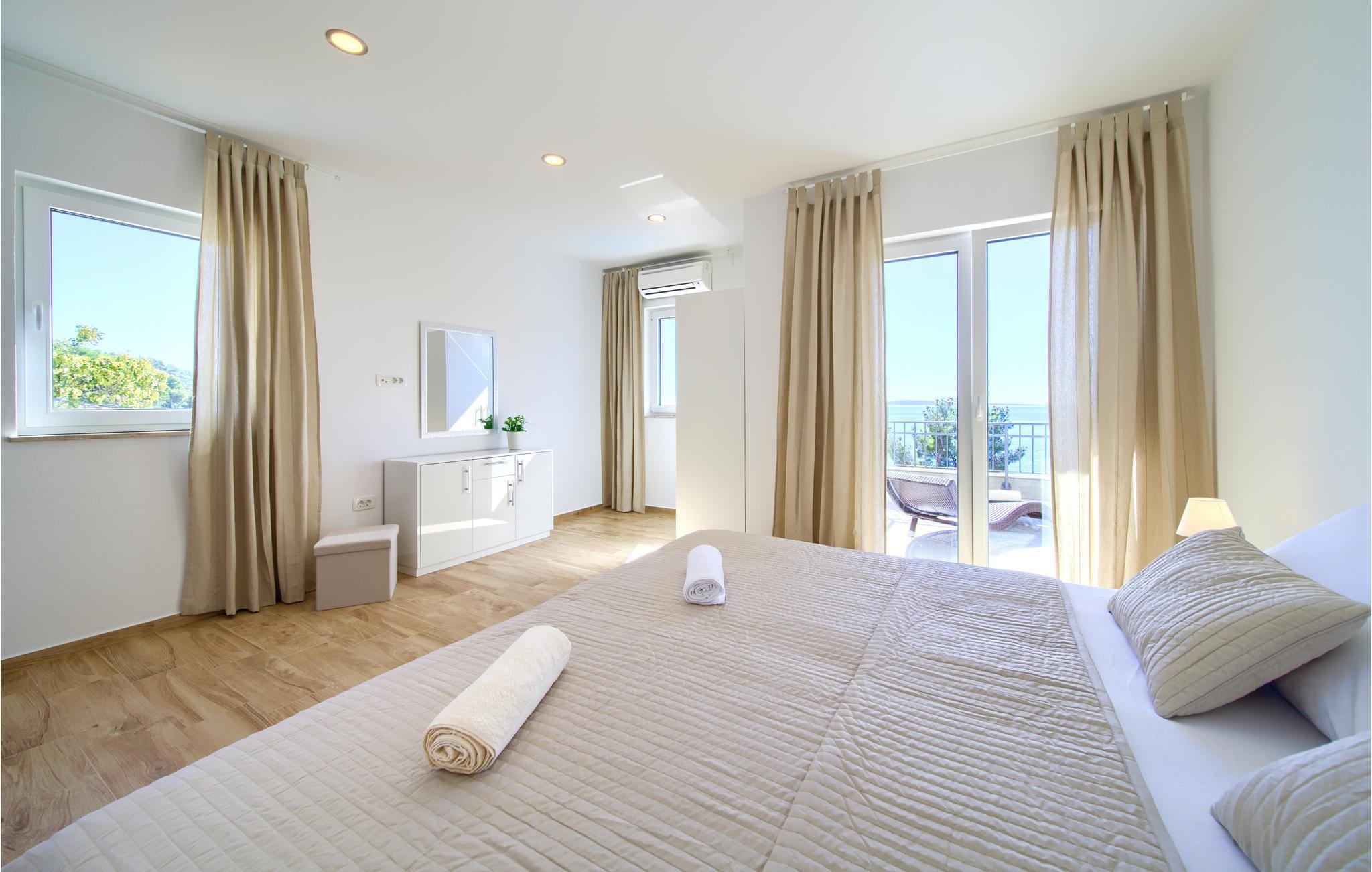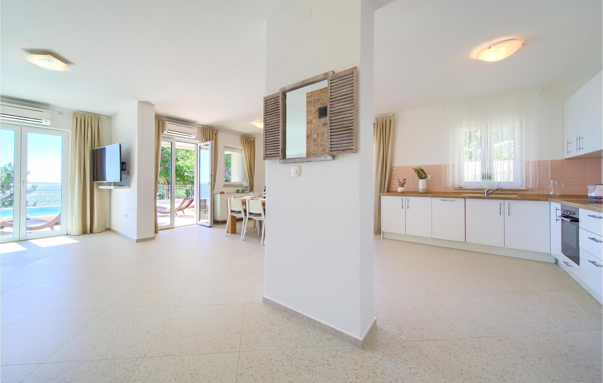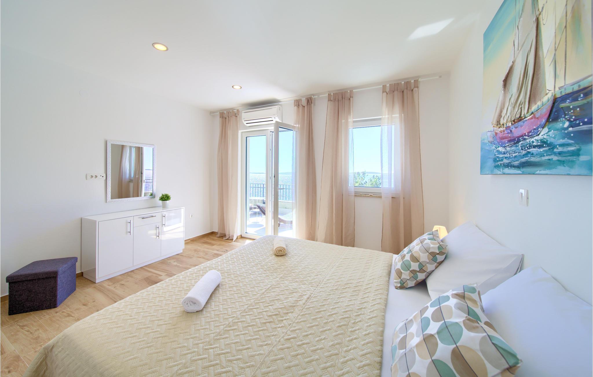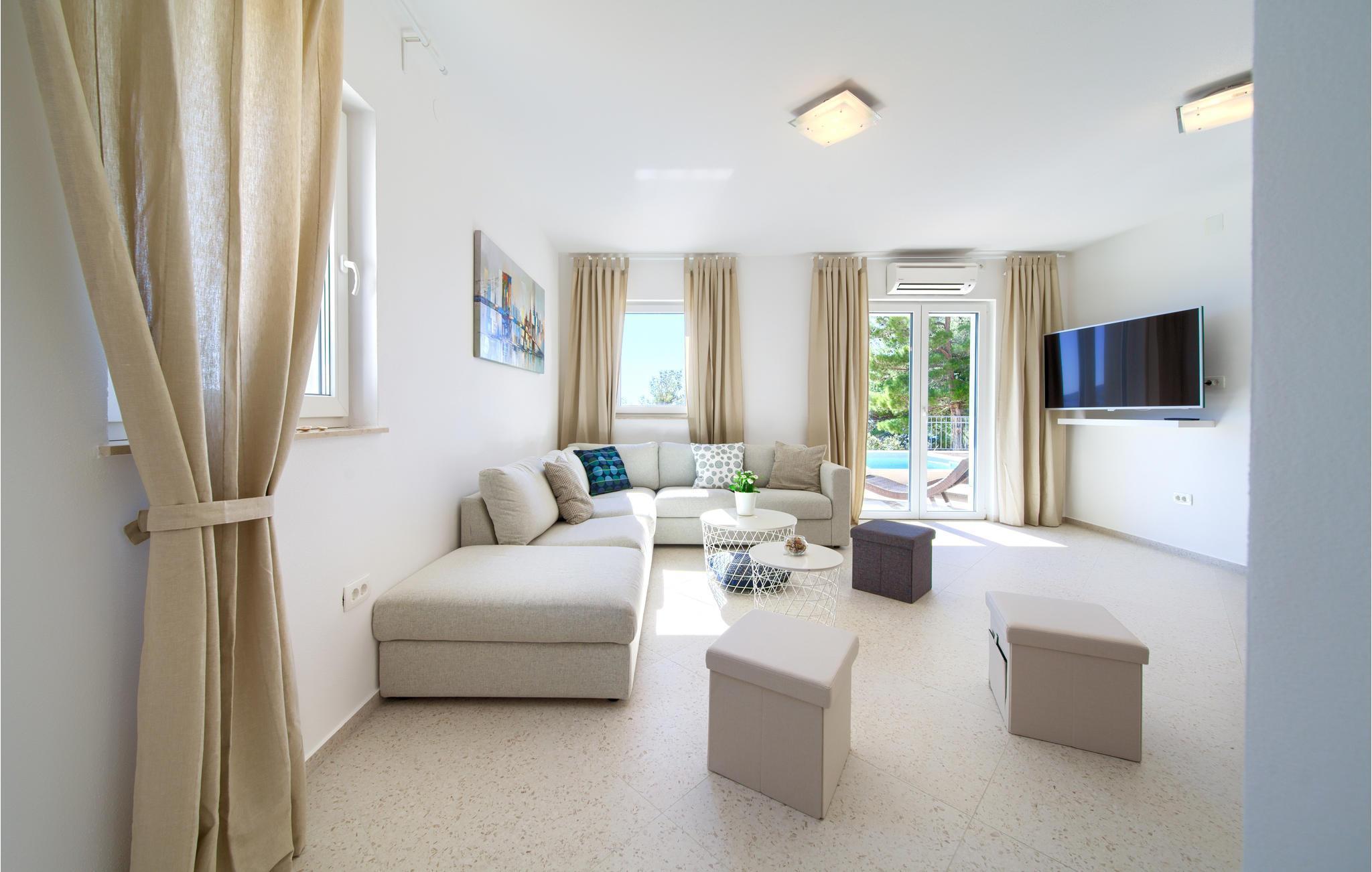 Das Erdgeschoss verfügt über einen offenes Wohnzimmer mit Küche und Essbereich und im Obergeschoss sind 4 Schlafzimmer mit en-suite Bädern. Vom Wohnzimmer haben Sie direkten Zugang auf die wunderschöne Terrasse mit Pool, Liegestühlen, Loungebereich und überdachter Terrasse mit Grill, die zum Speisen im Freien einlädt. Hinter dem Haus erwartet Aktivurlauber ein Outdoor-Fitnessbereich. Auf dem unteren Teil des Grundstück befindet sich ein Haus, in dem die Eigentümer wohnen. Entdecken Sie die Insel Cres und genießen dessen Vorzüge, die wunderschönen Strände, gutes Essen, Bootsfahrten sowie Rad- und Wandertouren.