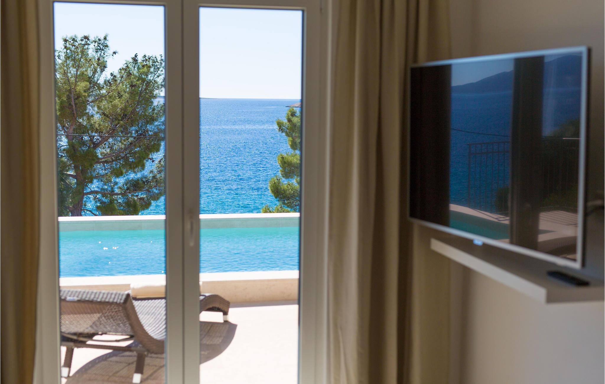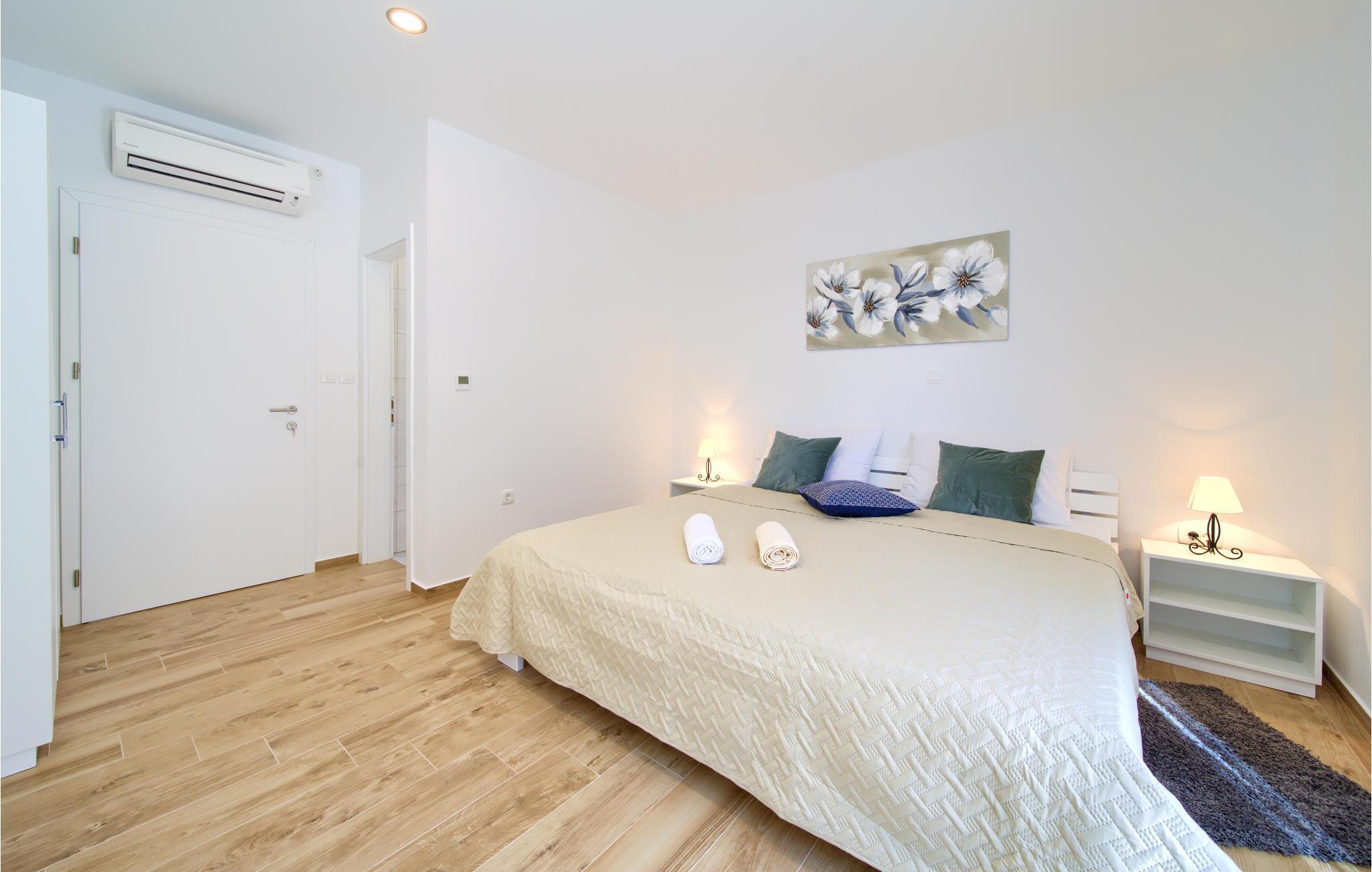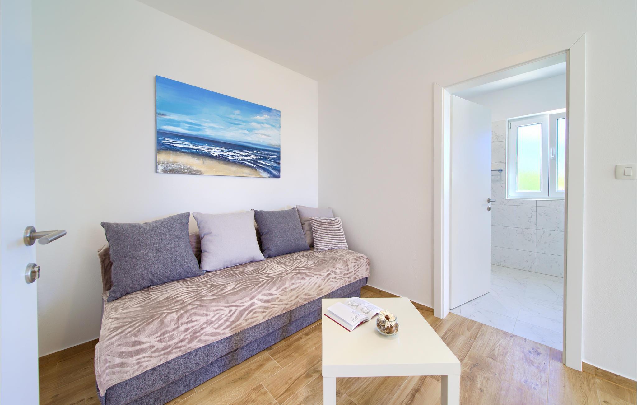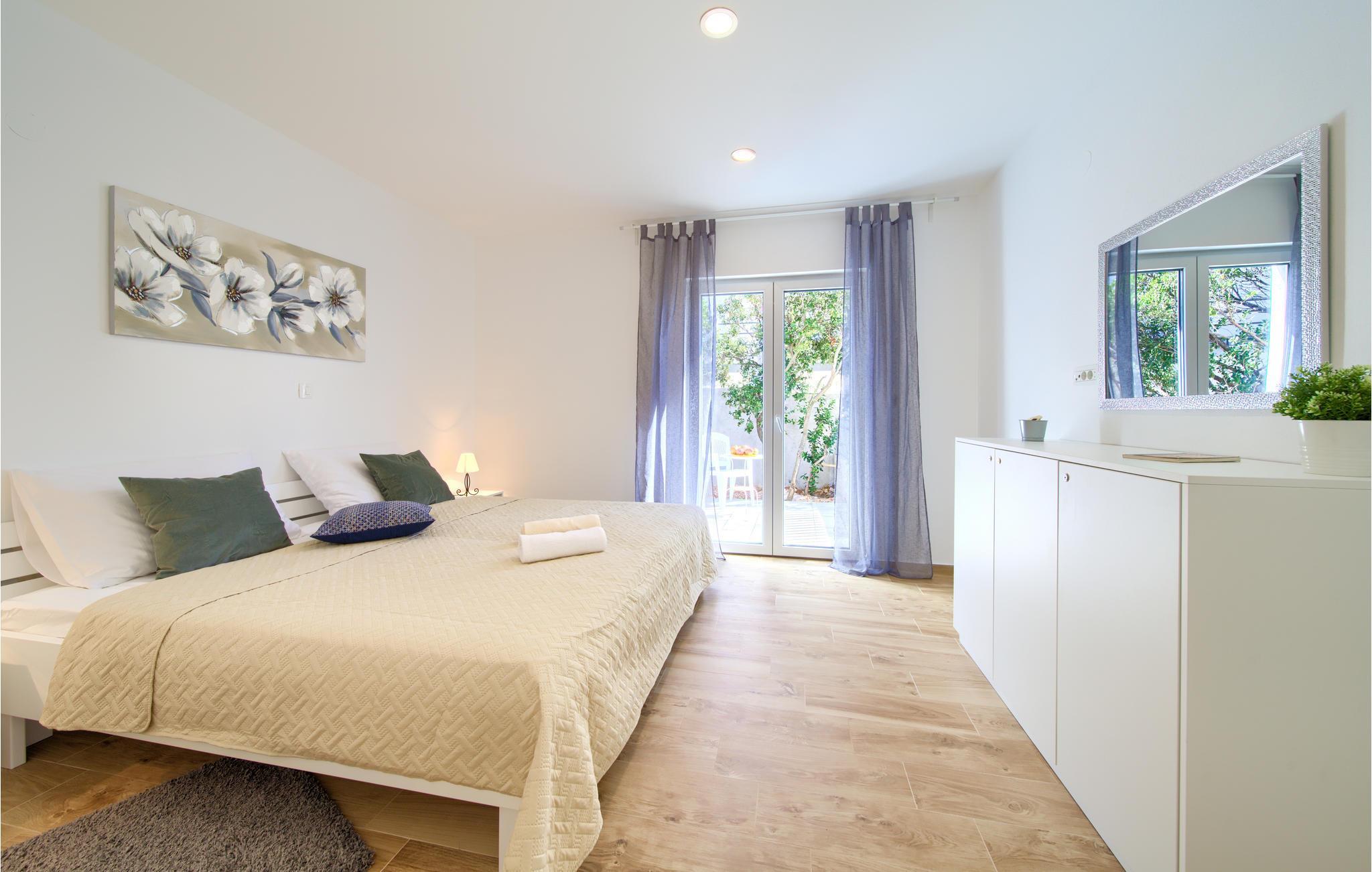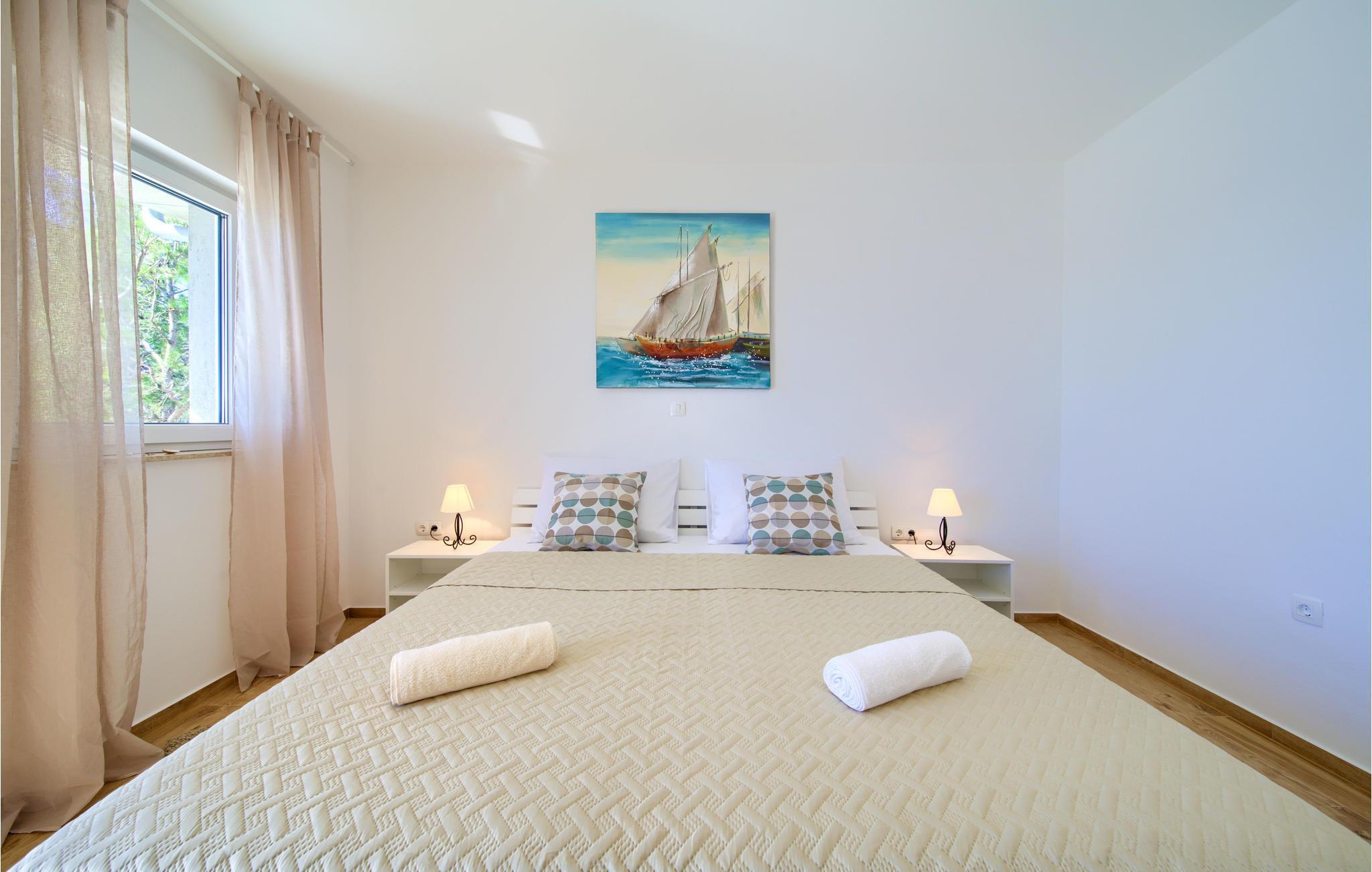 Das Erdgeschoss verfügt über einen offenes Wohnzimmer mit Küche und Essbereich und im Obergeschoss sind 4 Schlafzimmer mit en-suite Bädern. Vom Wohnzimmer haben Sie direkten Zugang auf die wunderschöne Terrasse mit Pool, Liegestühlen, Loungebereich und überdachter Terrasse mit Grill, die zum Speisen im Freien einlädt. Hinter dem Haus erwartet Aktivurlauber ein Outdoor-Fitnessbereich. Auf dem unteren Teil des Grundstück befindet sich ein Haus, in dem die Eigentümer wohnen. Entdecken Sie die Insel Cres und genießen dessen Vorzüge, die wunderschönen Strände, gutes Essen, Bootsfahrten sowie Rad- und Wandertouren.