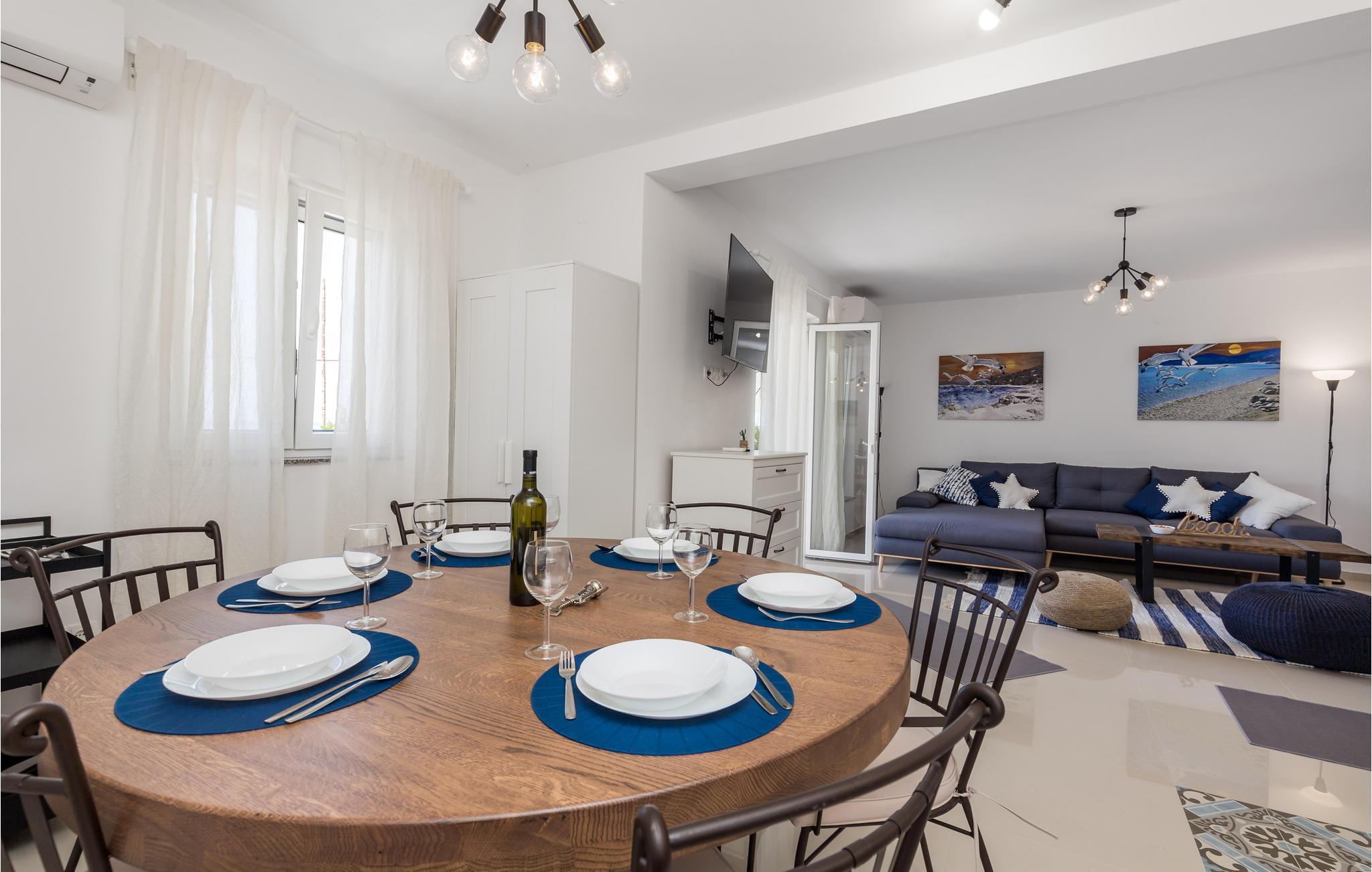 Sie wohnen in einem charmanten Ferienhaus in der Nähe des Meeres, das ca. 200 m vom Haus entfernt liegt und von dem Sie nur durch eine Ortsstraße getrennt sind. Das Haus ist wunderschön und modern eingerichtet und bietet den richtigen Rahmen für einen erholsamen Urlaub. Es besteht aus einer Küche mit Esszimmer, dem Wohnzimmer, zwei Schlafzimmern und drei Bädern. Die Etagen sind durch eine Innentreppe verbunden.