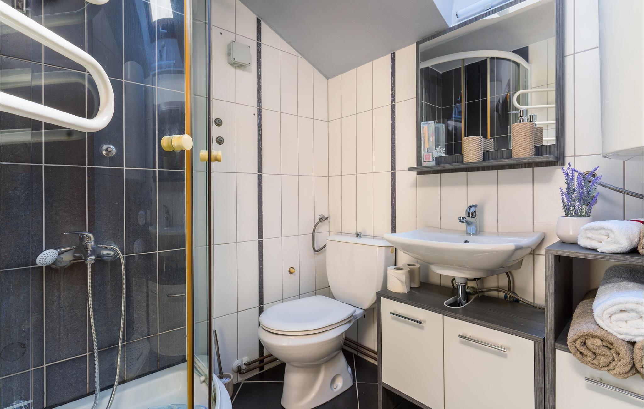 Badezimmer 4m2 (nr. 1) - WC. Warmes und kaltes Wasser. Dusche