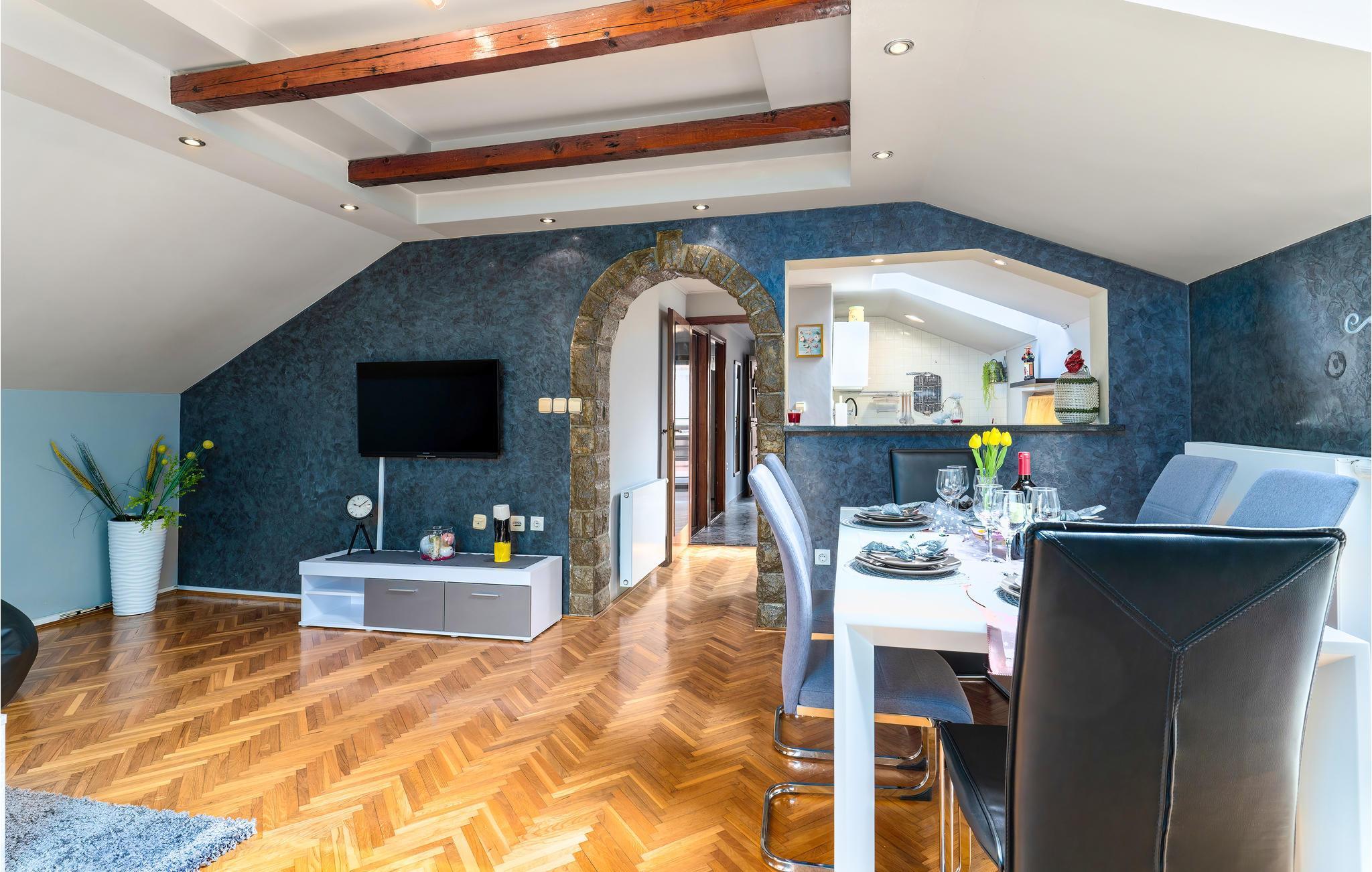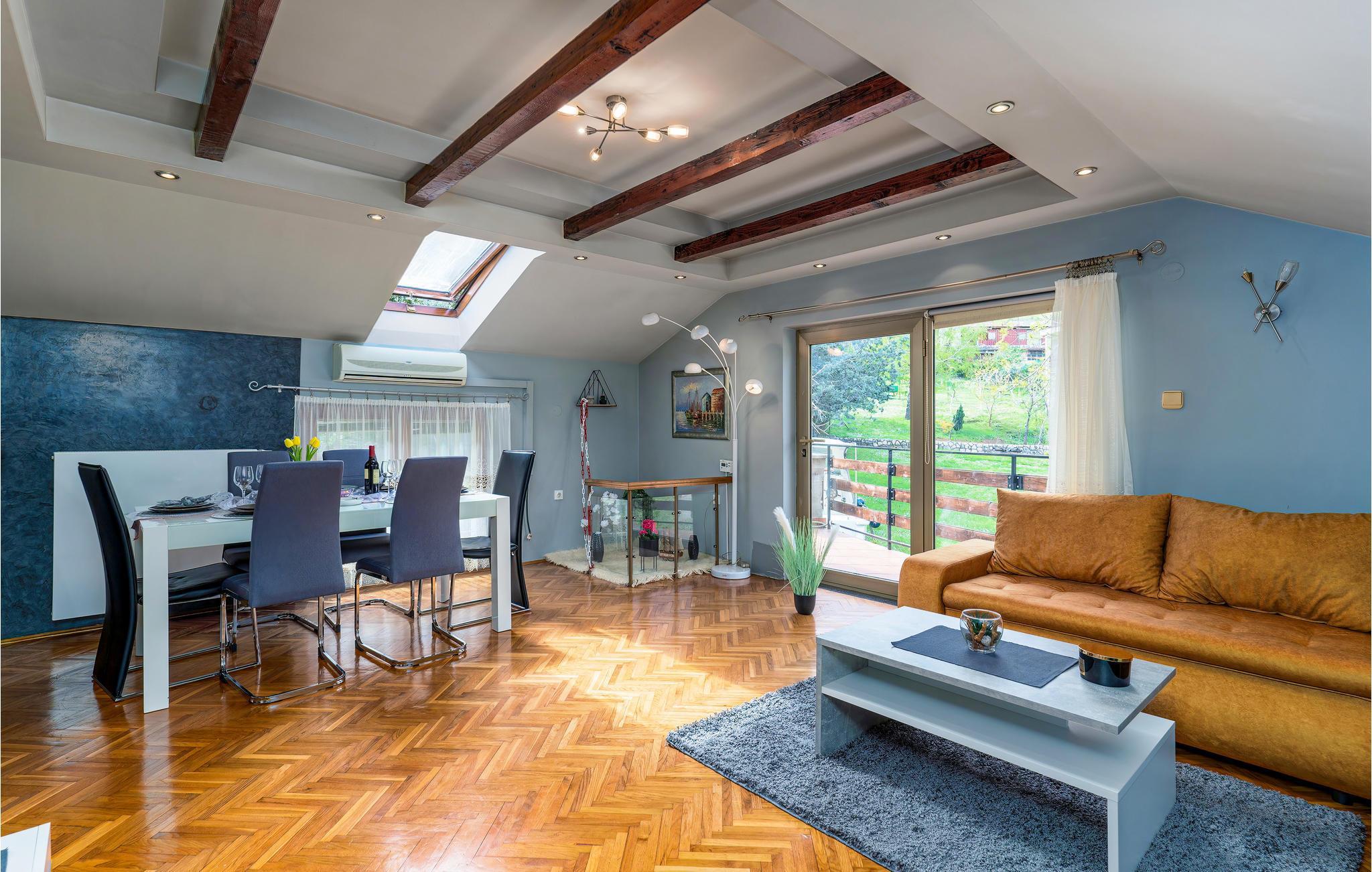 Treten Sie ein in eine charmante einladende Ferienwohnung mit gemütlicher Möblierung, herzlichen Details und prächtigen Farbakzenten. Die Bauweise und Struktur des Hauses bieten dem ganzen Wohnraum ein geräumiges aber gleichzeitig behagliches Flair. Hier können Sie sich mit Ihrer Familie oder FreundInnen besonders wohlfühlen, und den Urlaub in Kroatien genießen, wobei die Seele baumeln lassen an erster Stelle steht. Im Freien stehen Ihnen eine eigene Terrasse mit Blick auf das Meer zur Verfügung sowie ein großer Garten mit Pavillon und Gemeinschaftsgrill, den Sie mit CKA327 teilen. Hier können Sie sich in der Sonne ins Grüne legen, Ihre Zeit in einen Roman investieren, oder Ihre Abende beim Grill ausklingen lassen.