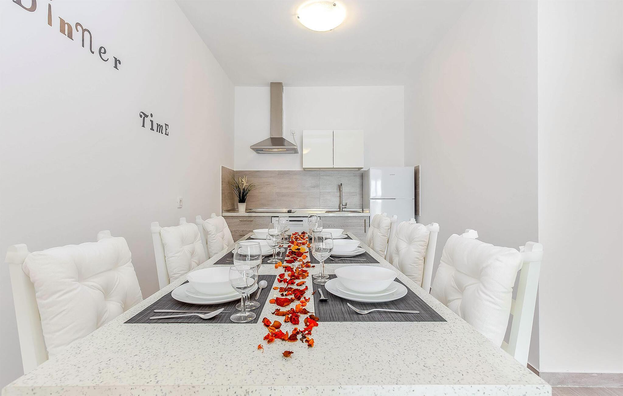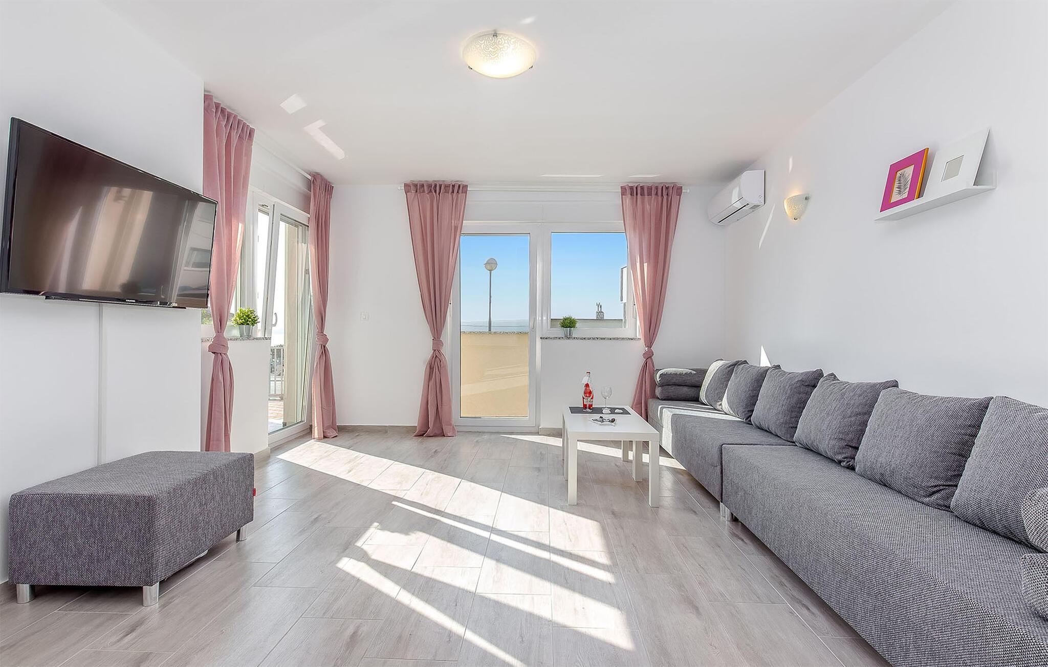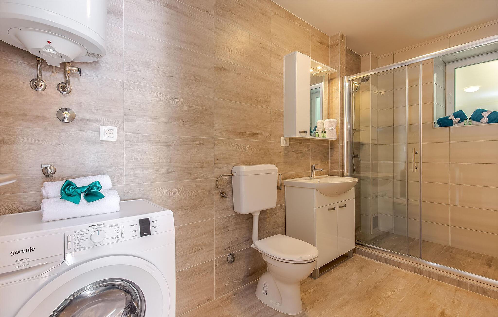 Dank seiner Lage außerhalb des Stadtzentrums ist es die Unterkunft eine wahre mediterrane Oase der Ruhe. Ganz gleich, ob Sie auf der Suche nach etwas Luxus sind oder ein Liebhaber von Grün und Meeresblau sind. Verbringen Sie viele Stunden am nahen Strand und planen Sie auch Tagesausflüge auf die goldene Insel Krk oder besuchen die Hafenstadt Rijeka.