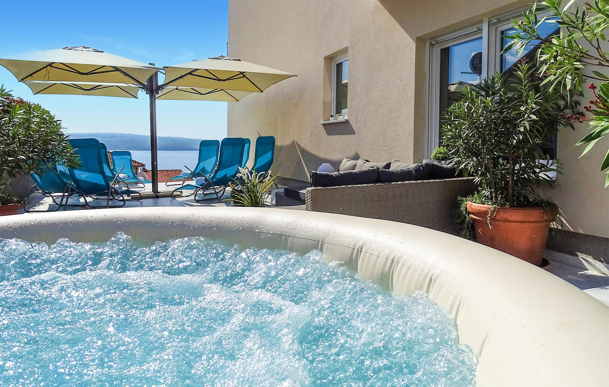 Reisen Sie mit Ihrer Familie nach Dramalj und verbringen erholsame und unvergessliche Ferientage in diesem schönen Haus, das mehrere Ferienwohnungen beherbergt. Je nach Verfügbarkeit können Sie mehrere Apartments buchen und somit mit Ihrer Großfamilie oder Freunden verreisen. Genießen Sie das wohnliche Ambiente, die helle Farben und finden eine großartige Ausstattung vor. Die Sonnenstunden können Sie auf Ihrer privaten Terrasse oder Balkon auskosten und Bekanntschaften beim Baden im gemeinschaftlich genutzten Pool oder Whirlpool schließen. Relaxen Sie auf dem Sonnendeck und machen sich wenig später zu Ihren nächsten Aktivitäten auf.