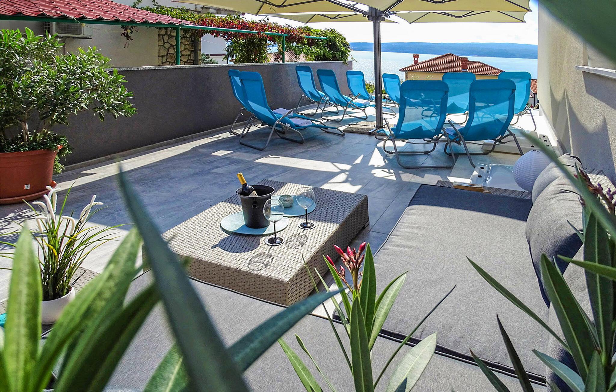 Dank seiner Lage außerhalb des Stadtzentrums ist es die Unterkunft eine wahre mediterrane Oase der Ruhe. Ganz gleich, ob Sie auf der Suche nach etwas Luxus sind oder ein Liebhaber von Grün und Meeresblau sind. Verbringen Sie viele Stunden am nahen Strand und planen Sie auch Tagesausflüge auf die goldene Insel Krk oder besuchen die Hafenstadt Rijeka.