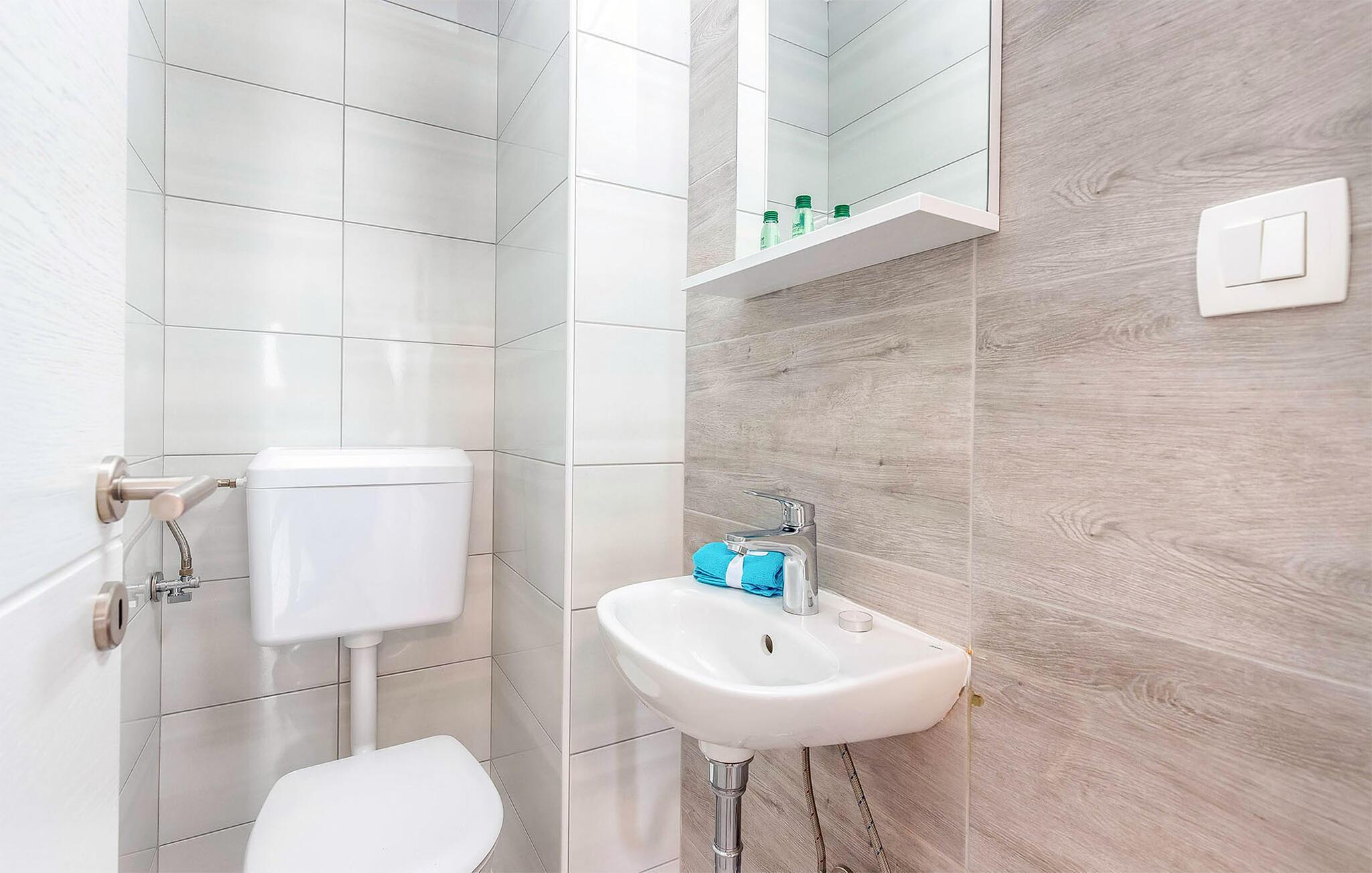 Badezimmer 4m2 (nr. 1) - WC. Warmes und kaltes Wasser. Dusche