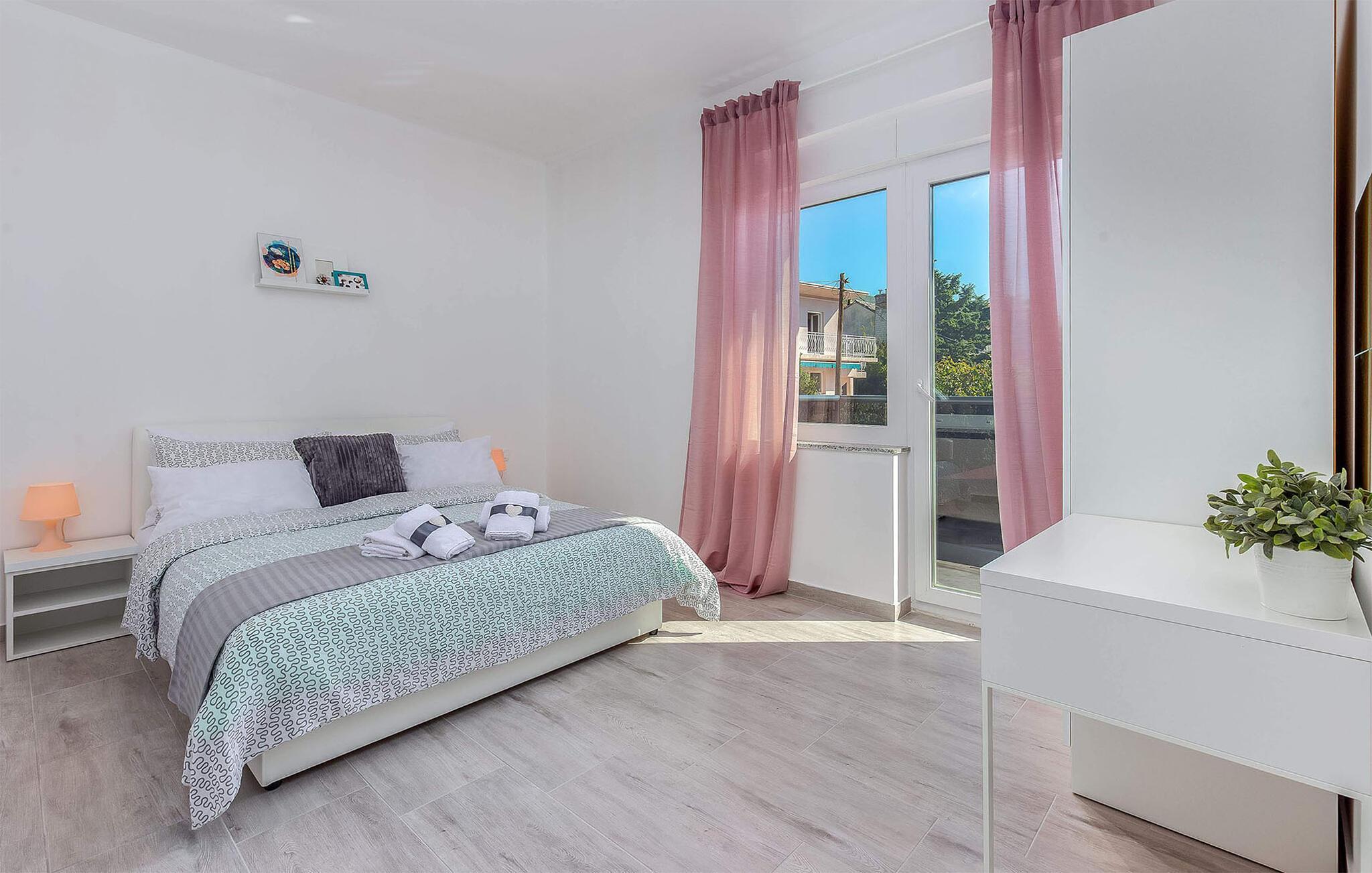 Dank seiner Lage außerhalb des Stadtzentrums ist es die Unterkunft eine wahre mediterrane Oase der Ruhe. Ganz gleich, ob Sie auf der Suche nach etwas Luxus sind oder ein Liebhaber von Grün und Meeresblau sind. Verbringen Sie viele Stunden am nahen Strand und planen Sie auch Tagesausflüge auf die goldene Insel Krk oder besuchen die Hafenstadt Rijeka.