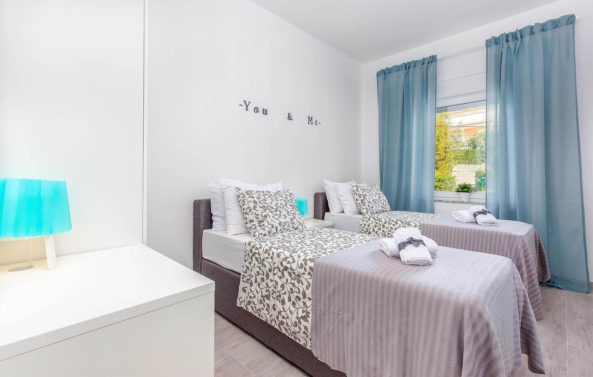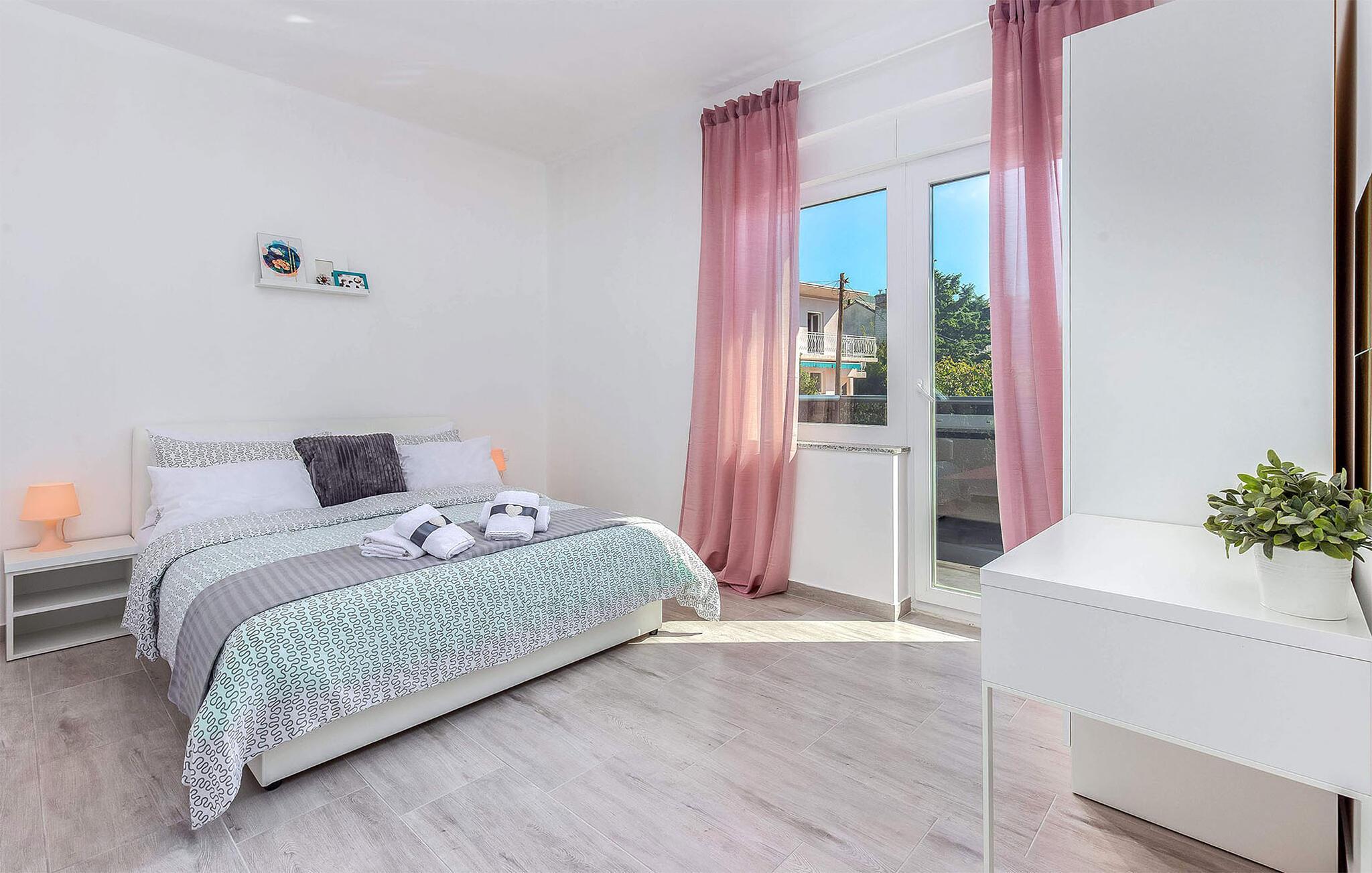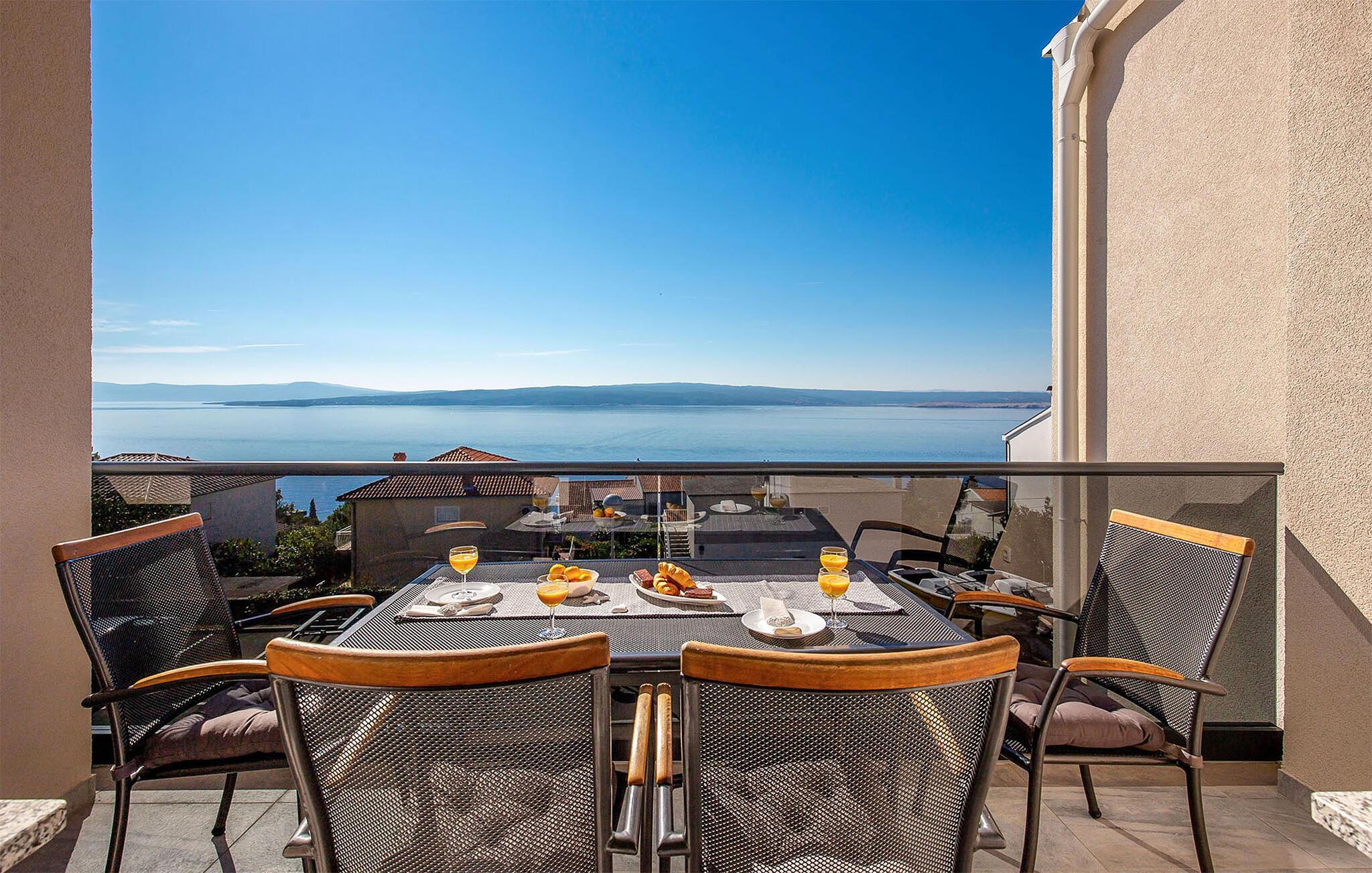 Dank seiner Lage außerhalb des Stadtzentrums ist es die Unterkunft eine wahre mediterrane Oase der Ruhe. Ganz gleich, ob Sie auf der Suche nach etwas Luxus sind oder ein Liebhaber von Grün und Meeresblau sind. Verbringen Sie viele Stunden am nahen Strand und planen Sie auch Tagesausflüge auf die goldene Insel Krk oder besuchen die Hafenstadt Rijeka.