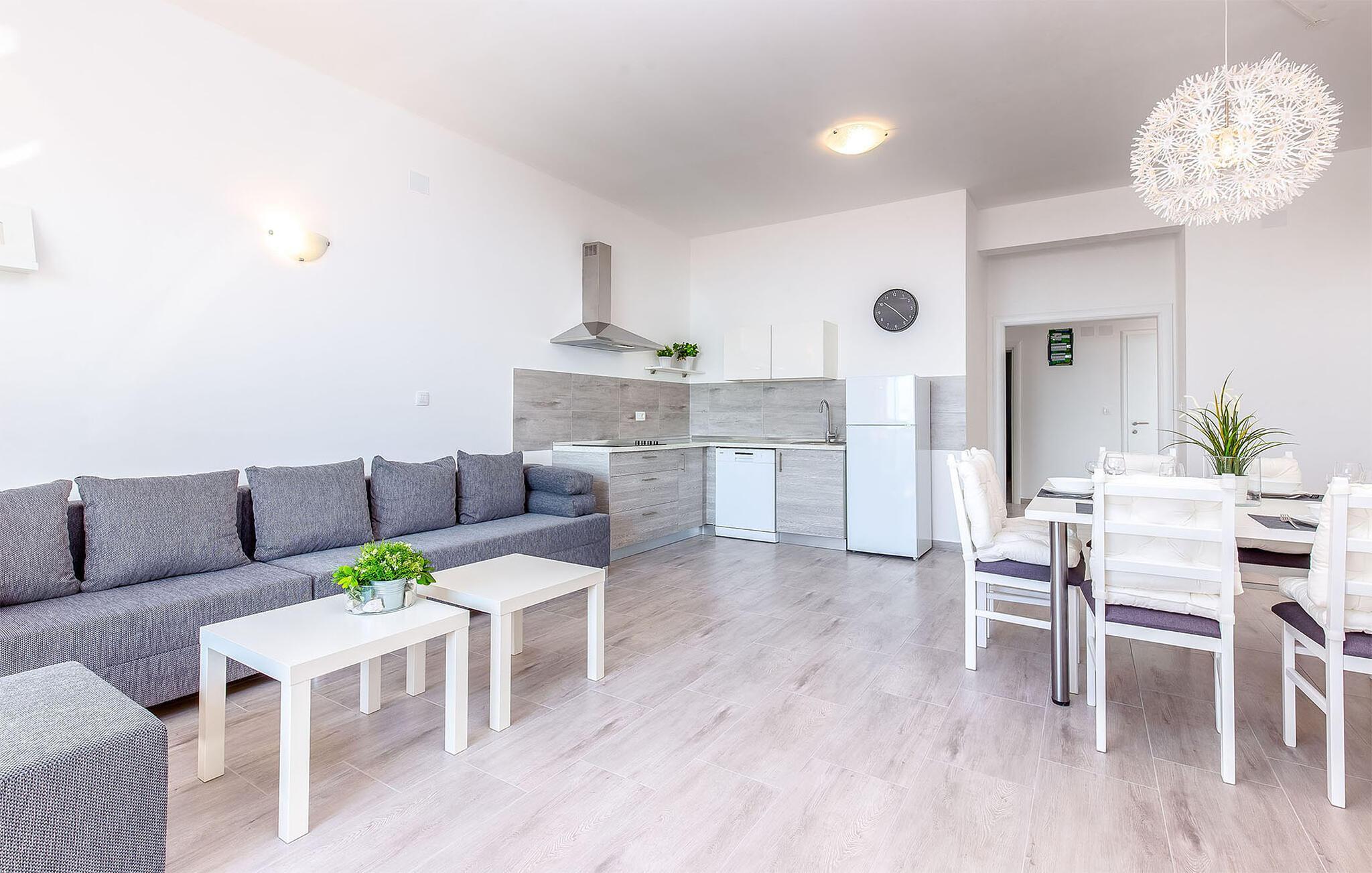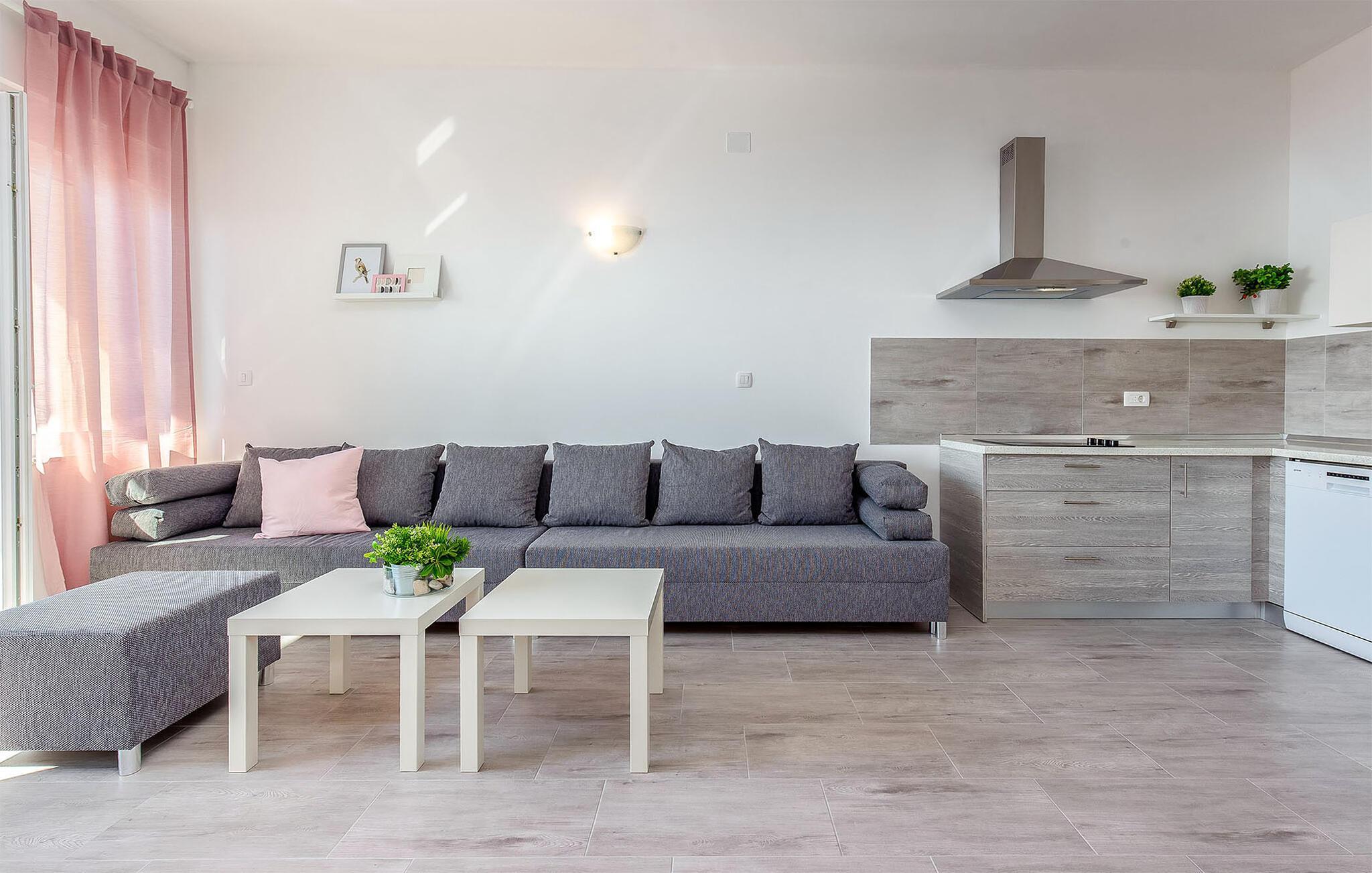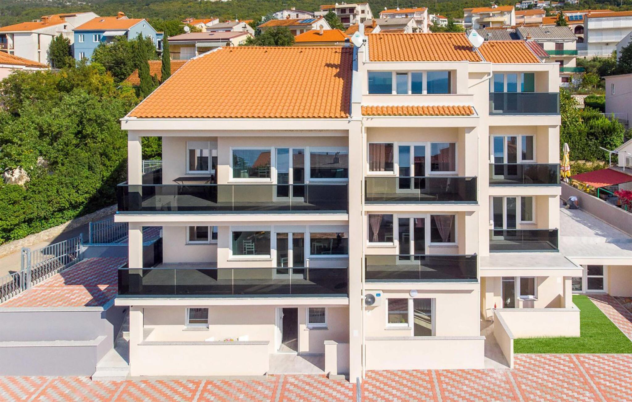 Reisen Sie mit Ihrer Familie nach Dramalj und verbringen erholsame und unvergessliche Ferientage in diesem schönen Haus, das mehrere Ferienwohnungen beherbergt. Je nach Verfügbarkeit können Sie mehrere Apartments buchen und somit mit Ihrer Großfamilie oder Freunden verreisen. Genießen Sie das wohnliche Ambiente, die helle Farben und finden eine großartige Ausstattung vor. Die Sonnenstunden können Sie auf Ihrer privaten Terrasse oder Balkon auskosten und Bekanntschaften beim Baden im gemeinschaftlich genutzten Pool oder Whirlpool schließen. Relaxen Sie auf dem Sonnendeck und machen sich wenig später zu Ihren nächsten Aktivitäten auf.