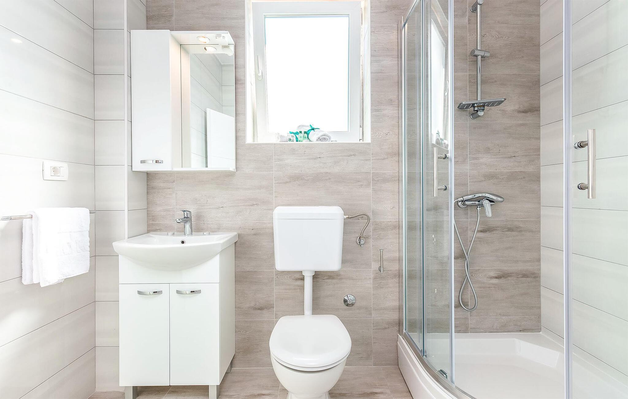 Badezimmer 4m2 (nr. 1) - WC. Warmes und kaltes Wasser. Dusche