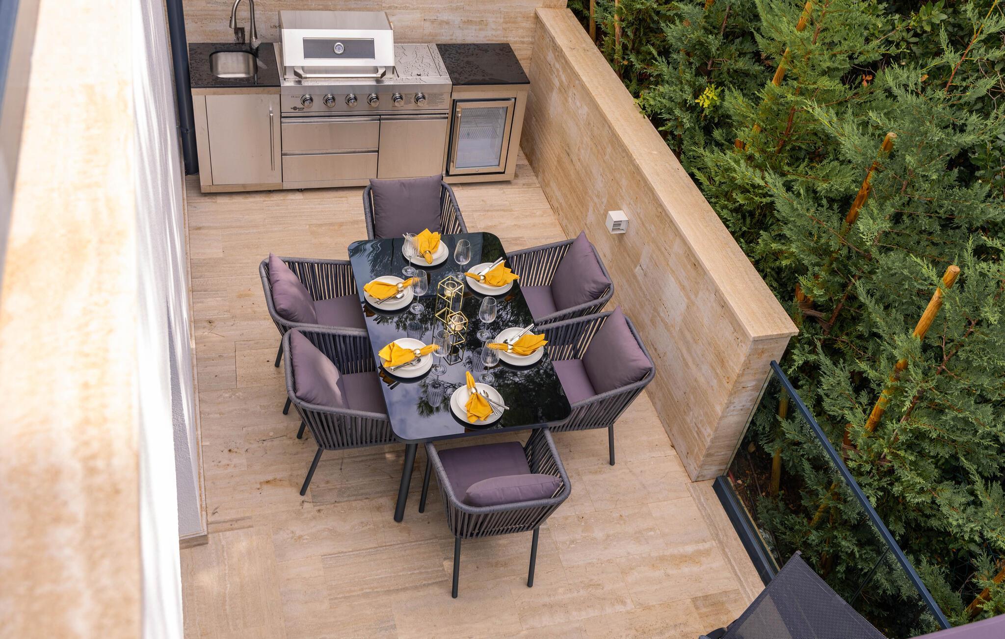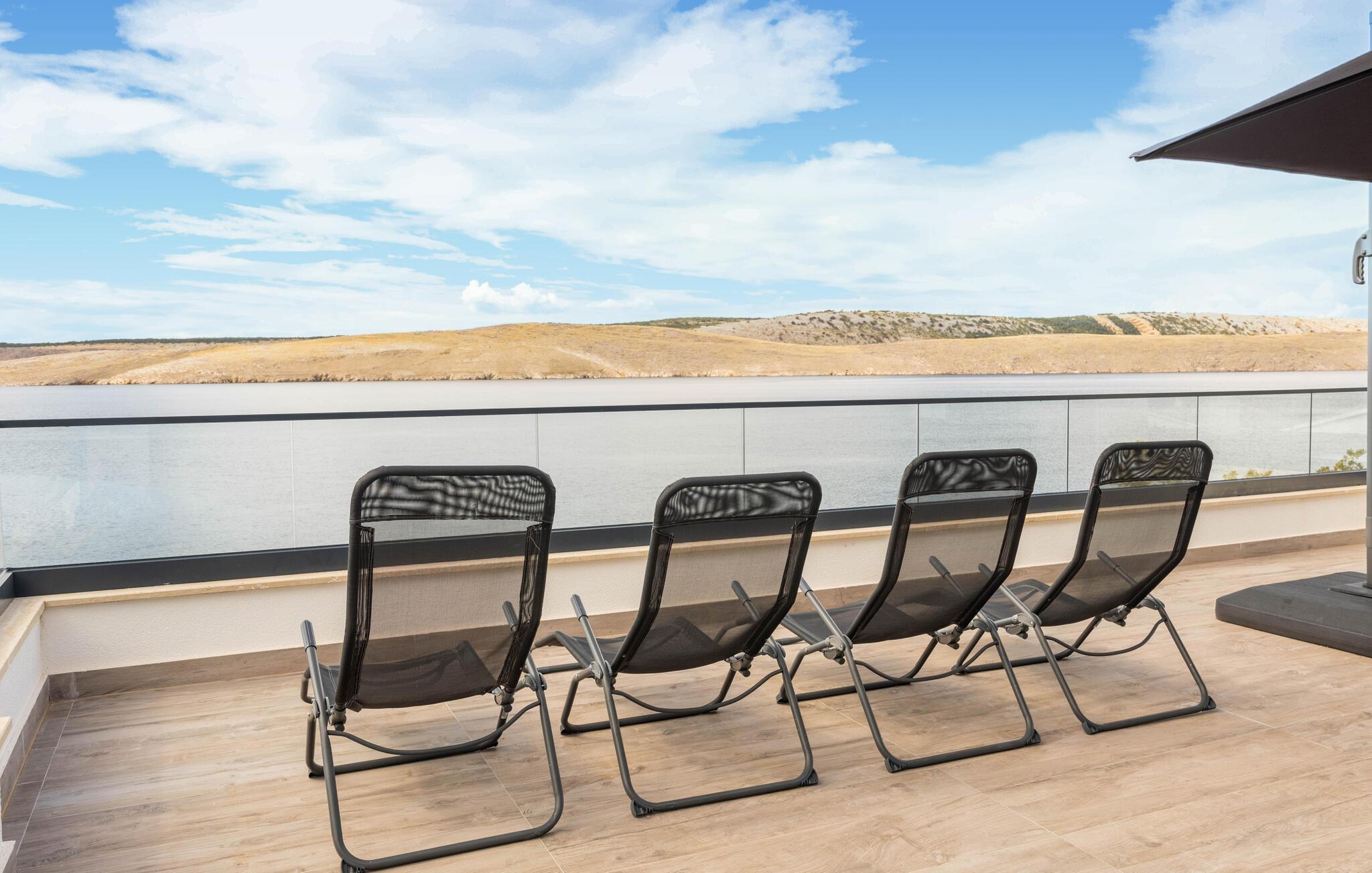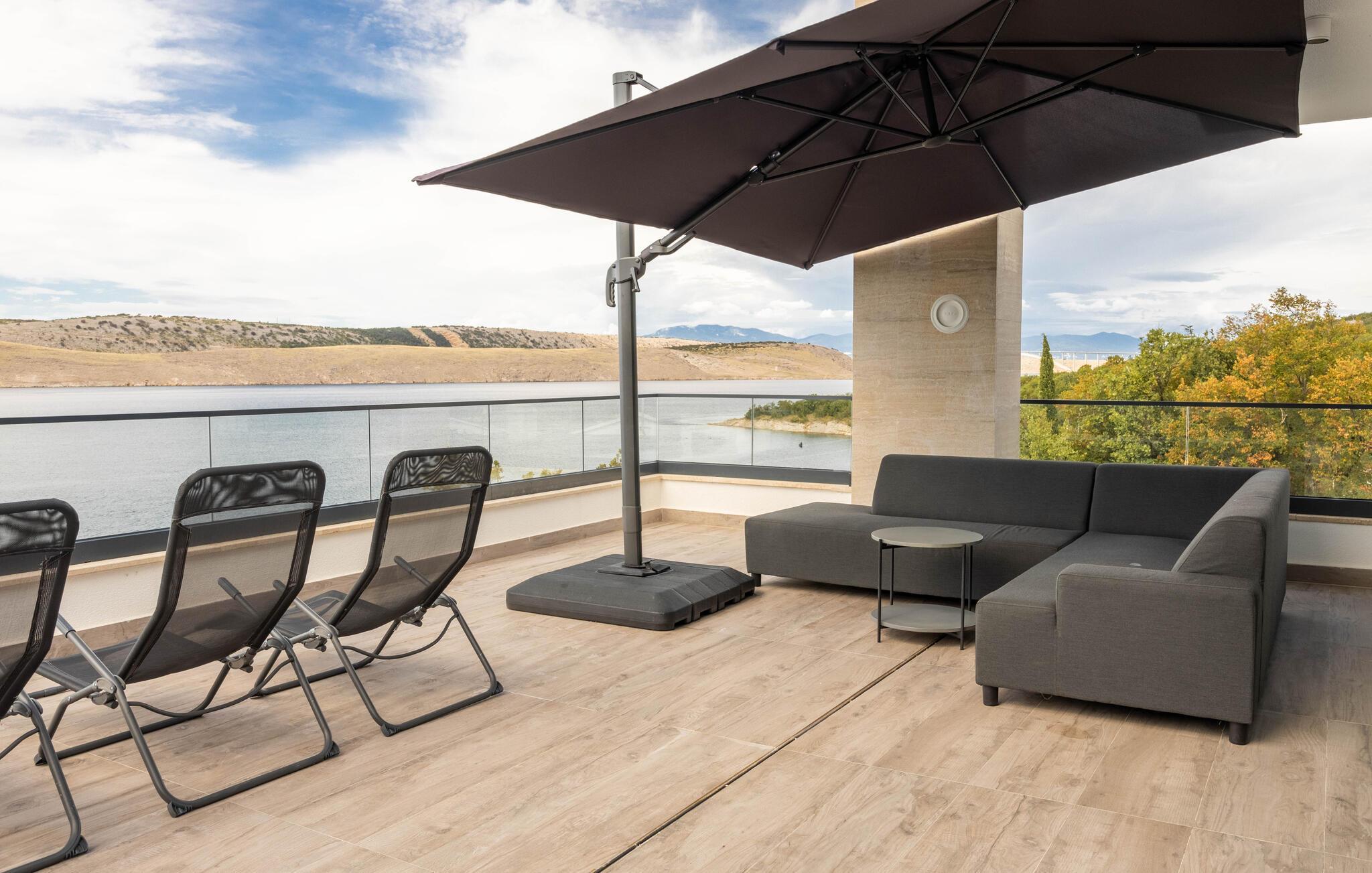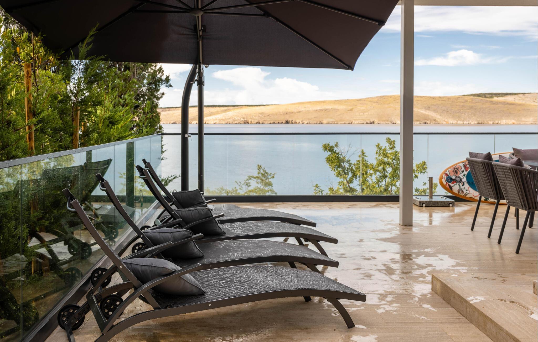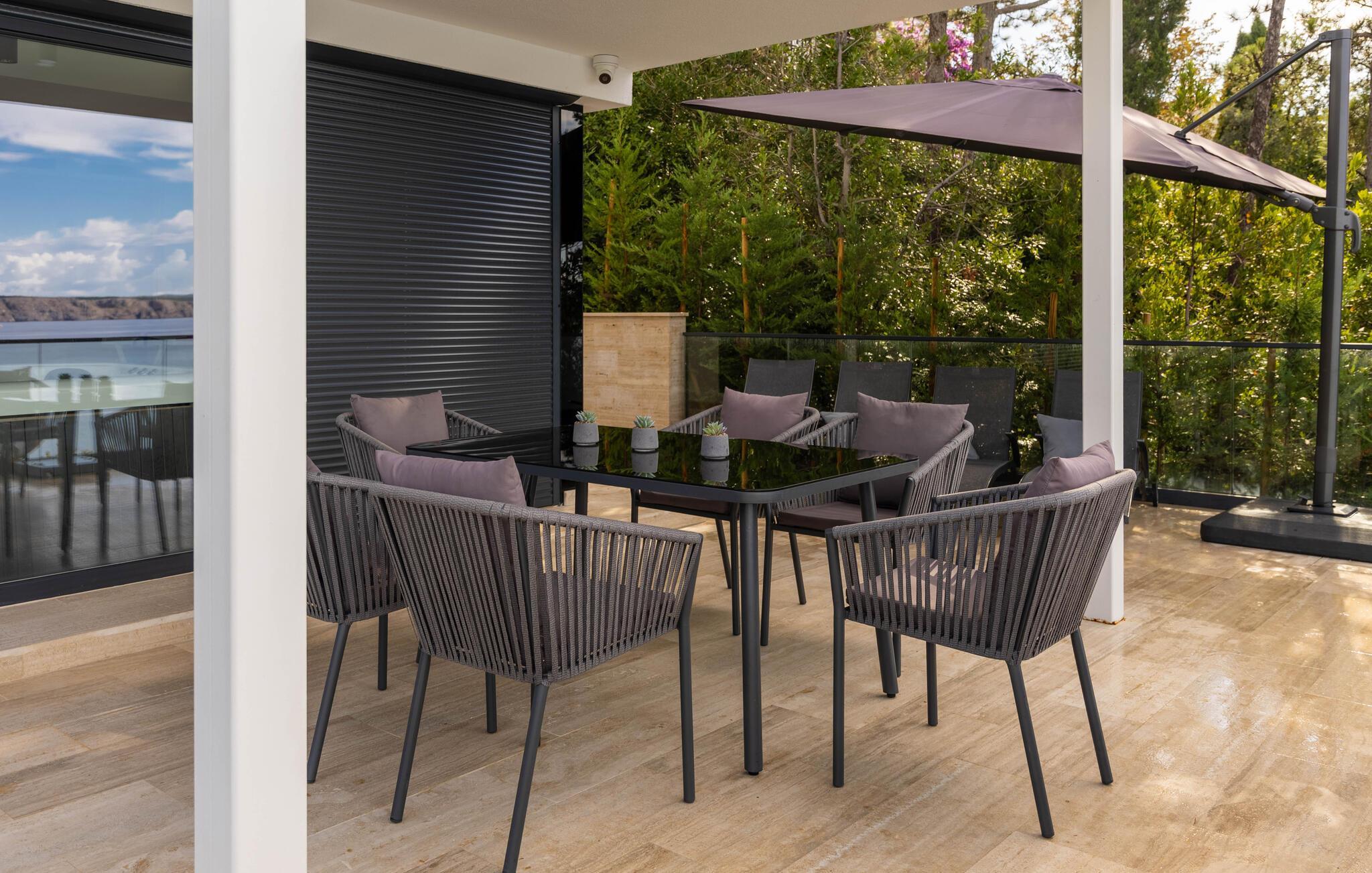 Auf der schönen Panoramaterrasse können Sie den Blick über das Meer schweifen lassen. Erfrischen Sie sich im herrlichen Pool, genehmigen Sie sich einen Sundowner in der einladenden Lounge und entfachen Sie abends den Grill, um bei Wein und Kerzenschein in die Sommernacht hineinzuplaudern.