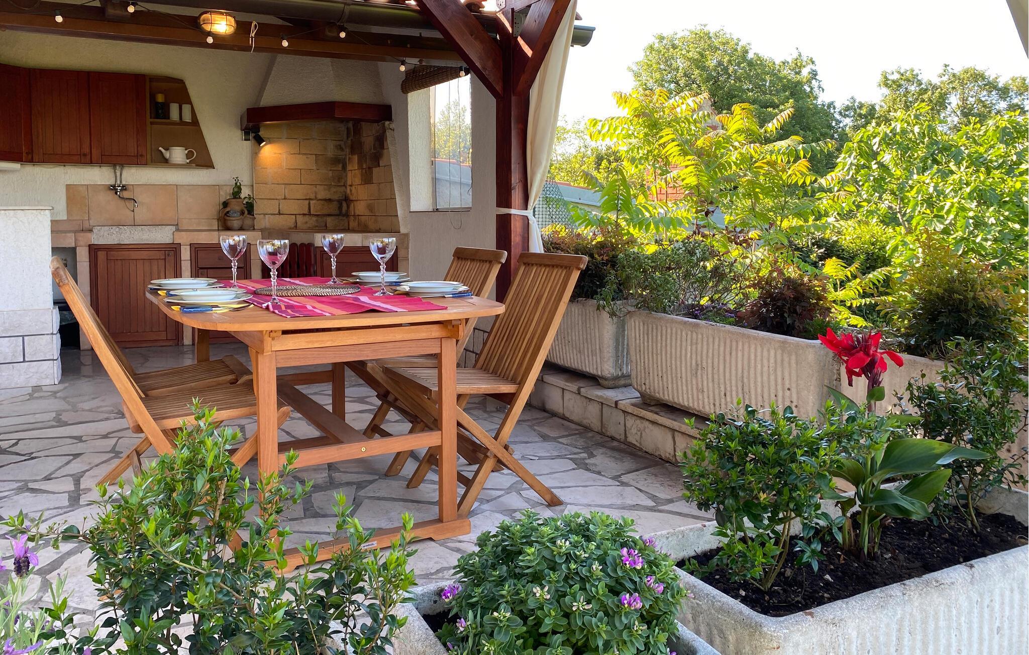 Die Urlaubsentspannung stellt sich spätestens ein, während Sie die Sonne auf dem Naturgrundstück genießen und die Hektik des Alltags hinter sich lassen. Beenden Sie den Tag mit einem leckeren Essen im Freien an einem lauen Sommerabend.
