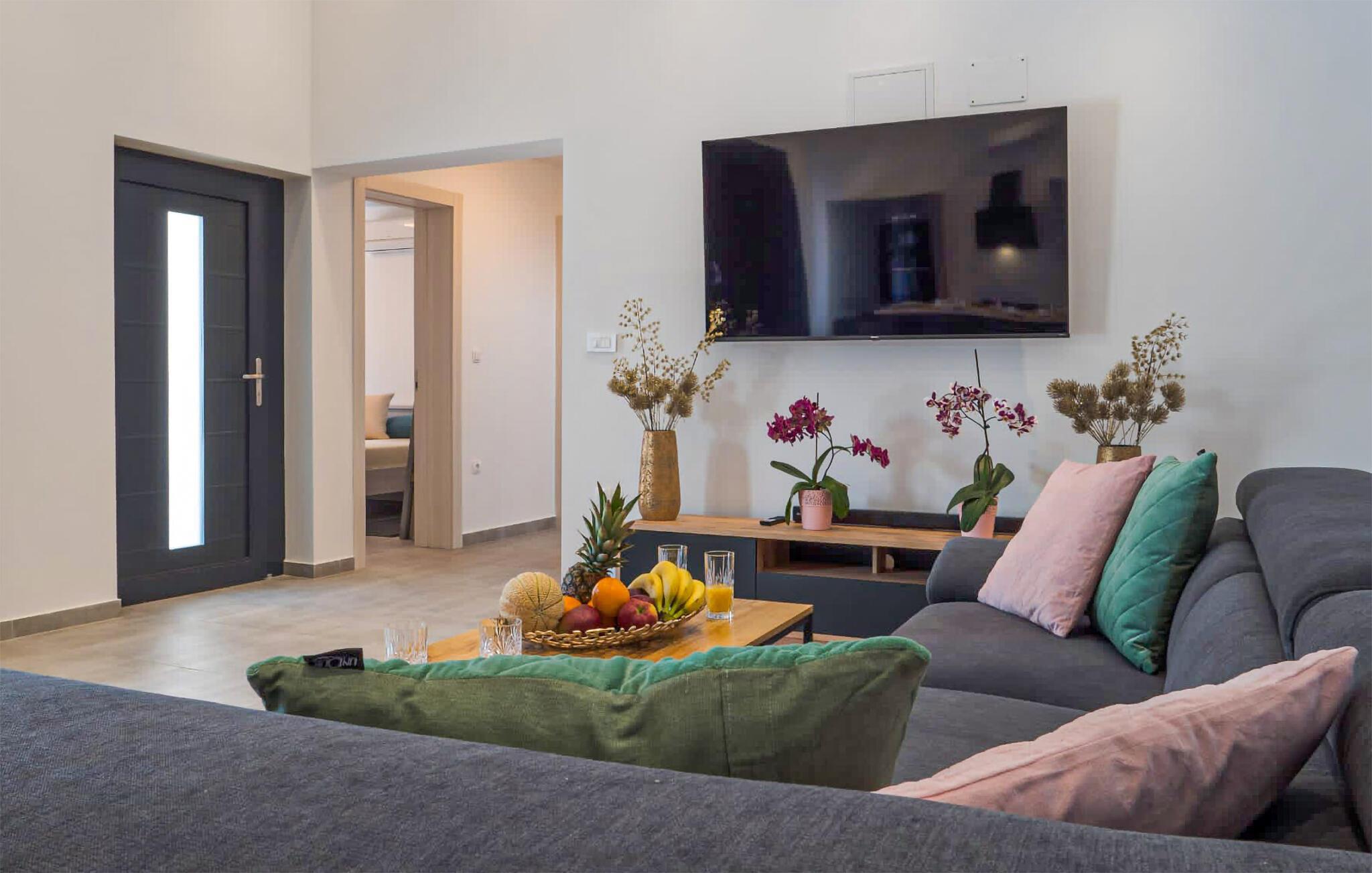 Freuen Sie sich auf Ihren Urlaub in Kraljevica und entspannen sich in diesem komfortablen Haus, das keine Ihrer Wünsche offenlässt. Genießen Sie den schönen und mit hohen Decken gestalteten Wohnraum, der zu geselligen Stunden beim Kochen und Filmschauen einlädt. Ihre Privatsphäre können Sie in den geschmackvollen Schlafzimmern mit angeschlossenen Badezimmern genießen und am Morgen erholt zum Frühstück auf die Terrasse kommen.