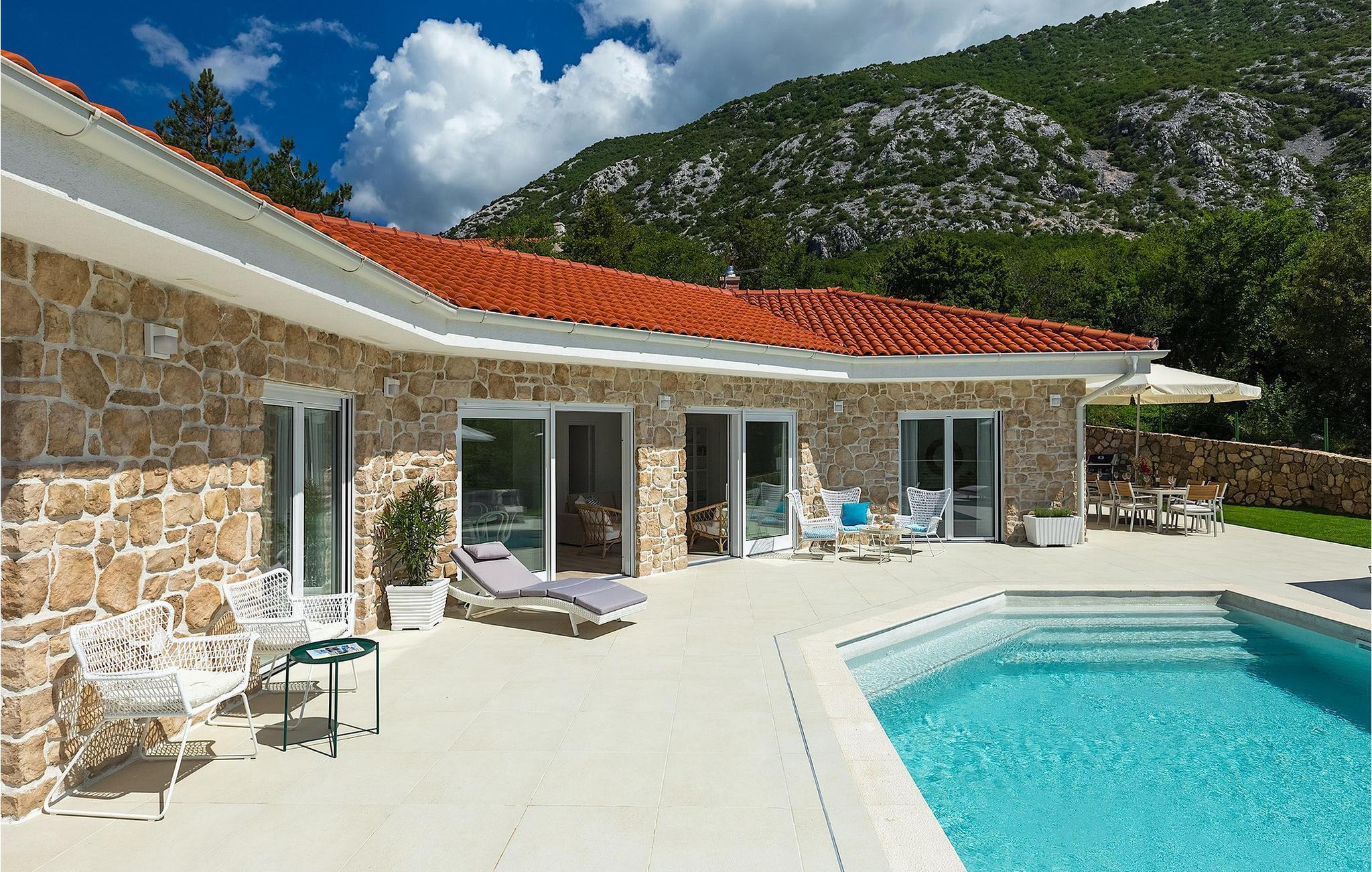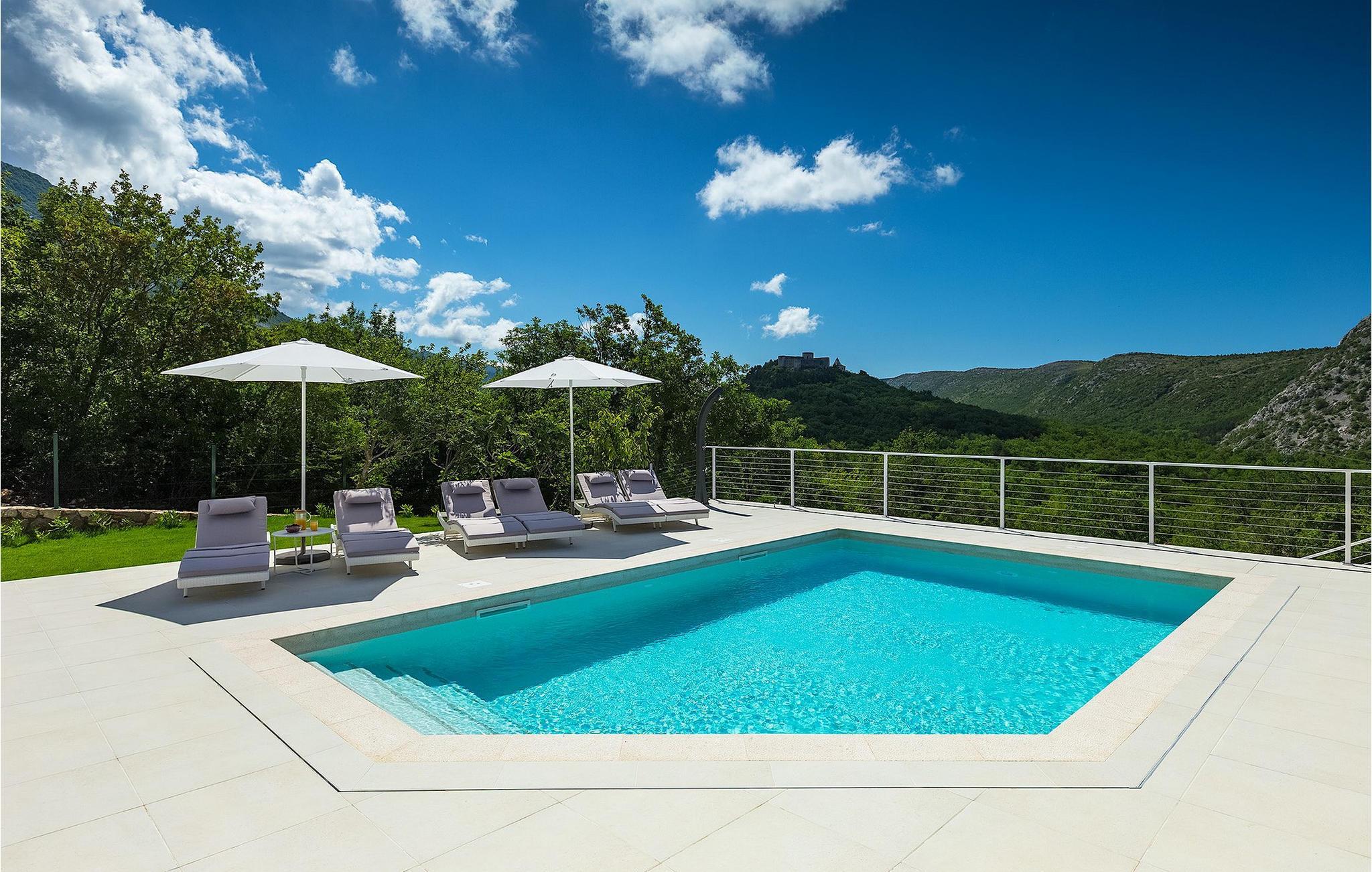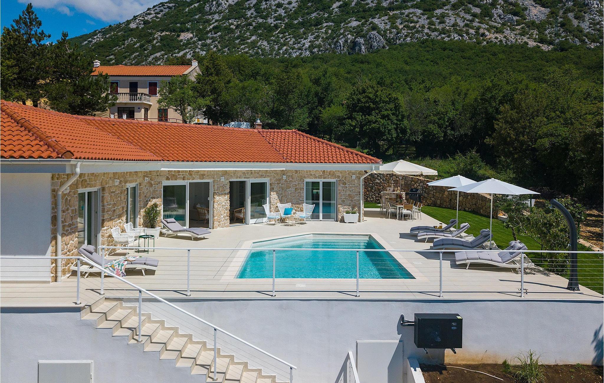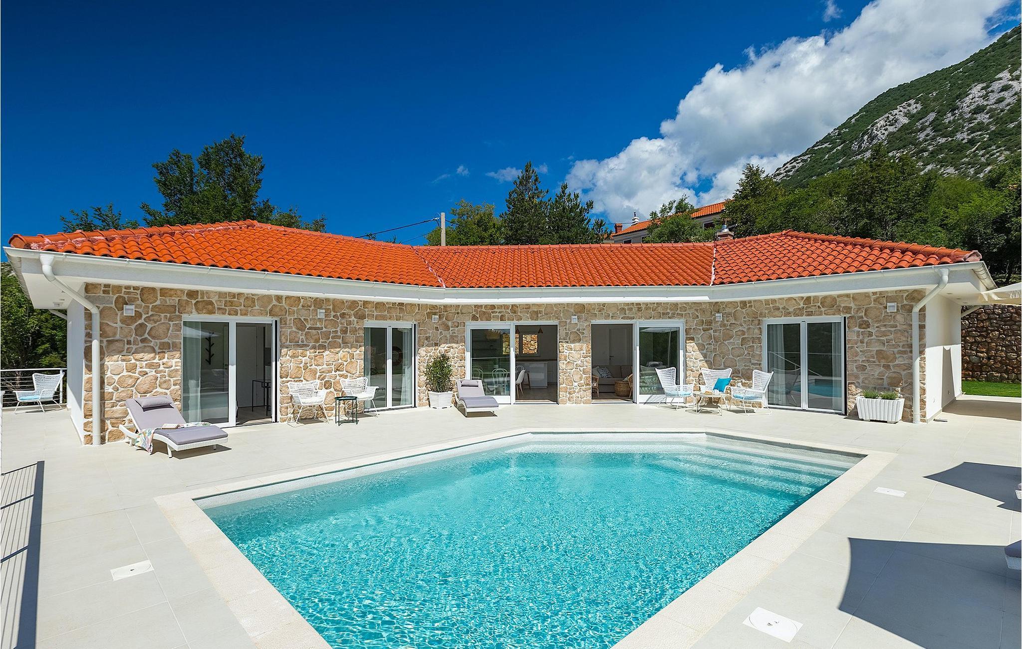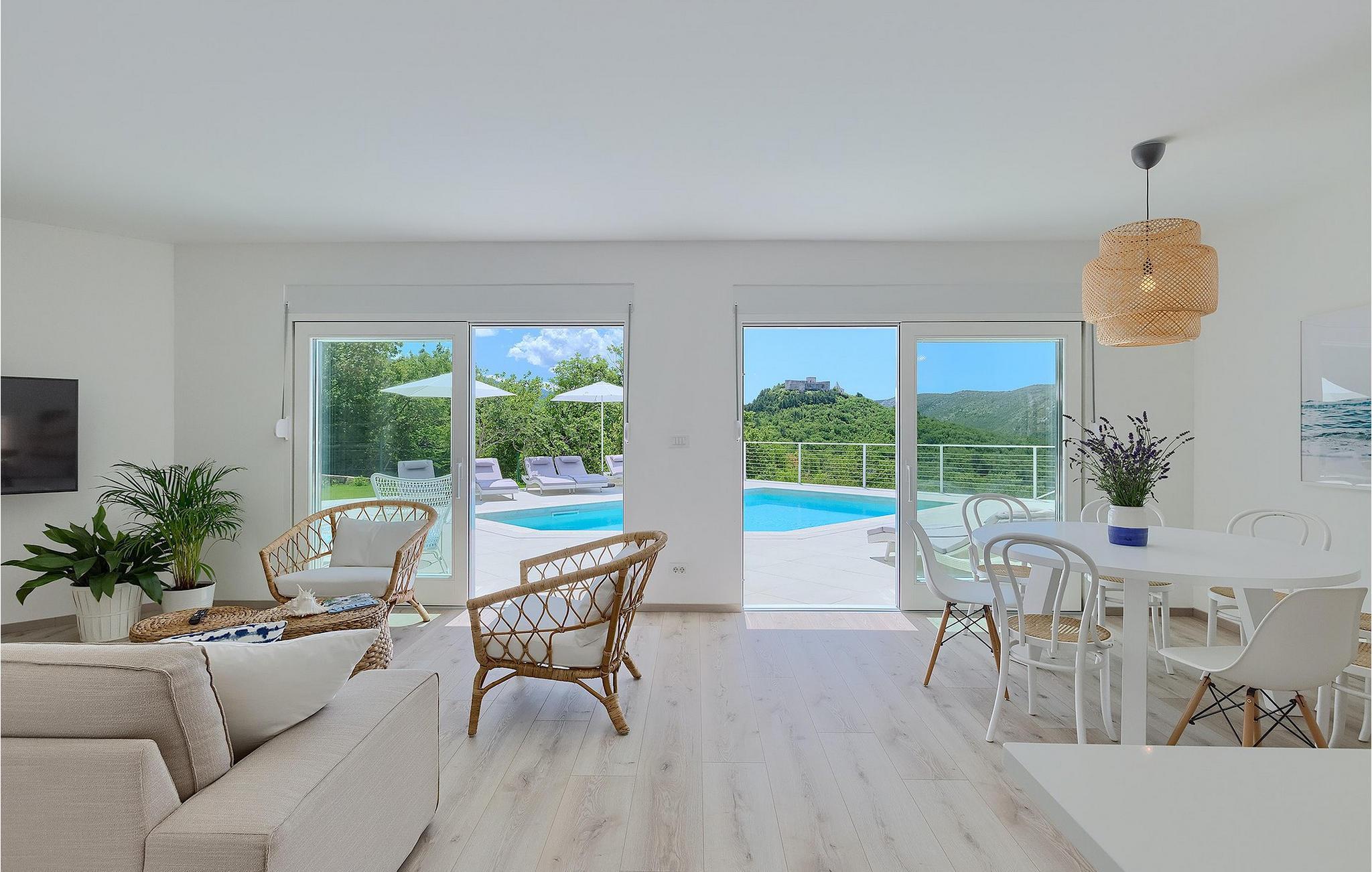 Die Villa Senza Nome ist ein wahres Juwel, versteckt in der bergigen Landschaft der Kvarner-Region. Sie ist geschickt in ihre Umgebung integriert, um ihren Gästen einen ruhigen und erholsamen Aufenthalt zu bieten. Die Villa ist in zwei Teile unterteilt - die untere und die obere Etage. Die untere Etage besteht aus einem Appartement für 4 Personen mit Wohnzimmer, Küche, Schlafzimmer und Badezimmer. Die obere Etage besteht aus einem Wohnzimmer, eine Küche, einen Essbereich, 3 Badezimmer und 4 Schlafzimmer unterteilt. Von jedem Schlafzimmer aus haben Sie direkten Zugang zum Poolbereich. Wenn Sie also schon immer einmal die Möglichkeit haben wollten, aus dem Bett aufzustehen und direkt in den Pool zu springen - nun, in der Villa Senza Nome kann dieser Traum wahr werden.