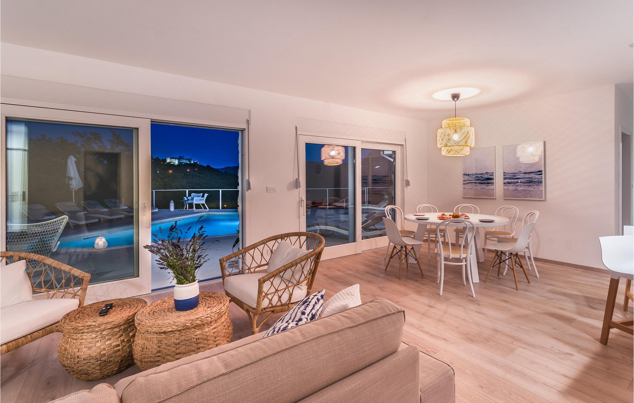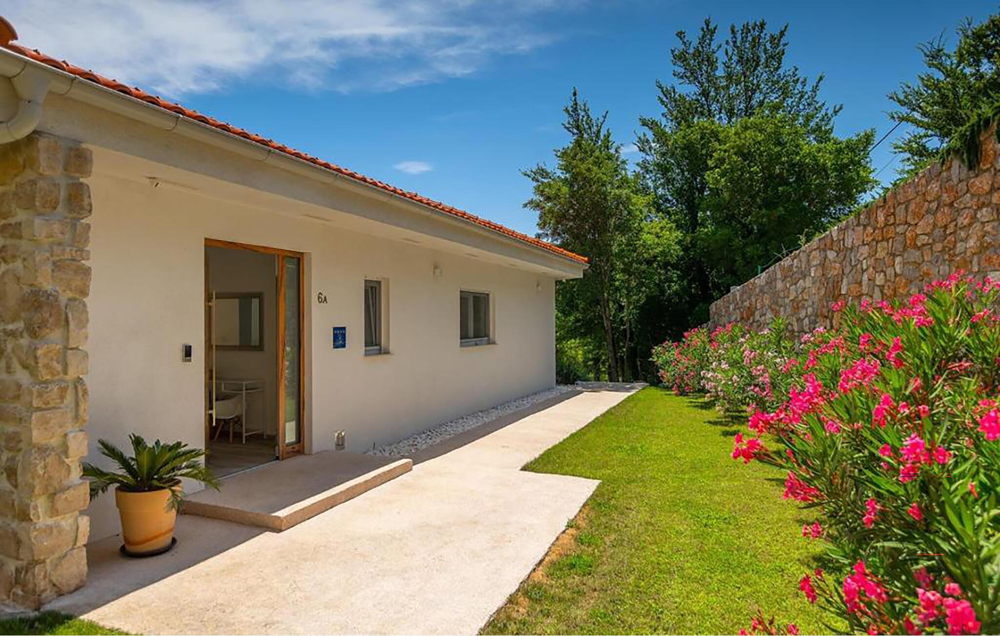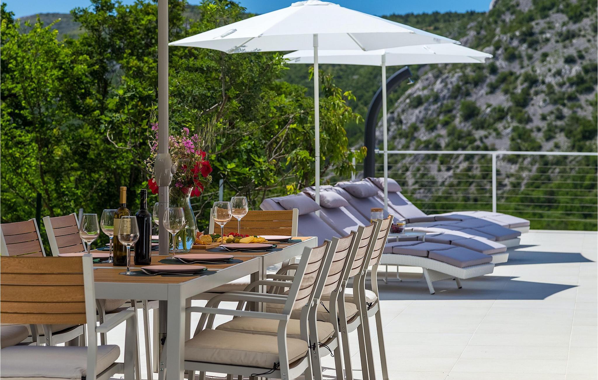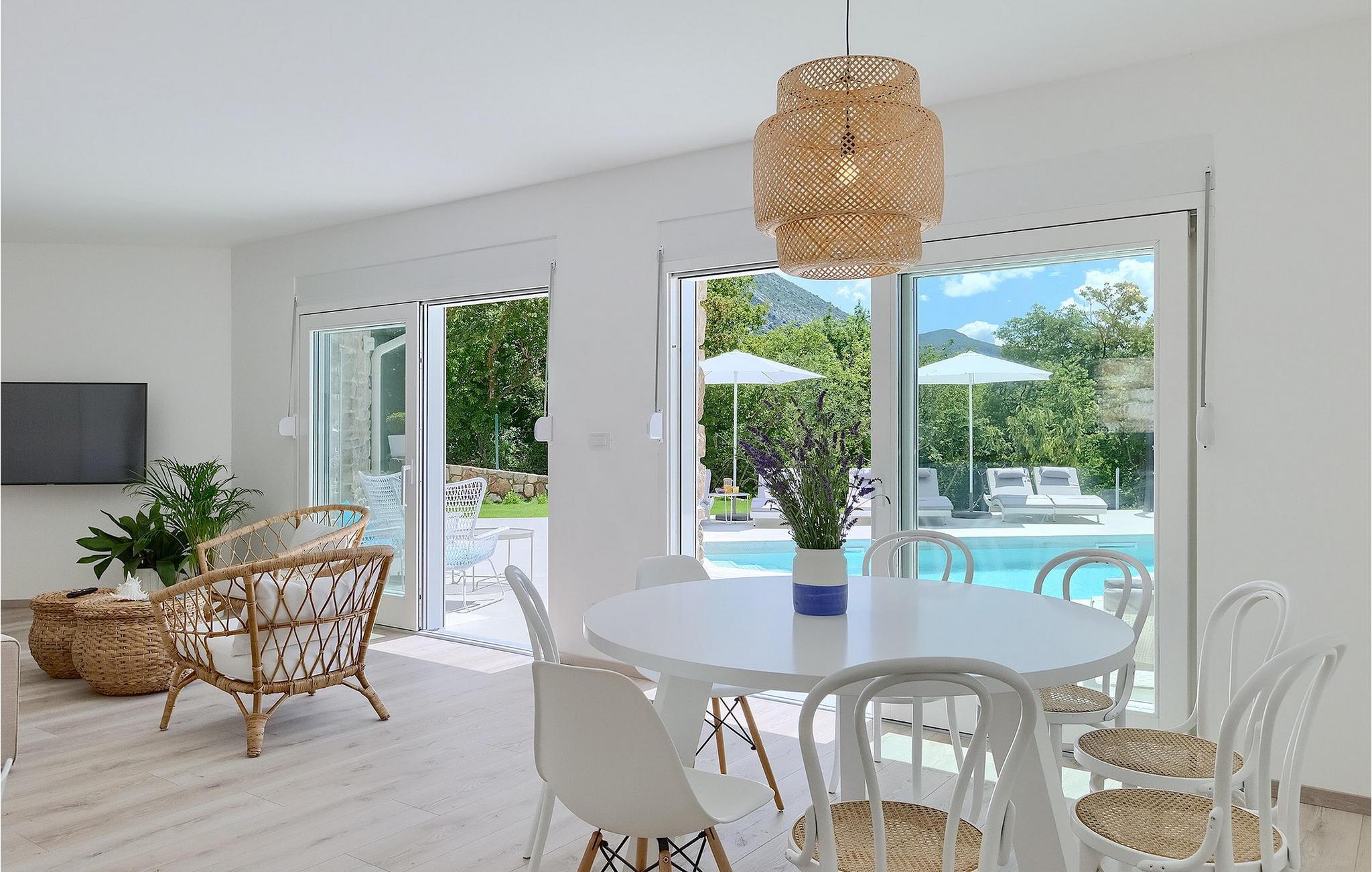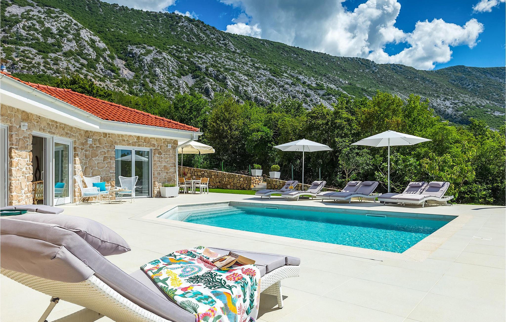 Die Villa Senza Nome ist ein wahres Juwel, versteckt in der bergigen Landschaft der Kvarner-Region. Sie ist geschickt in ihre Umgebung integriert, um ihren Gästen einen ruhigen und erholsamen Aufenthalt zu bieten. Die Villa ist in zwei Teile unterteilt - die untere und die obere Etage. Die untere Etage besteht aus einem Appartement für 4 Personen mit Wohnzimmer, Küche, Schlafzimmer und Badezimmer. Die obere Etage besteht aus einem Wohnzimmer, eine Küche, einen Essbereich, 3 Badezimmer und 4 Schlafzimmer unterteilt. Von jedem Schlafzimmer aus haben Sie direkten Zugang zum Poolbereich. Wenn Sie also schon immer einmal die Möglichkeit haben wollten, aus dem Bett aufzustehen und direkt in den Pool zu springen - nun, in der Villa Senza Nome kann dieser Traum wahr werden.