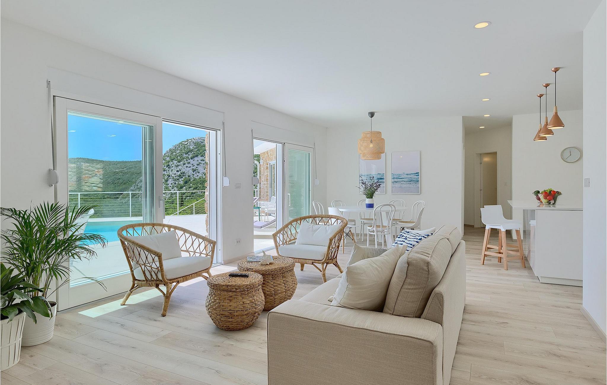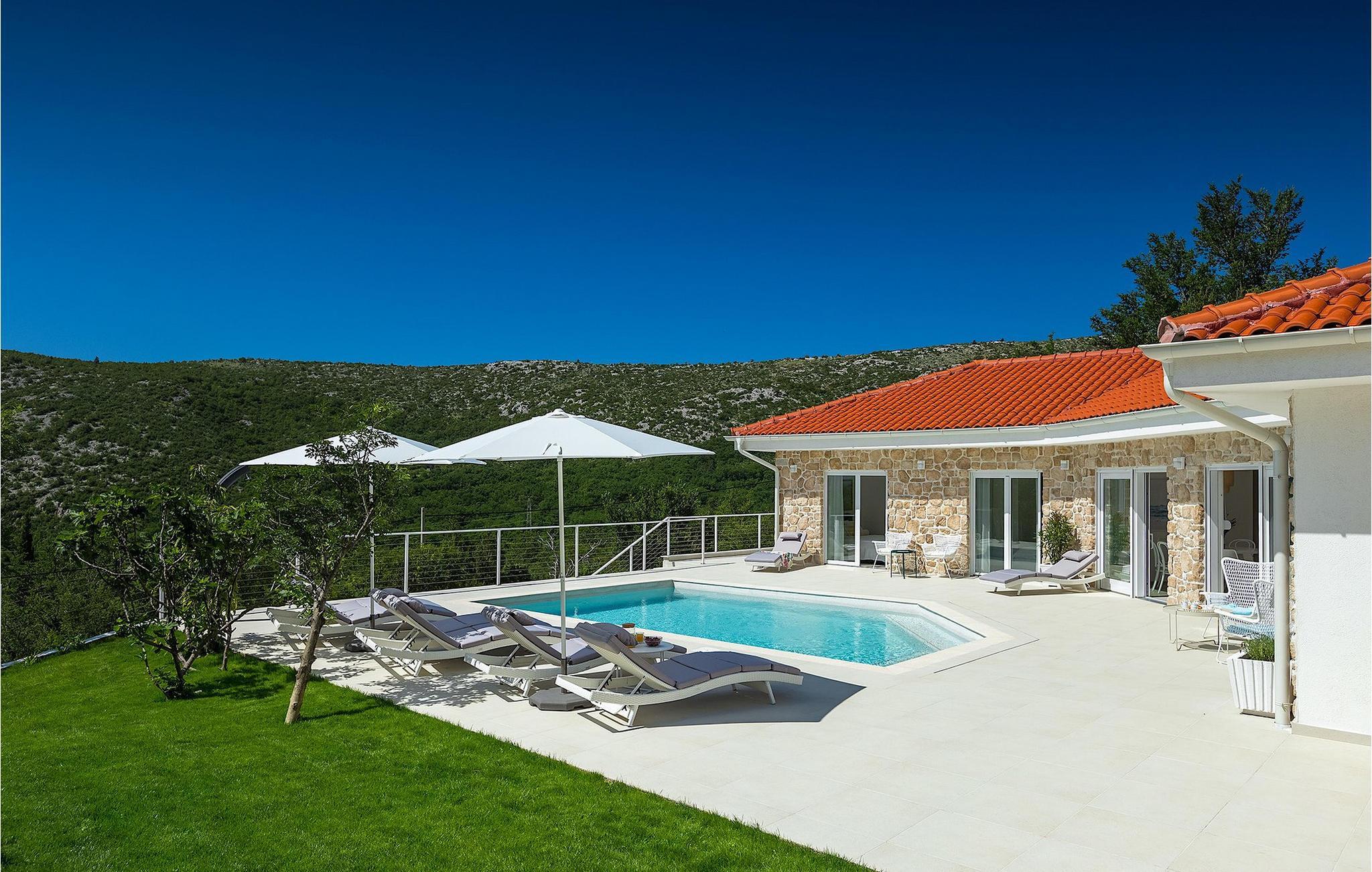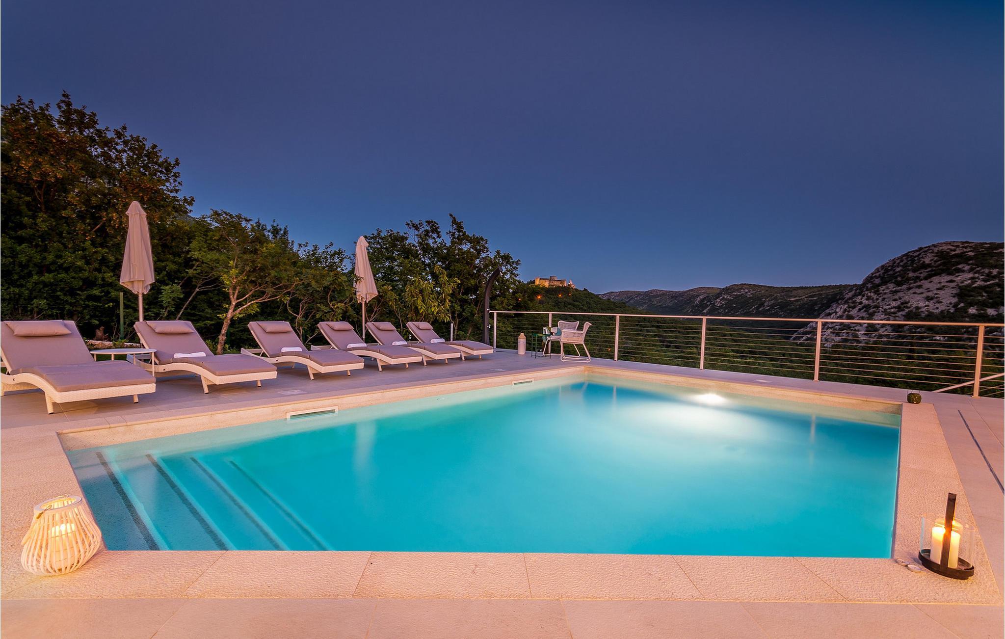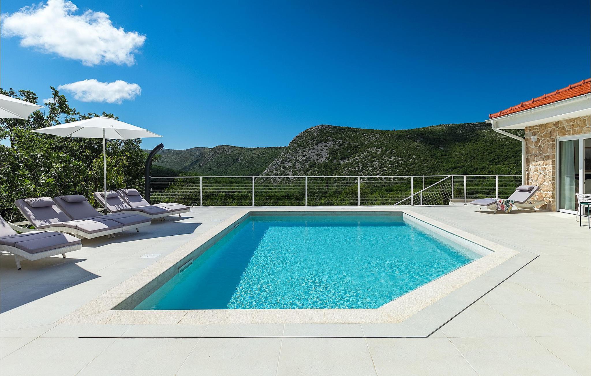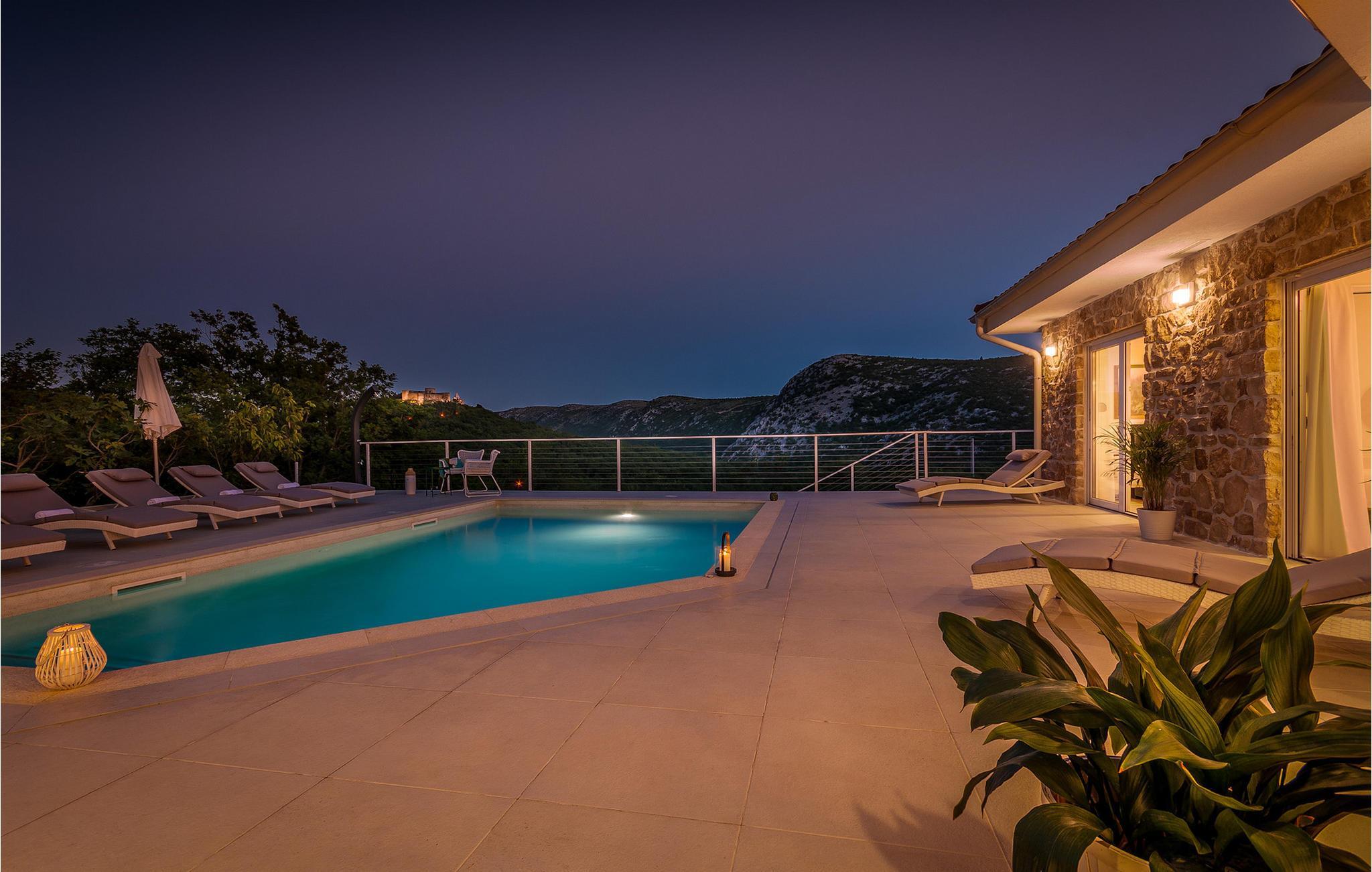 Die Villa Senza Nome ist ein wahres Juwel, versteckt in der bergigen Landschaft der Kvarner-Region. Sie ist geschickt in ihre Umgebung integriert, um ihren Gästen einen ruhigen und erholsamen Aufenthalt zu bieten. Die Villa ist in zwei Teile unterteilt - die untere und die obere Etage. Die untere Etage besteht aus einem Appartement für 4 Personen mit Wohnzimmer, Küche, Schlafzimmer und Badezimmer. Die obere Etage besteht aus einem Wohnzimmer, eine Küche, einen Essbereich, 3 Badezimmer und 4 Schlafzimmer unterteilt. Von jedem Schlafzimmer aus haben Sie direkten Zugang zum Poolbereich. Wenn Sie also schon immer einmal die Möglichkeit haben wollten, aus dem Bett aufzustehen und direkt in den Pool zu springen - nun, in der Villa Senza Nome kann dieser Traum wahr werden.