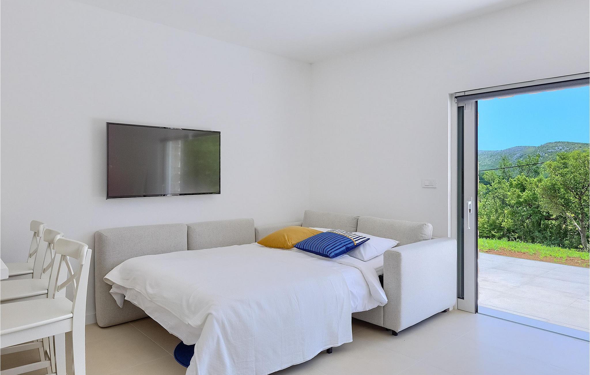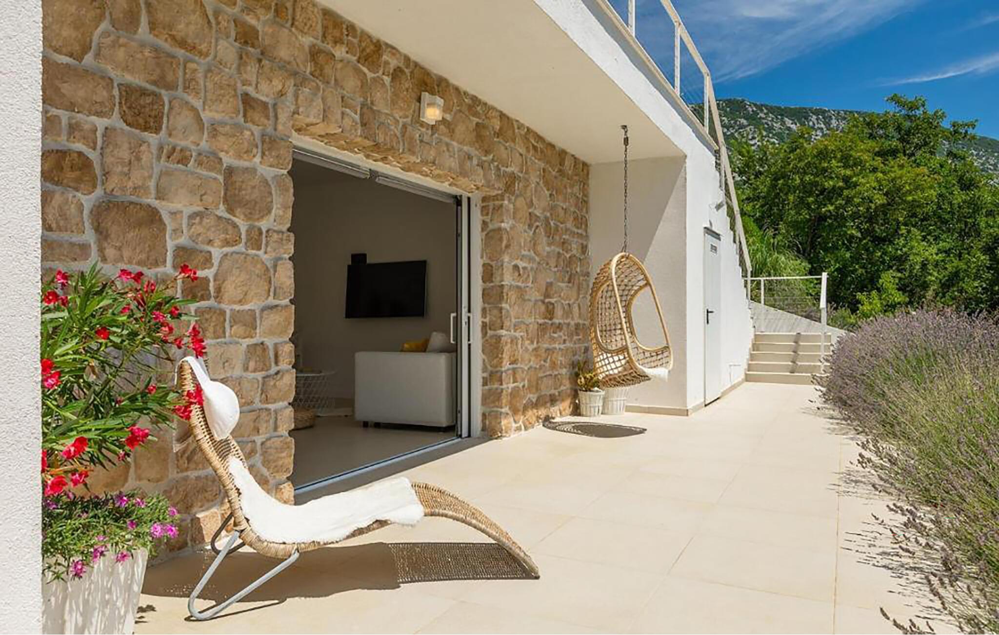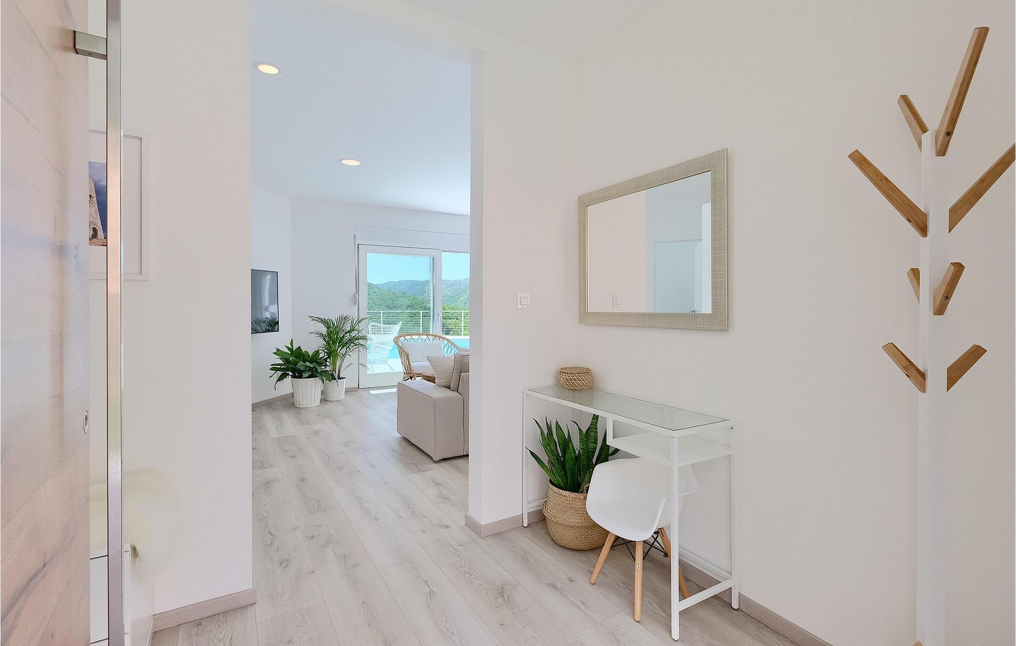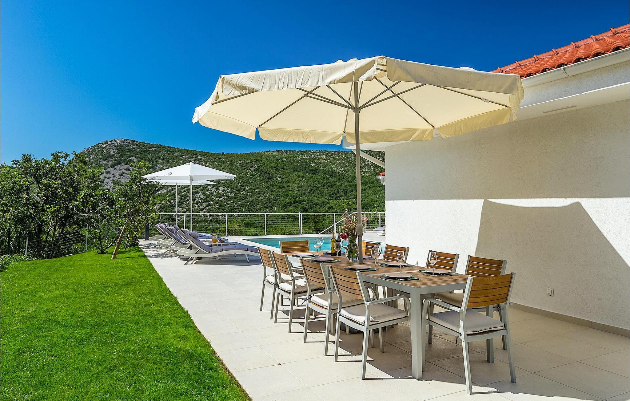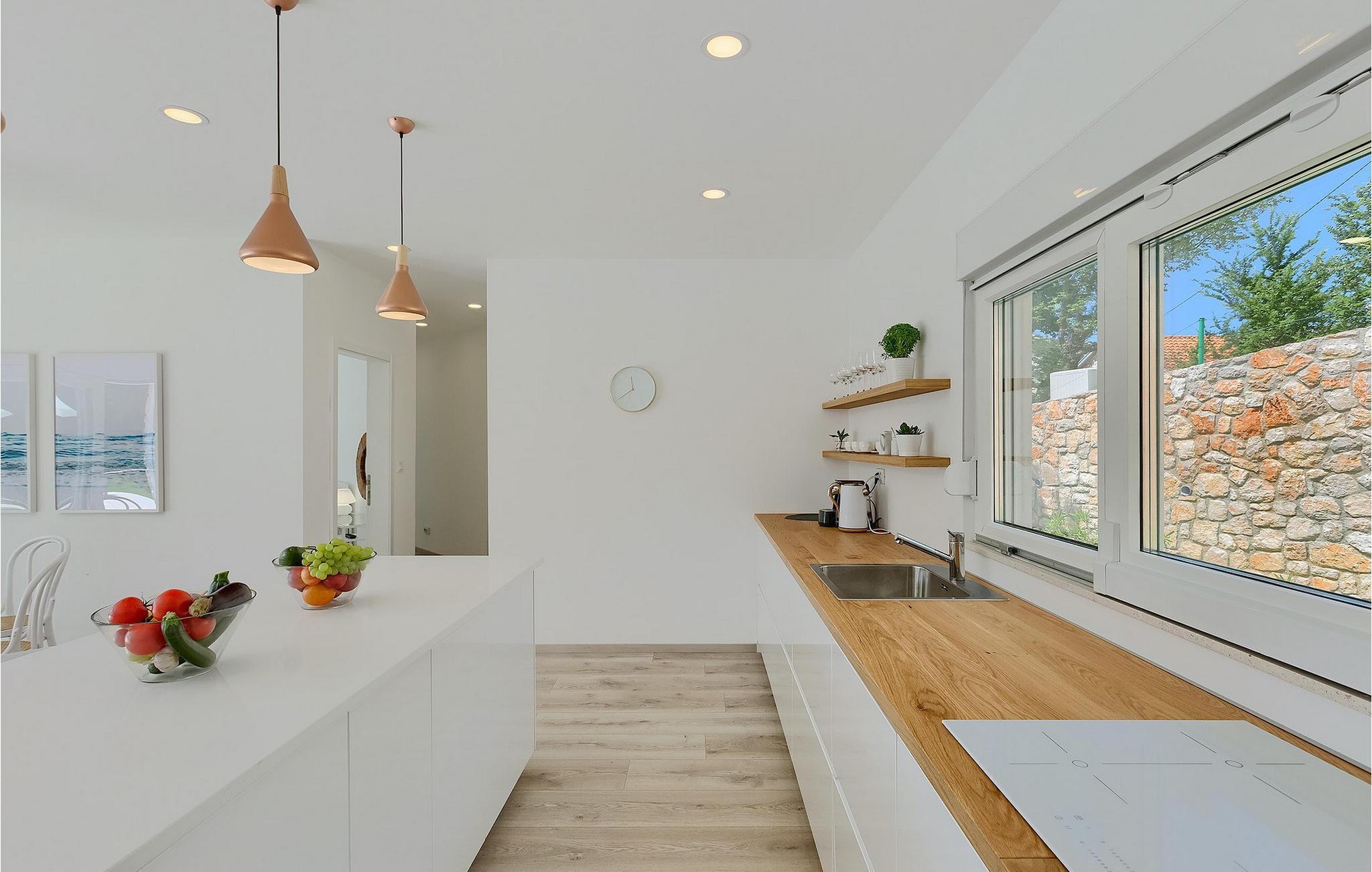 Die Villa Senza Nome ist ein wahres Juwel, versteckt in der bergigen Landschaft der Kvarner-Region. Sie ist geschickt in ihre Umgebung integriert, um ihren Gästen einen ruhigen und erholsamen Aufenthalt zu bieten. Die Villa ist in zwei Teile unterteilt - die untere und die obere Etage. Die untere Etage besteht aus einem Appartement für 4 Personen mit Wohnzimmer, Küche, Schlafzimmer und Badezimmer. Die obere Etage besteht aus einem Wohnzimmer, eine Küche, einen Essbereich, 3 Badezimmer und 4 Schlafzimmer unterteilt. Von jedem Schlafzimmer aus haben Sie direkten Zugang zum Poolbereich. Wenn Sie also schon immer einmal die Möglichkeit haben wollten, aus dem Bett aufzustehen und direkt in den Pool zu springen - nun, in der Villa Senza Nome kann dieser Traum wahr werden.