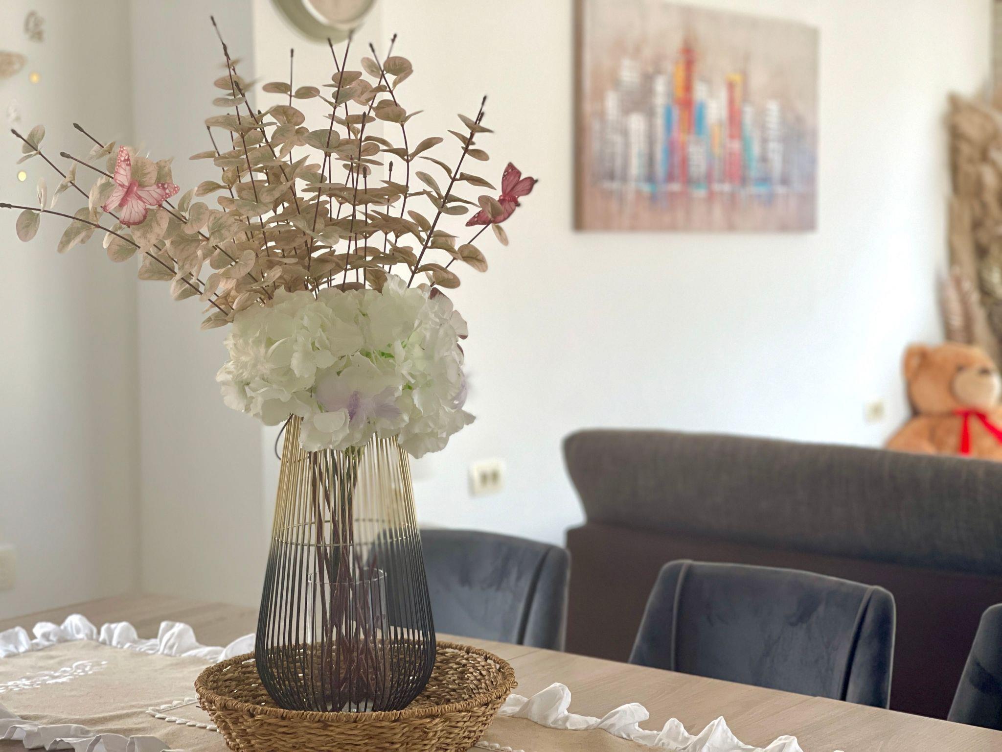 Inside the villa, you will find a well-thought-out layout that takes both privacy and community into account. The rooms are functionally furnished to meet the needs of a large group. There are a total of five comfortable bedrooms that promise peaceful nights. The space is complemented by three well-equipped bathrooms with a shower and bathtub for everyday comfort. The washing machine available in the property provides additional convenience, and the air conditioning installed throughout allows the room climate to be pleasantly regulated on hot days.