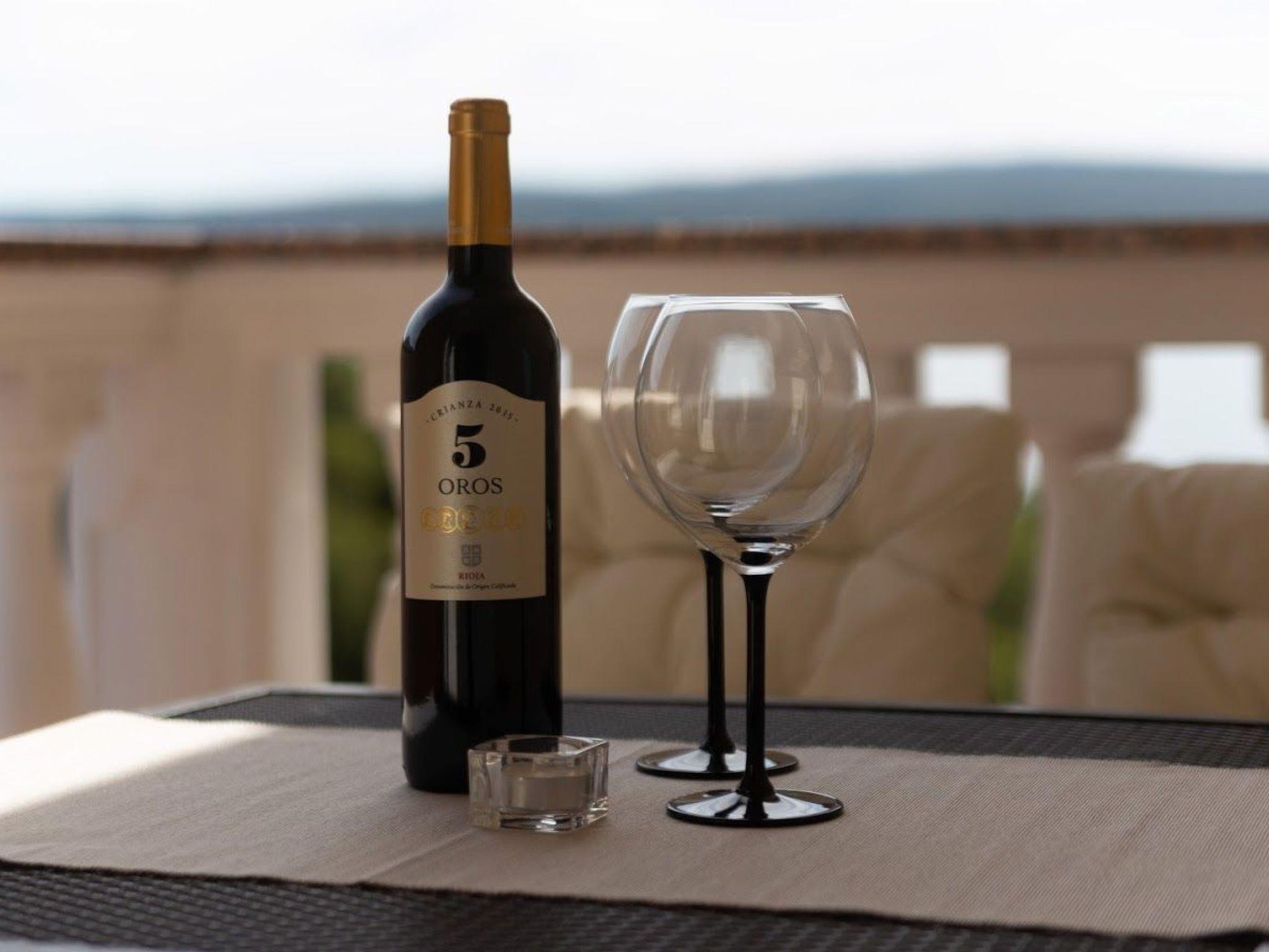 You can enjoy a wonderful view from the roofed balcony with garden furniture. Villa has a pool for all villas guests.
