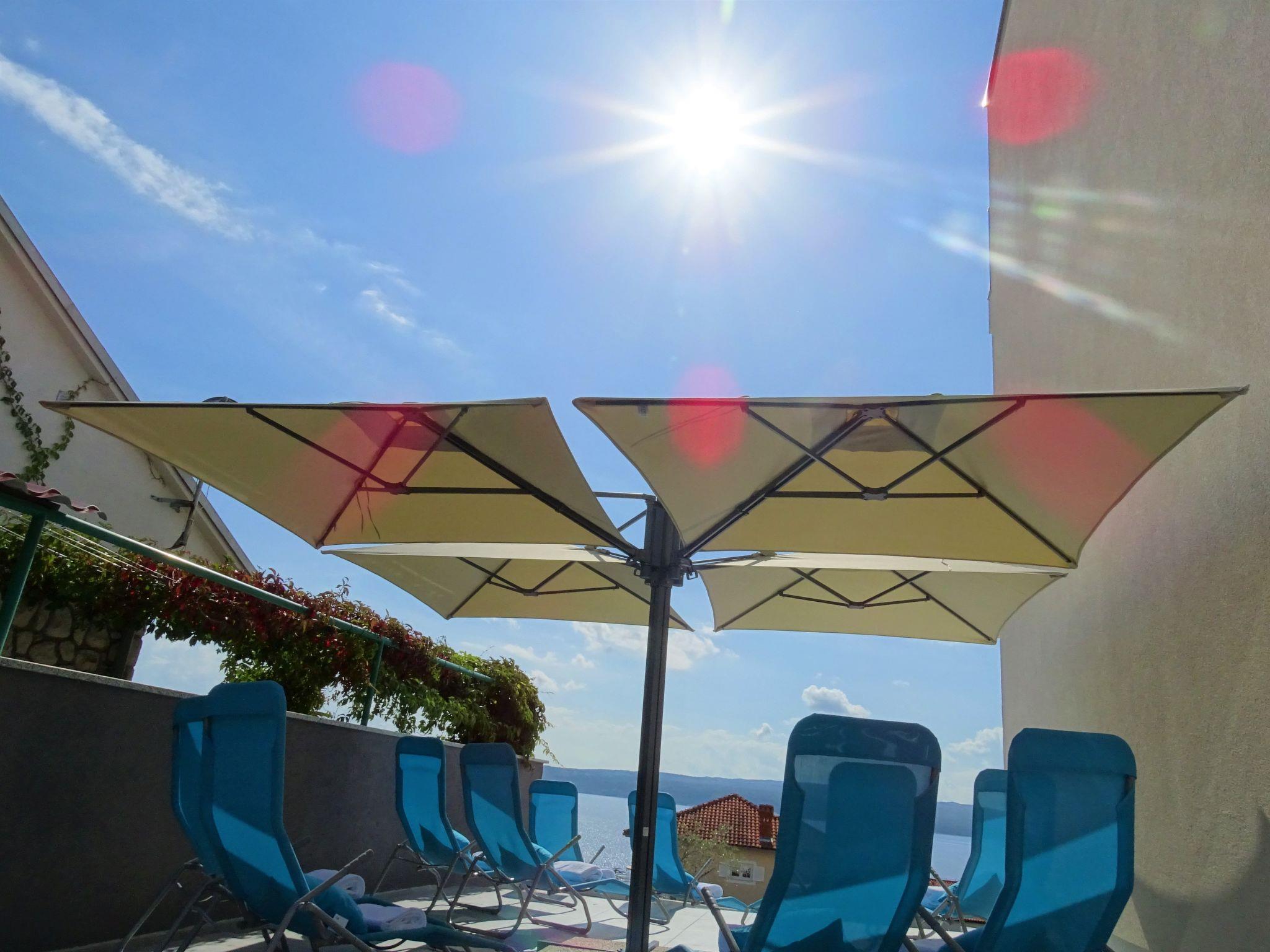 This apartment has three bedrooms – two with double beds and balconies with sea views, and one with two box-spring beds. This apartment also has two bathrooms with shower and toilet, and a separate toilet. The living room is air-conditioned, as is the hallway. From the living room, you have a balcony with a magnificent view of the sea.