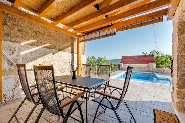 Holiday Home Rustic is located in Cirvac, situated in Split region, it is perfect choice for a quiet and relaxing family or friends vacation, who love being far enough to avoid the crowds and keep their peace and privacy. Private outdoor unheated seasonal swimming pool, sun terrace fitted with sunbeds, private tavern as well as BBQ facilities and outdoor dining area are at your disposal. Kindly note: The swimming pools is open from 15.05.-15.09. Property offers free private parking with no reservation required and baggage drop-off before check in and after check out. This lovely two bedroom holiday home with private pool is perfectly fit for up to six people. It features WiFi, air-conditioning as well as cable flat screen TV. The open space living room comes with sofa and sitting area and it's combined with the equipped kitchen and dining area. The holiday home has two private bathroom with shower and toilet. Washing machine, hair dryer, iron, ironing facilities as well as free toiletries (soap and toilet paper), towels and bed linens are provided. The market is located 20 km away, while the nearest beach is located 45 km away from the property. The pharmacy can be found within 15 km range. Split airport is located 60 km away from the property.