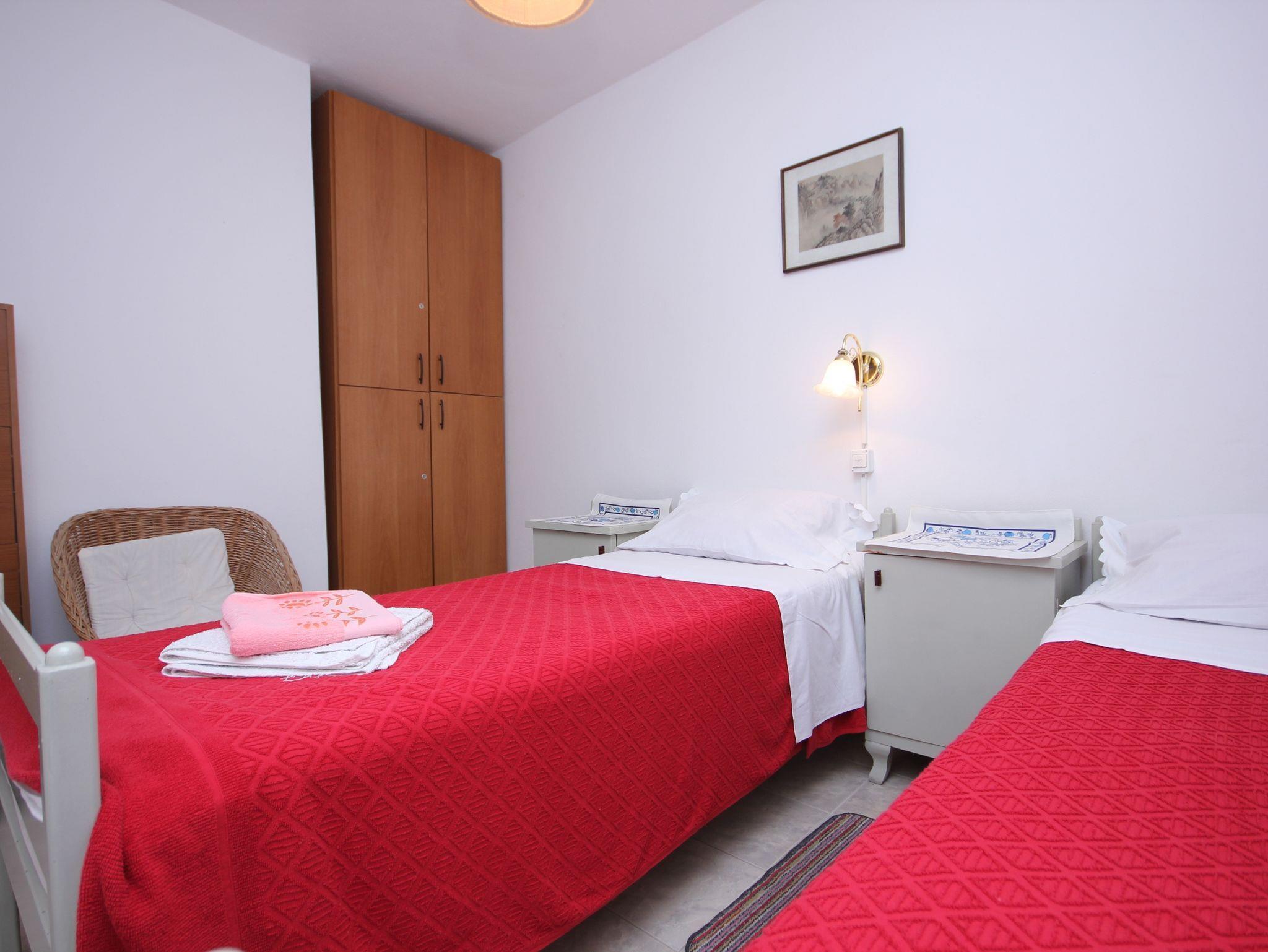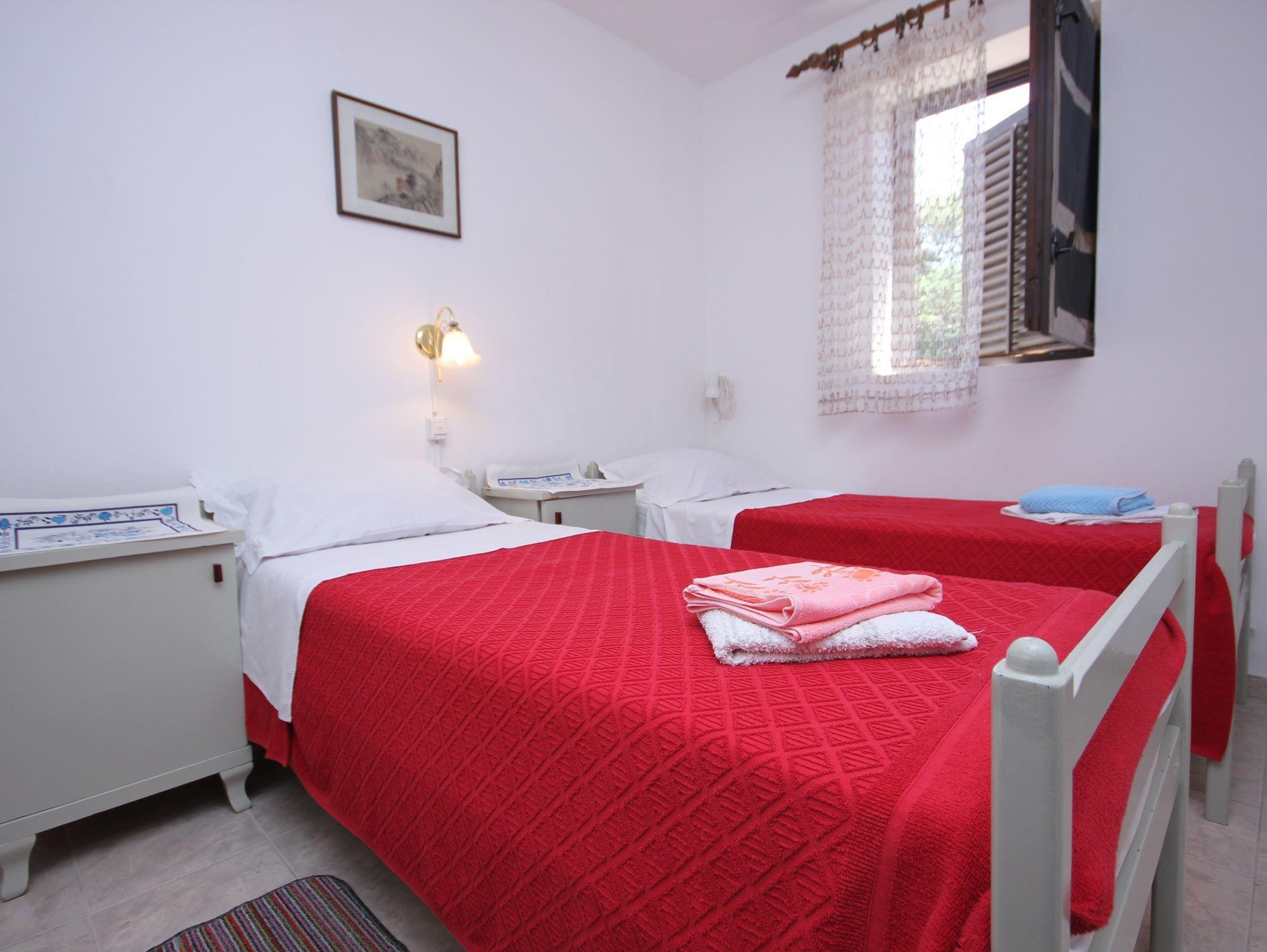 Haus bietet Platz für 5 Gäste. Die Betten sind in Schlafzimmern, die es 2 gibt, und in Esszimmer, innerhalb einer Gesamtfläche von 40m2, angeordnet. Die Gäste haben eine eigene Terrasse zur Verfügung, auf der sie in warmen Sommernächten genießen können. Für vollen Genuss und Entspannung gibt es einen privaten Grill für Gäste dieser Unterkunft. In der Unterkunftseinheit besteht die Möglichkeit des Mitbringens von Haustieren gegen Aufpreis. IM PREIS INBEGRIFFEN: Kurtaxe, Endreinigung, Klimatisierung, Parkplatz, Internet, Kinderbett, Bügeleisen, Bügelbrett, Föhn. UNVERBINDLICHE ZUSÄTZLICHE KOSTEN: Bootsanlegeplatz (10,00 € pro Nacht), Haustiere (10,00 € pro Nacht), Zusatzbett (5,00 € pro Nacht). Die Verfügbarkeit zusätzlicher Dienstleistungen in Ihrem reservierten Termin und die Preise derselben (falls nicht aufgeführt) müssen im Voraus überprüft werden. Zusätzliche Dienstleistungen die in der Zahlungsaufforderung nicht aufgeführt sind werden direkt beim Vermieter bezahlt, angenommen der Gast nutzt auch diese.