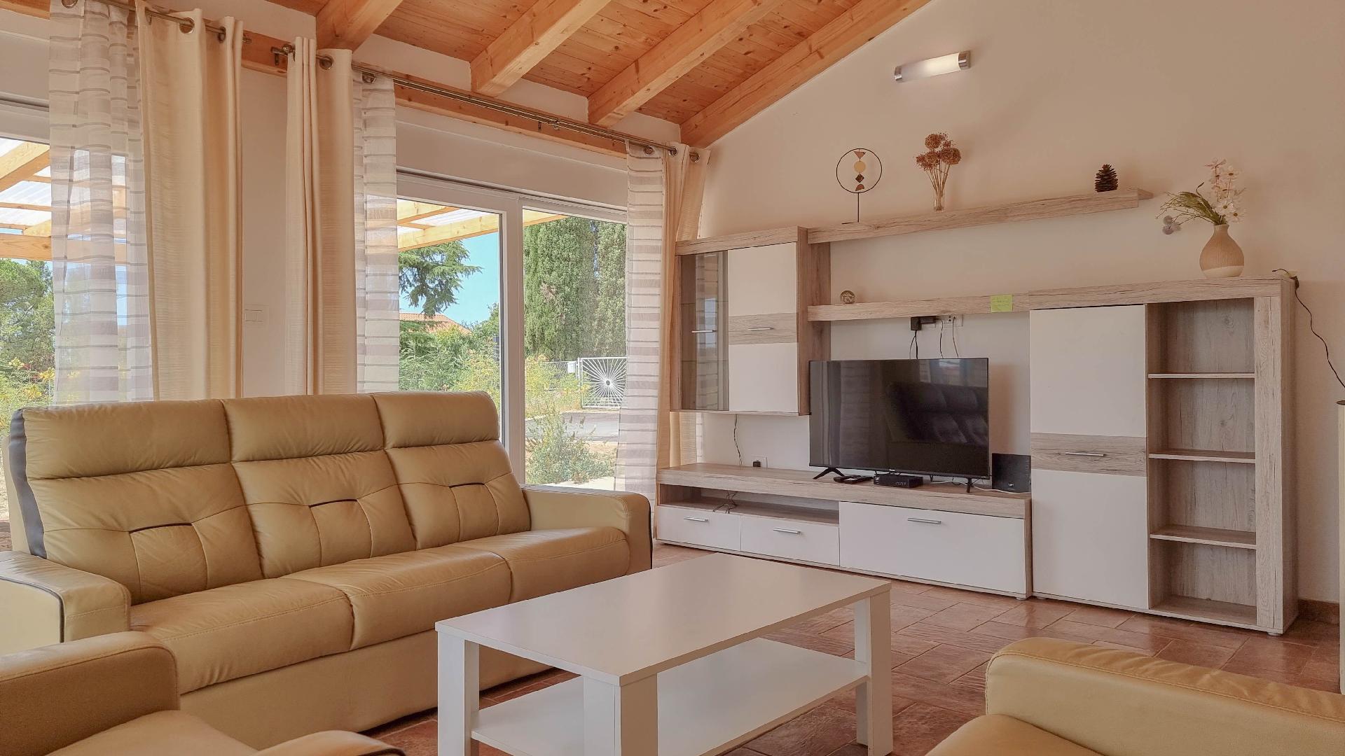 Inside, Casa Dorjana unfolds over two floors, promising a comfortable stay with all the essential amenities at your fingertips. The ground floor serves as the heart of the house, featuring a cozy living room with a dining area adjacent to a well-equipped kitchen. Here, culinary enthusiasts can find everything needed to prepare delightful meals, including an electric stove, oven, refrigerator, dishwasher, and coffee maker. The house also accommodates its guests with two bedrooms and a bathroom on the ground floor for convenience. Meanwhile, the first floor reveals two additional bedrooms, each boasting its own bathroom and air conditioning, ensuring privacy and comfort for all occupants.