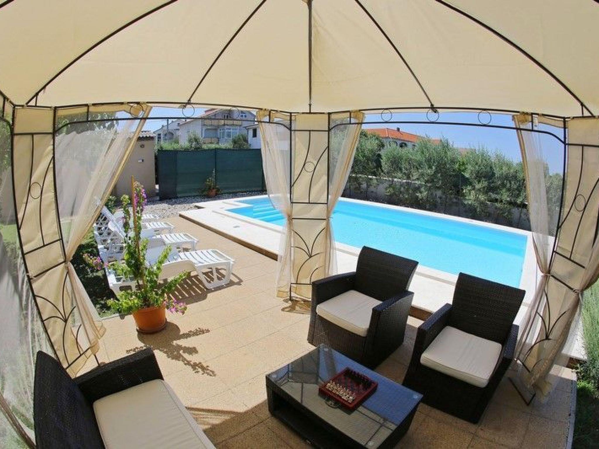 Stone villa with a pool for rent, Zadar area is a spacious and cozy house that blends modern and traditional Dalmatian style located just 500m from a stunning sandy and pebble beach. It can accommodate up to 6 people and is especially suitable for families with children of all ages. Outside of this stone villa you can find a private heated swimming pool (7 x 4 x 1,5 m) and a Mediterranean garden that spreads out over 1500m2.