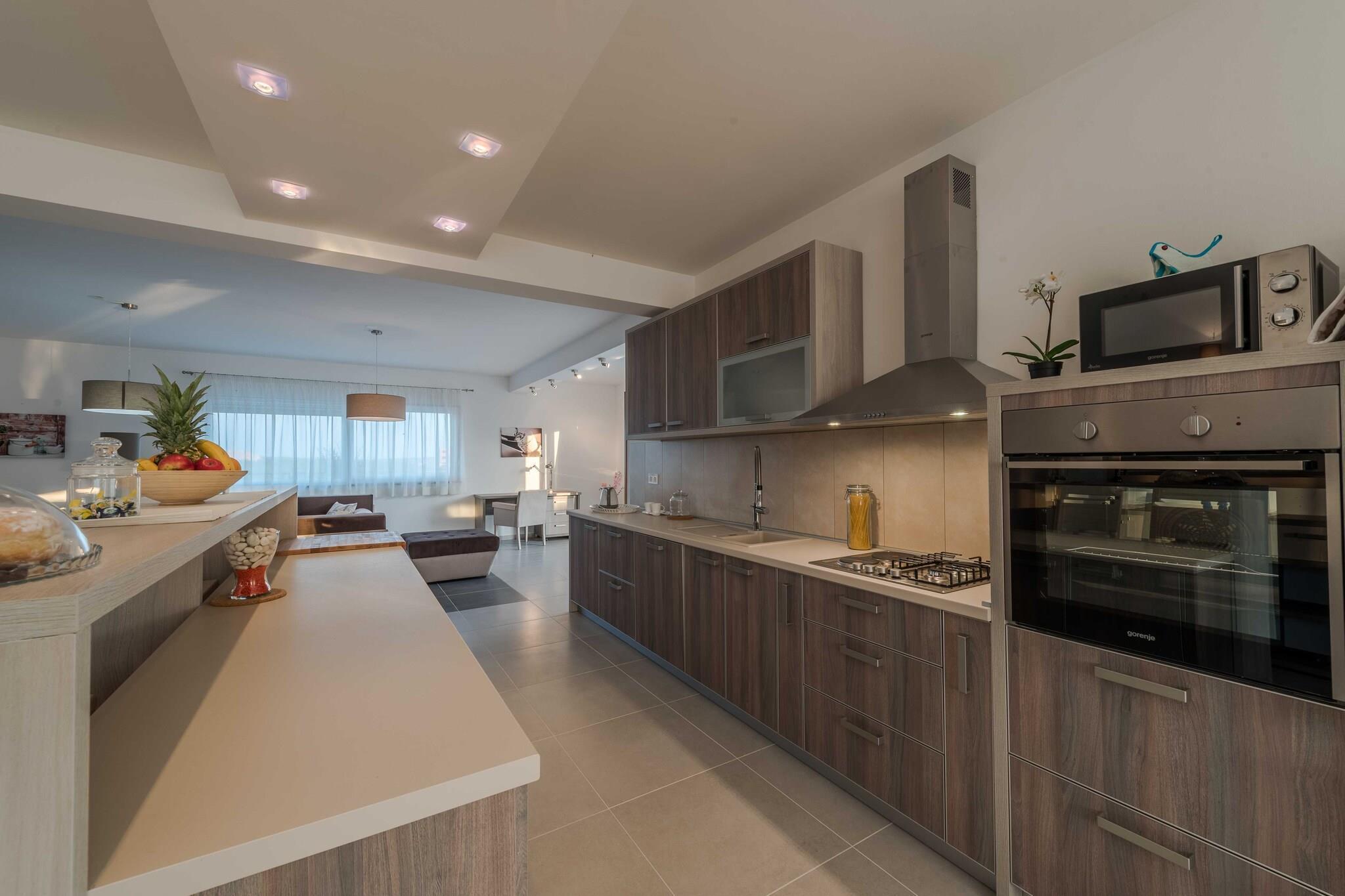 Luxury Escape with Swimming Pool & Modern Design is a high-end villa in Debeljak, near Zadar, Croatia. It features a private swimming pool, contemporary architecture, and stylish interiors. The villa is ideal for families or groups, offers spacious living areas, a fully equipped kitchen, multiple bedrooms with en-suites, and outdoor lounging areas. Situated in a peaceful setting, it provides easy access to Zadar’s historic sites and Adriatic beaches, combining relaxation and modern comfort. Note: Private parking is available, and a reservation is not required. A Baby cot is available on request. Wi-Fi is available throughout the property. Pets are not allowed. This four-bedroom can accommodate up to eight guests. It features an SAT/flat-screen TV and is combined with a living room seating area, sofa, and kitchen. The private bathroom is equipped with a shower and toilet. Free toiletries are available on request. Thanks to its excellent location, everything you'll need for your vacation is just a short walk from the property. Grocery stores, cafes, restaurants—everything is within a 5.00 km radius. The beach is 3.00 km away from the property. The airport is 11 km away from the property.