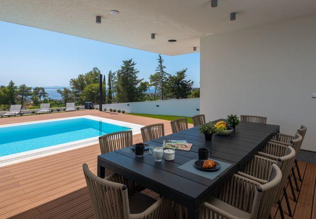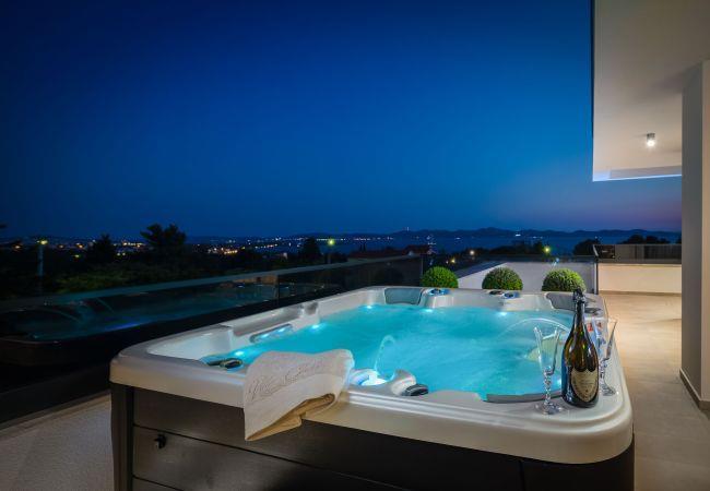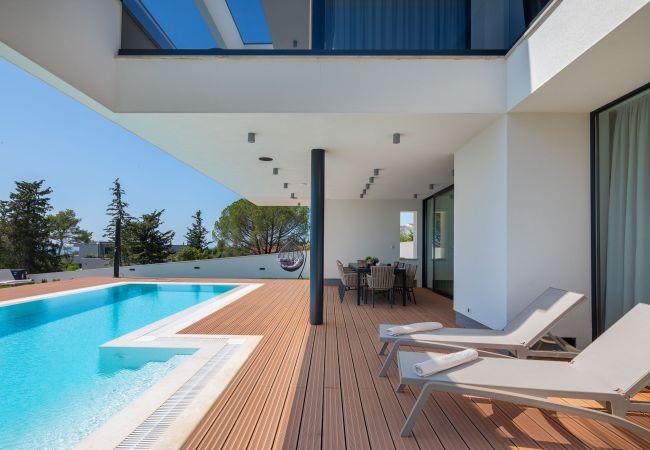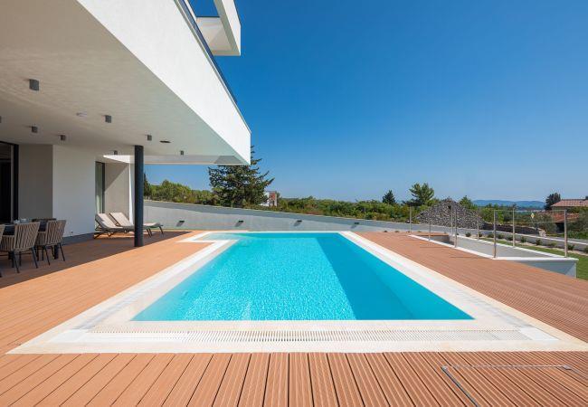 Nestled in a peaceful residential area just outside the vibrant city of Zadar, Villa Calvi offers the perfect combination of modern comfort, privacy, and coastal charm. With 350 square meters of living space and an additional 400 square meters of carefully landscaped outdoor area, this elegant villa is designed to comfortably accommodate up to eight guests, making it an ideal retreat for families or groups of friends.