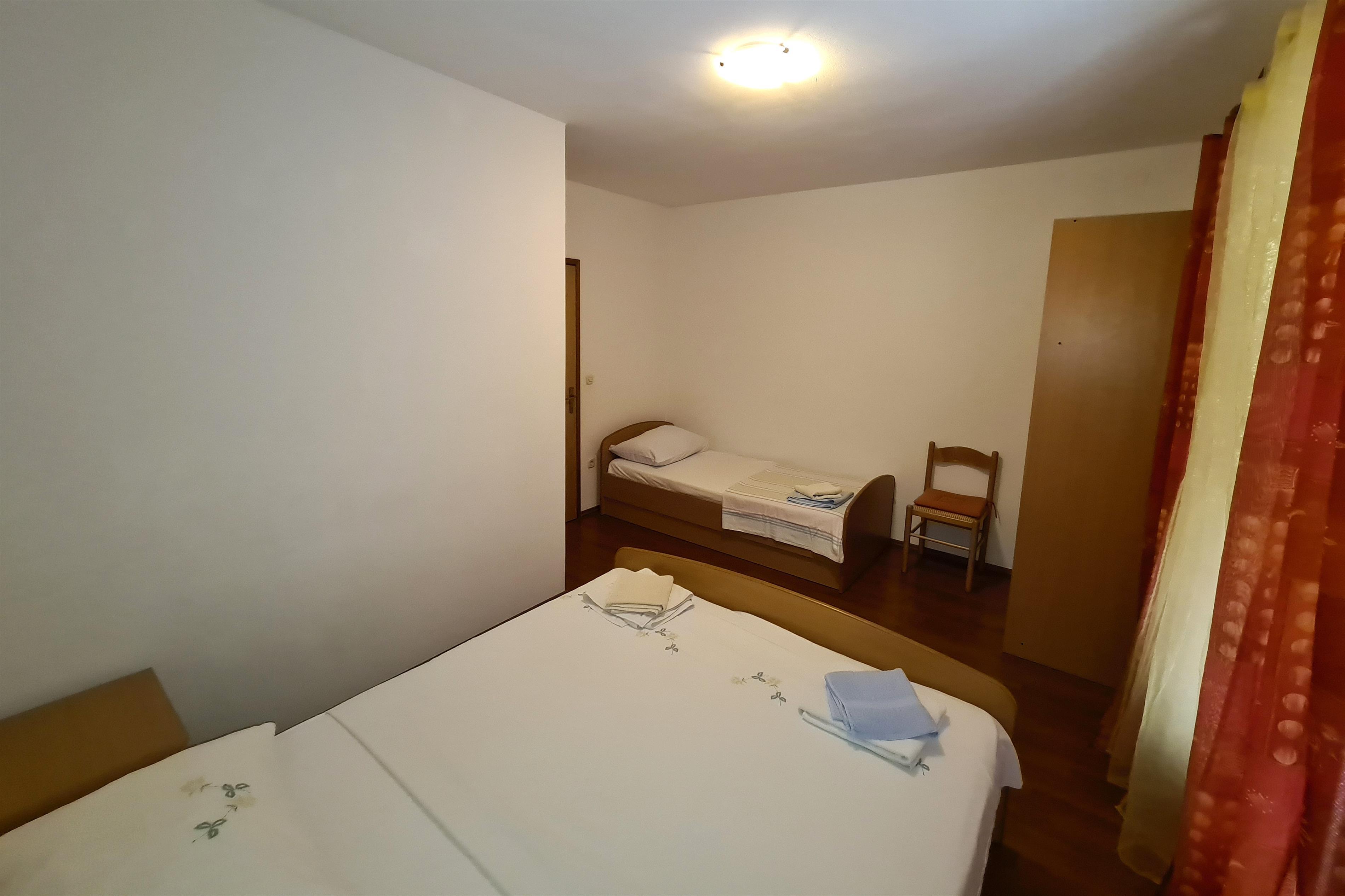 Apartment can accommodate 5 guests. Beds are situated in 2 sleeping rooms, within 42m2. Guests can use a private terrace to enjoy the warm summer evenings. The apartment offers the sea view. Food can be prepared using barbecue which is shared with other guests too. This accommodation unit welcomes pets at an additional charge.
