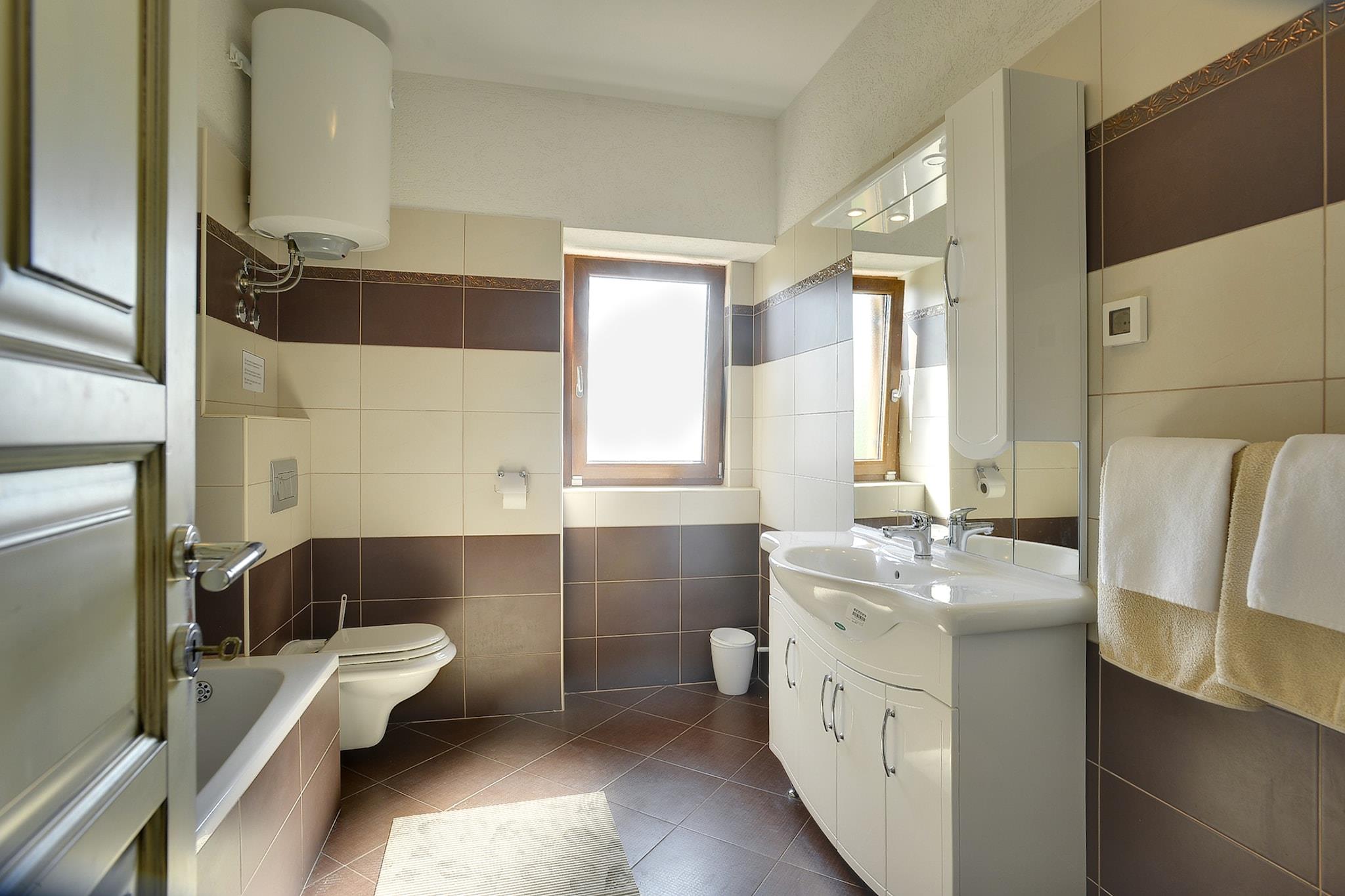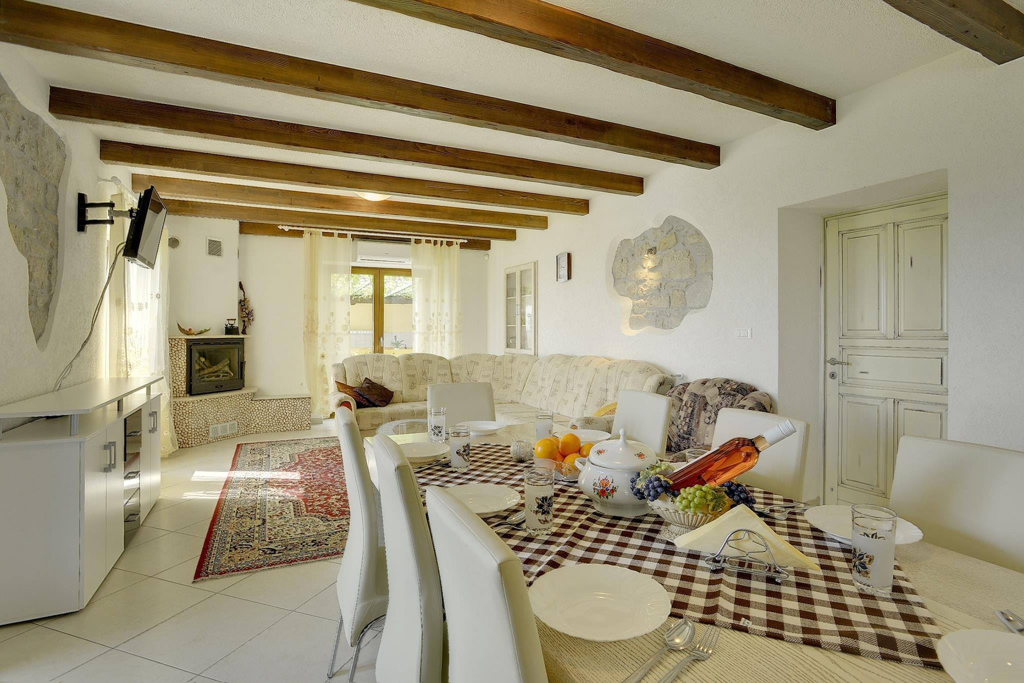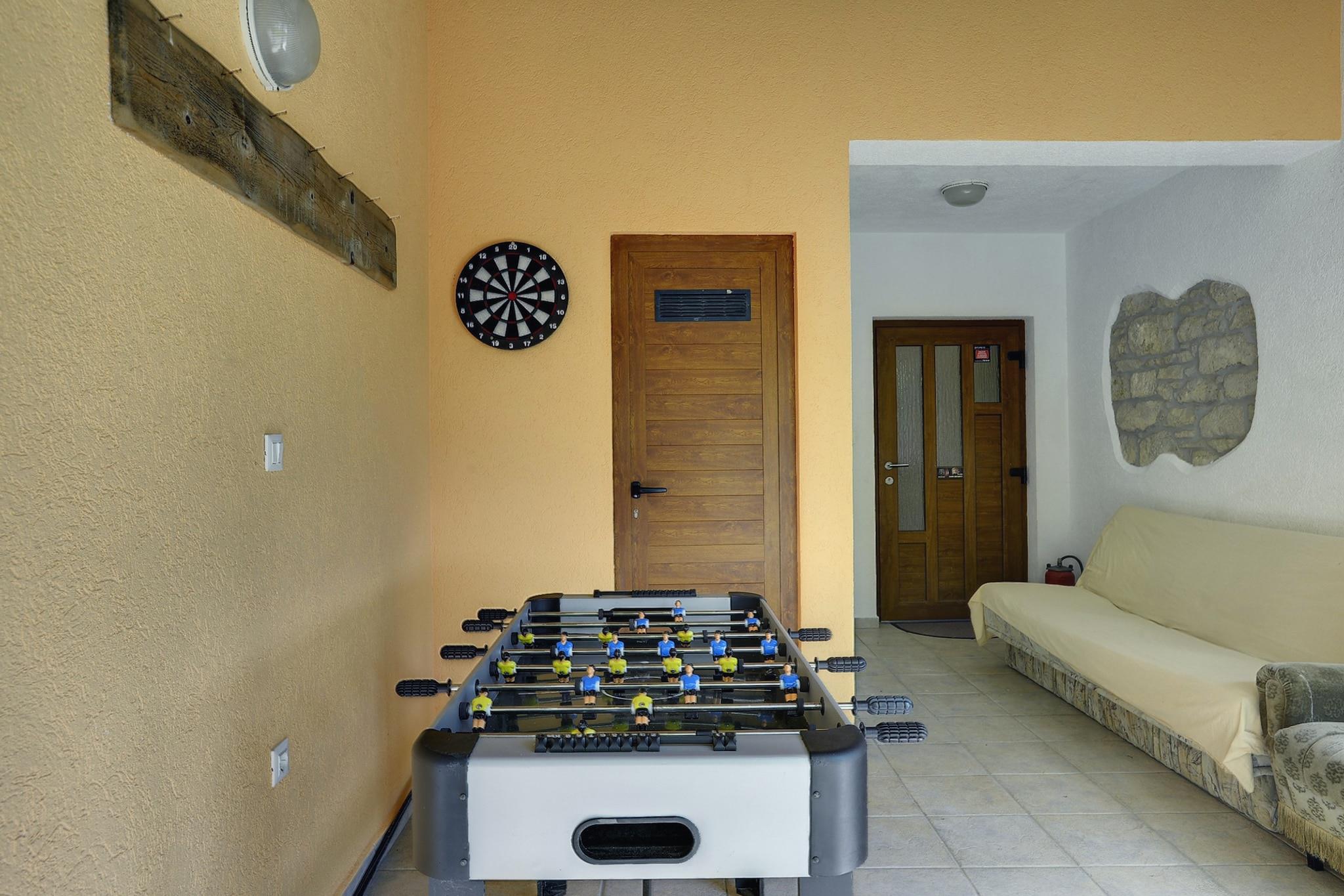 Located in Lupoglav, this 4-bedroom villa gives the perfect stay for a group of 10 people or families with children. The surrounding are panoramic and there is a private swimming pool and air conditioning to enjoy. The home is near to all comforts you need for a wonderful vacation. The sea is nearby at 20 km and offers a fantastic experience of the beach. For food and shopping supermarket and restaurants are nearby at 3 km. The air conditioning and the fireplace in the living-dining room give pleasant interiors. All th ebedrooms are bath attcahed and has double beds. A children's bed is also provided. You r kids can have fun with the play equipment and trampoline. You can try a hand at the table football or darts. Wind up for the day on the roofed terrace with a barbecue. Safe parking is also provided. Airport is at 76 km and train station at 20 km.