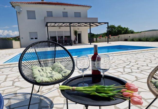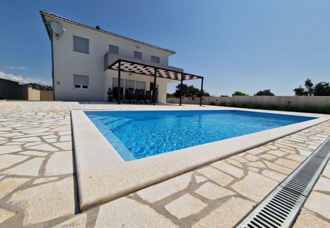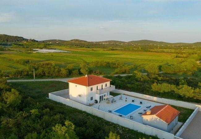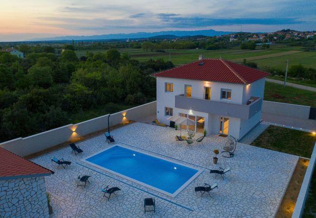 This beautiful newly built villa is located in the small village of Donja Jagodnja, 40 kilometers from Zadar. This location is ideal for escaping from everyday life and relaxing in a beautiful rural landscape. The villa is subtly decorated with rustic details and equipped with a swimming pool surrounded by deck chairs. Additional content is a fully equipped outdoor summer kitchen, with an open fireplace and an attached toilet.