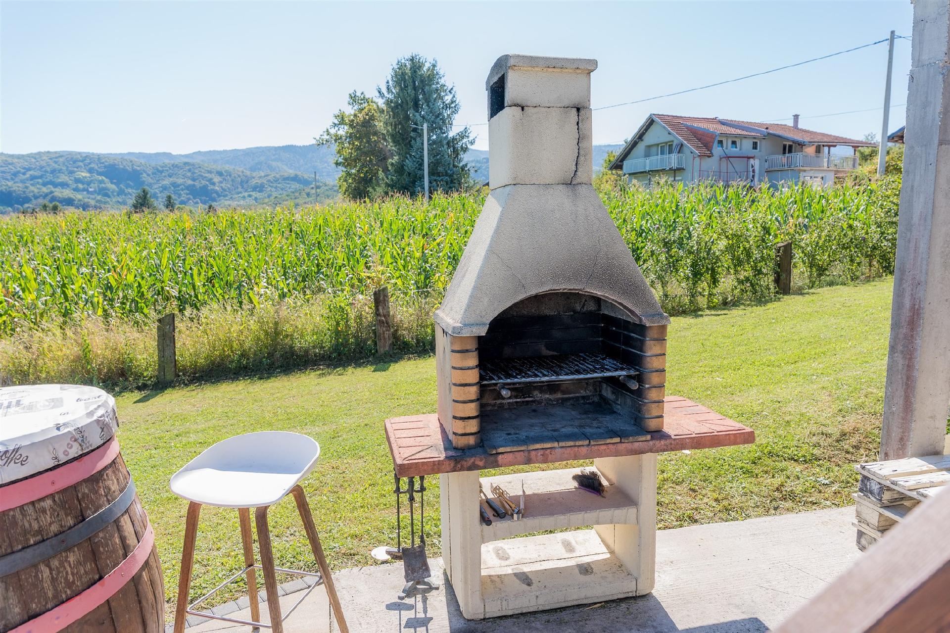 Holiday House Val is located in Donja Stubica, in the heart of the green Zagorje region, overlooking a plantation of Siberian blueberries. This charming wooden house combines nature, peace and modern comfort, making it ideal for families or friends seeking relaxation. Pets are welcome and can safely enjoy the large fenced yard.